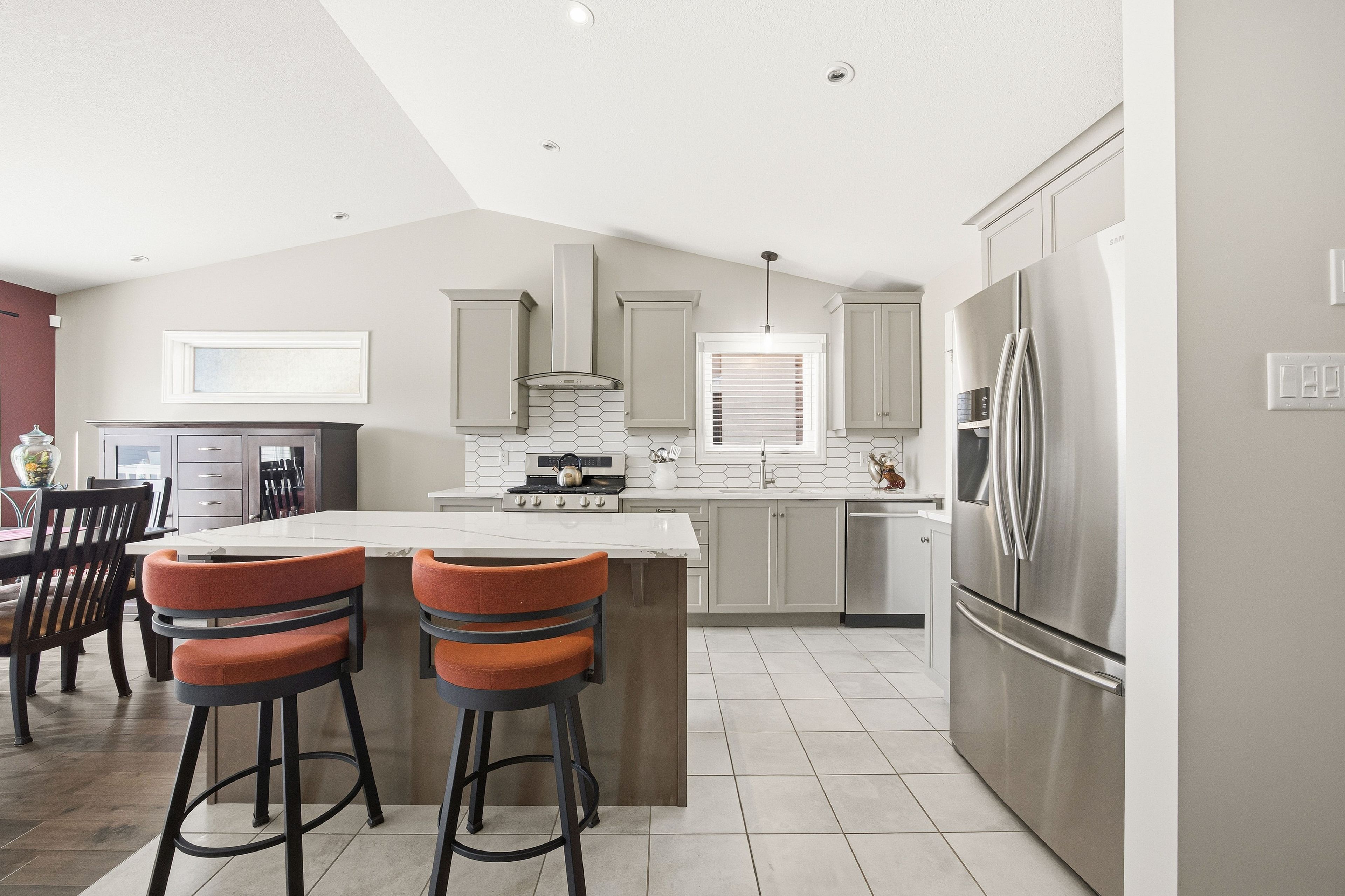 • Bright open-concept layout with vaulted ceilings and hardwood floors.