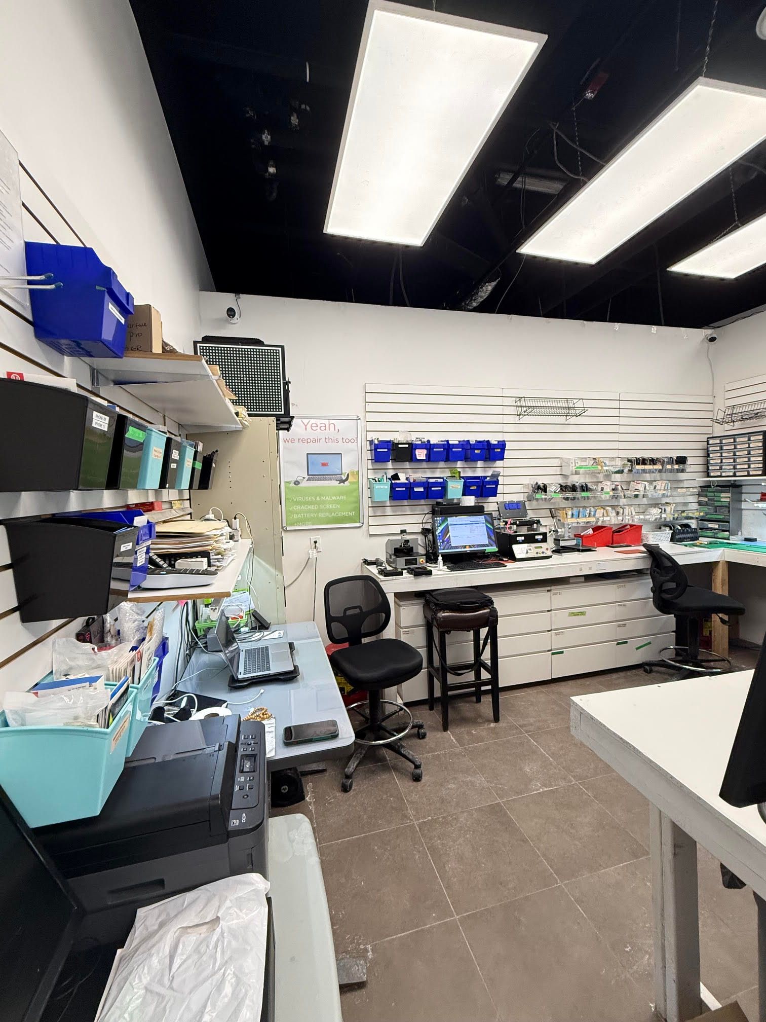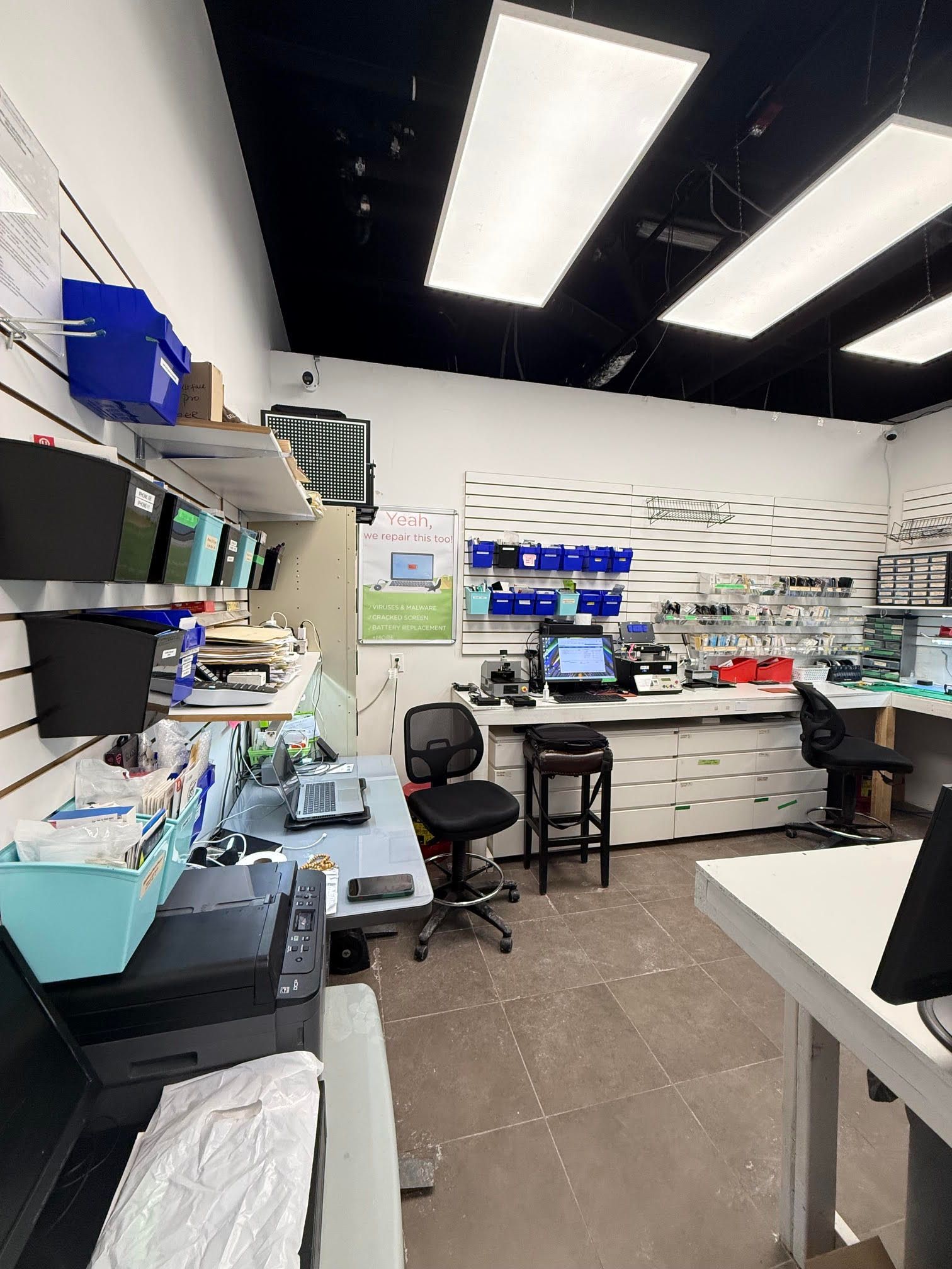 • Well-designed 651 sq. ft. space with dedicated retail and repair areas.