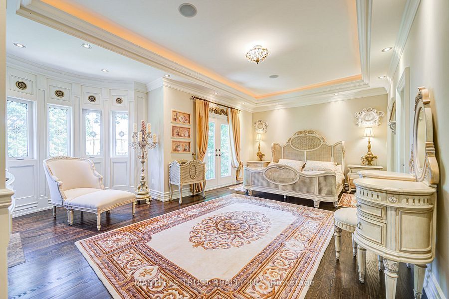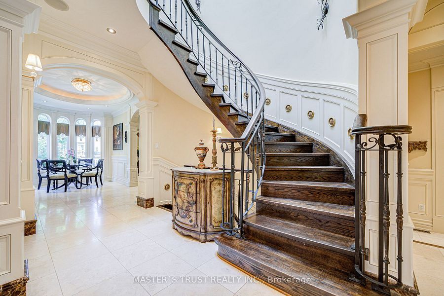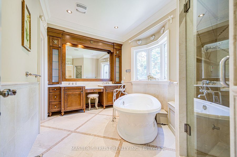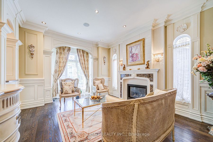 A true architectural masterpiece! An extraordinary residence that epitomizes refined luxury and exceptional craftsmanship. This european-inspired estate showcases a breathtaking architectural presence. Crafted with meticulous attention to detail, this home boasts premium finishes, unparalleled workmanship, and a thoughtfully designed layout ideal for elegant living and entertaining. Two grand primary suites one overlooking the tranquil backyard. Complete with a private balcony, gas fireplace, luxurious 6-piece spa-inspired ensuites with freestanding soaking tubs, a steam shower, makeup vanity, another facing south, flooded with natural light. Stunning spiral staircase, a central design element that radiates elegance, framed by refined trim work and architectural finishes that create a dramatic visual impact. Chefs dream kitchen granite countertops, central island, flooring, draped lighting, and an array of high-end appliances that inspire any culinary enthusiast. Family room overlooks backyard with oversized picture windows, waffle ceilings, and a cozy gas fireplace. Executive library designed with custom millwork, floor-to-ceiling panelled walls, and waffle ceilings, perfect in a timeless space. Walk-out basement fully finished with a wet bar, home theatre, recreation area, and nanny/in-law suite,cedar roof with an impressive 30-50 year lifespan, feature offers 2-3 times the durability of standard roofing materials. 4 gas fireplaces throughout the home. Skylights providing abundant natural light. Custom wood detailing and premium finishes throughoutthis exceptional property is a rare offering that blends luxury and lifestyle seamlessly. This is not just a home. It's a legacy of refined living in one of most prestigious neighbourhoods. The original 5b is converted to 4b