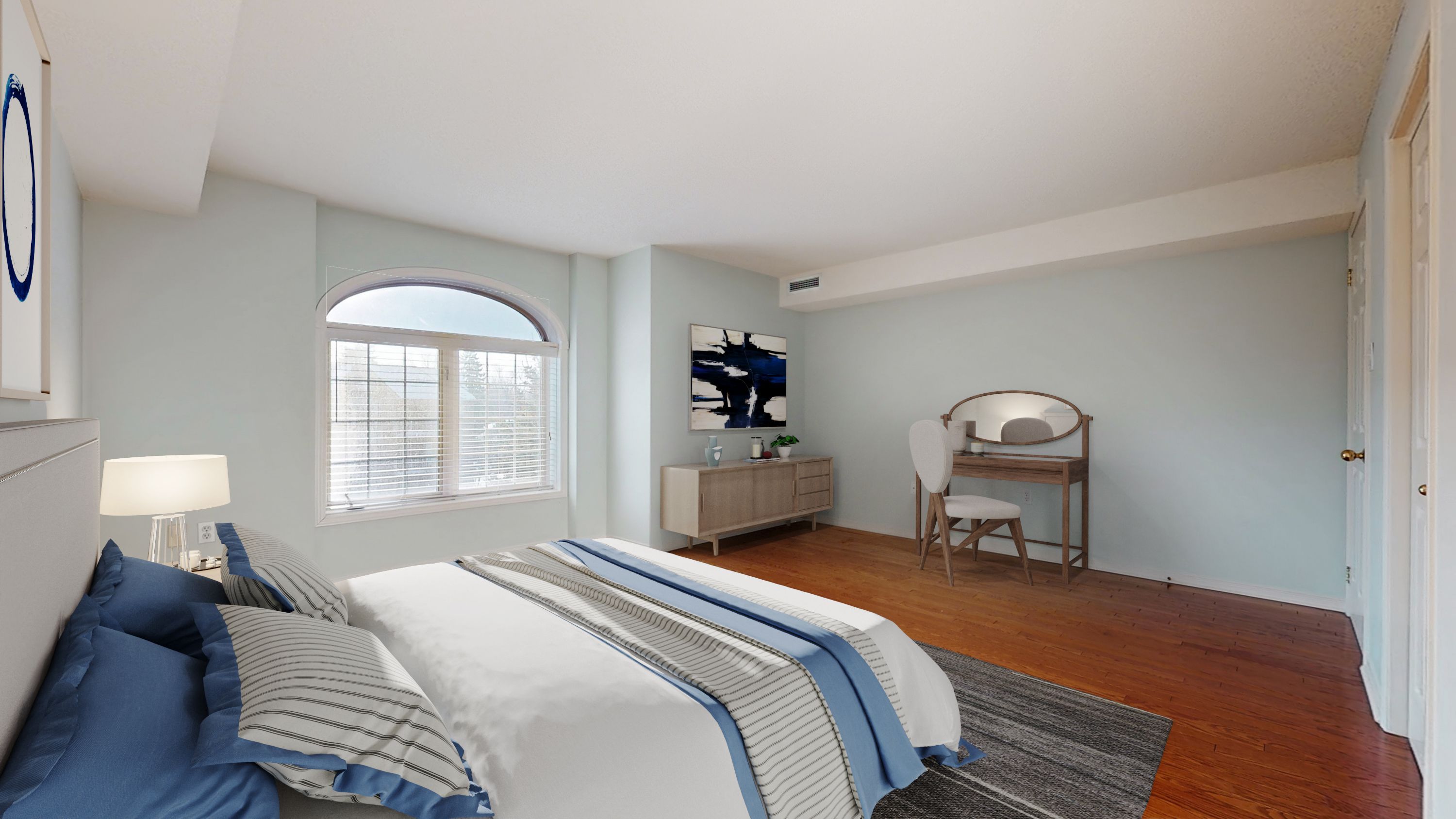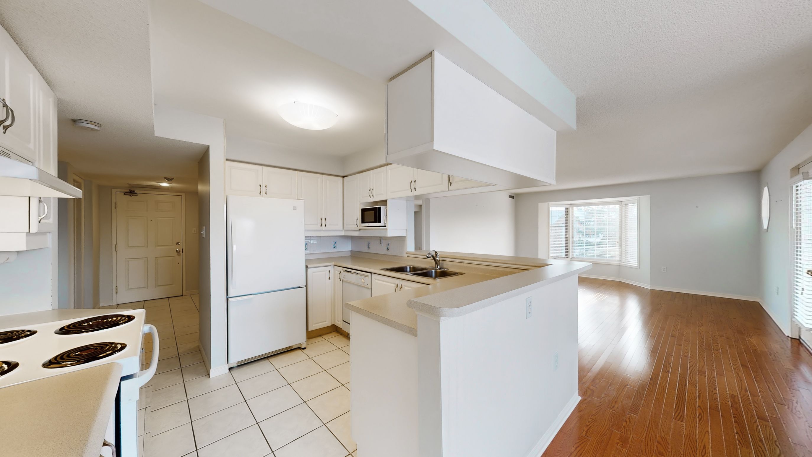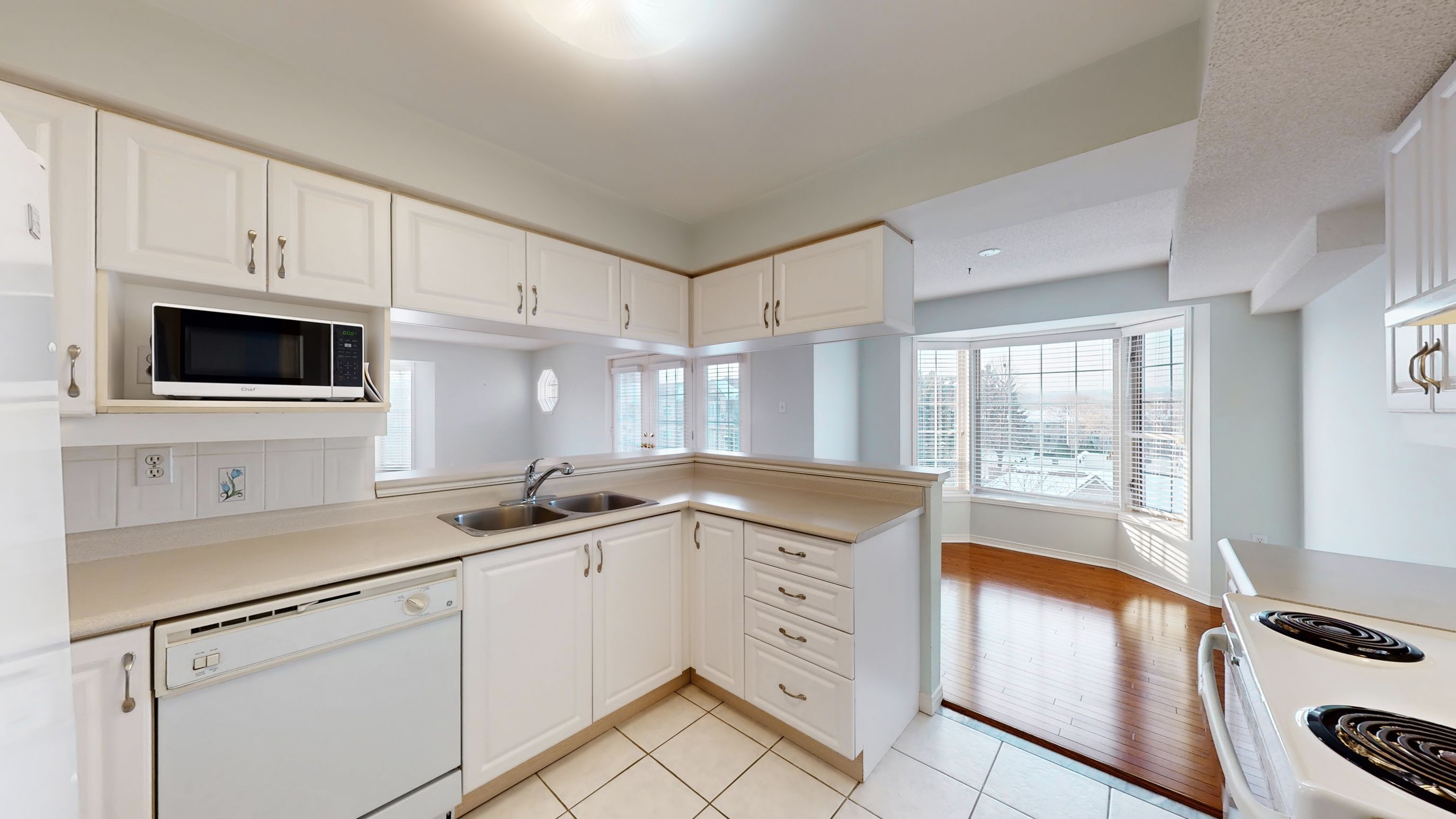 • Bright top floor corner unit with abundant natural light and hardwood flooring.
