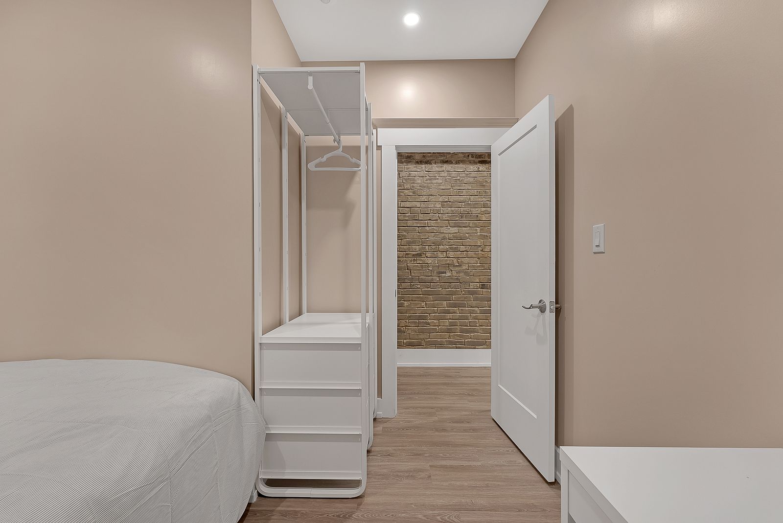 2nd bedroom for rent in a fully furnished 2-bedroom apartment in a beautifully restored historic building in cabbagetown, steps to george brown st. James campus, tmu, and the eaton centre. 3d virtual tour available. This renovated suite features 9+ ft ceilings,exposed brick, luxury vinyl plank flooring, and a bright open-concept layout. The apartment is fully furnished with whirlpool stainless steel appliances, pot lights, in-suite laundry, and a private rear entrance. Secure buzzer entry and enhanced building access. Monthly cleaning of common areas included. Smaller bedroom offered at $1,300/month + 50% of utilities, and $50 for high-speed internet. Secured parking available for $100/month. Apartment shared with a male tenant. Available immediately.