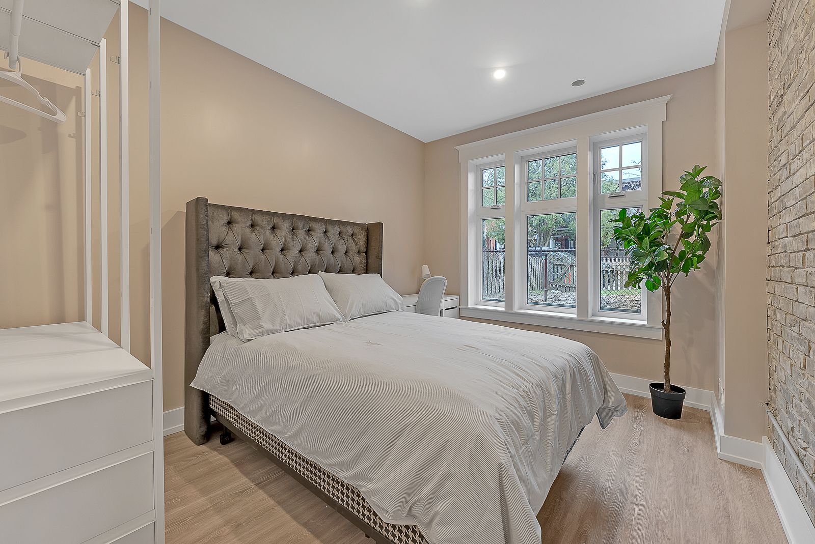 Primary bedroom for rent in a fully furnished 2-bedroom apartment in a beautifully restored historic building in cabbagetown, steps to george brown st. James campus, tmu, and the eaton centre. 3d virtual tour available. This renovated suite features 9+ ft ceilings, exposed brick, luxury vinyl plank flooring, and a bright open-concept layout. The apartment is fully furnished with whirlpool stainless steel appliances, pot lights, in-suite laundry, and a private rear entrance. Secure buzzer entry and enhanced building access. Monthly cleaning of common areas included. Larger bedroom offered at $1,500/month + 50% of utilities, and $50 for high-speed internet. Secured parking available for $100/month. Apartment shared with a female tenant; female or couple preferred. Available immediately.