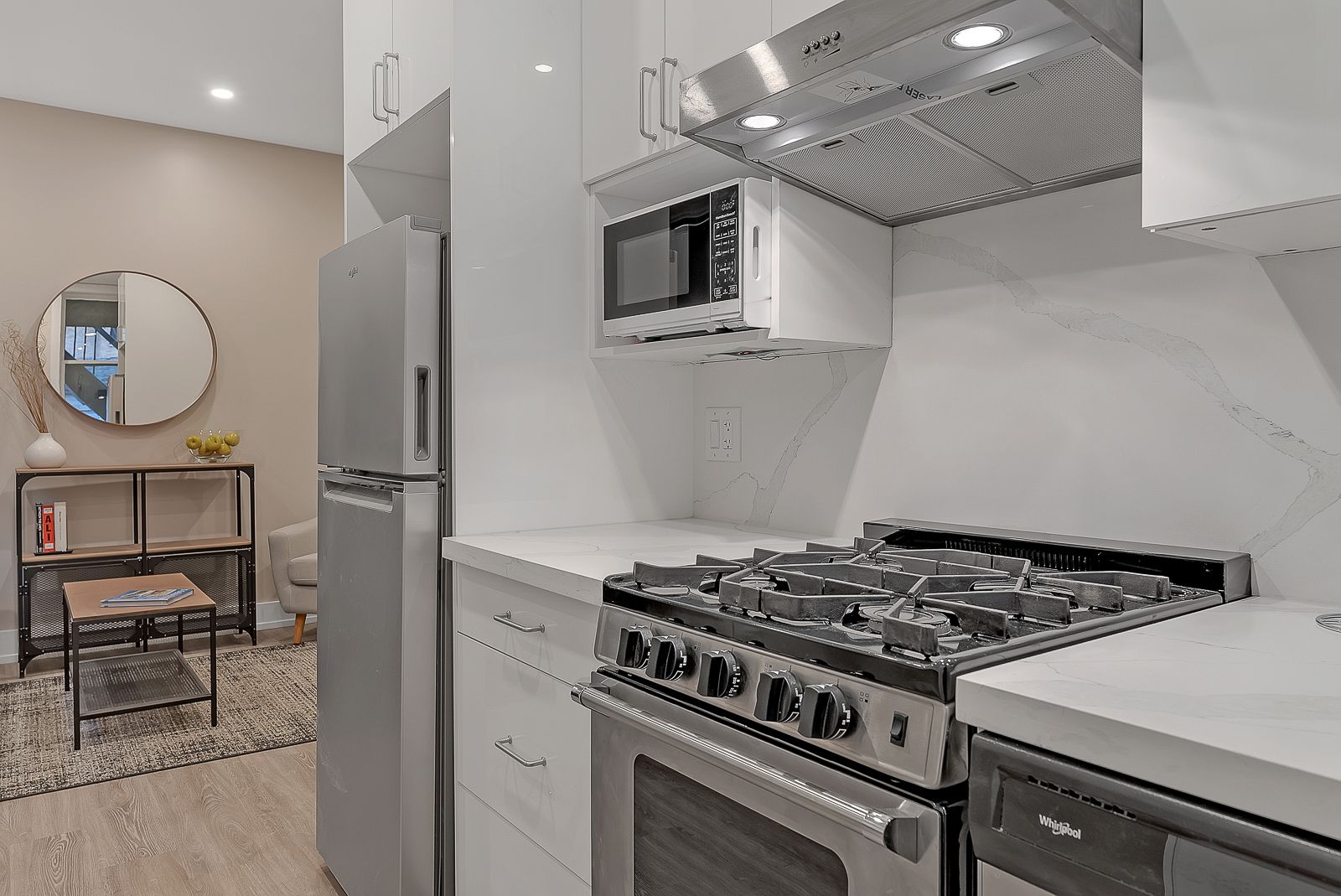 • Bright open-concept layout with luxury finishes and high ceilings.