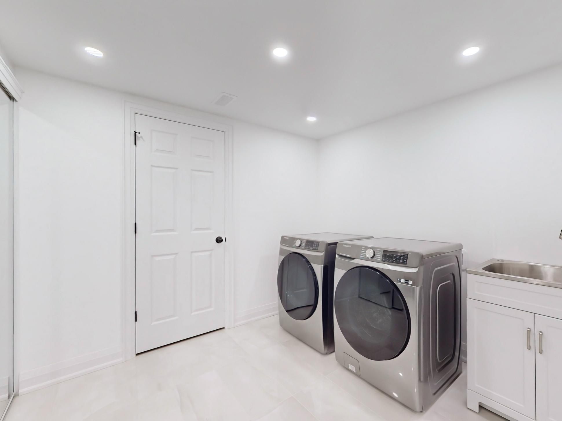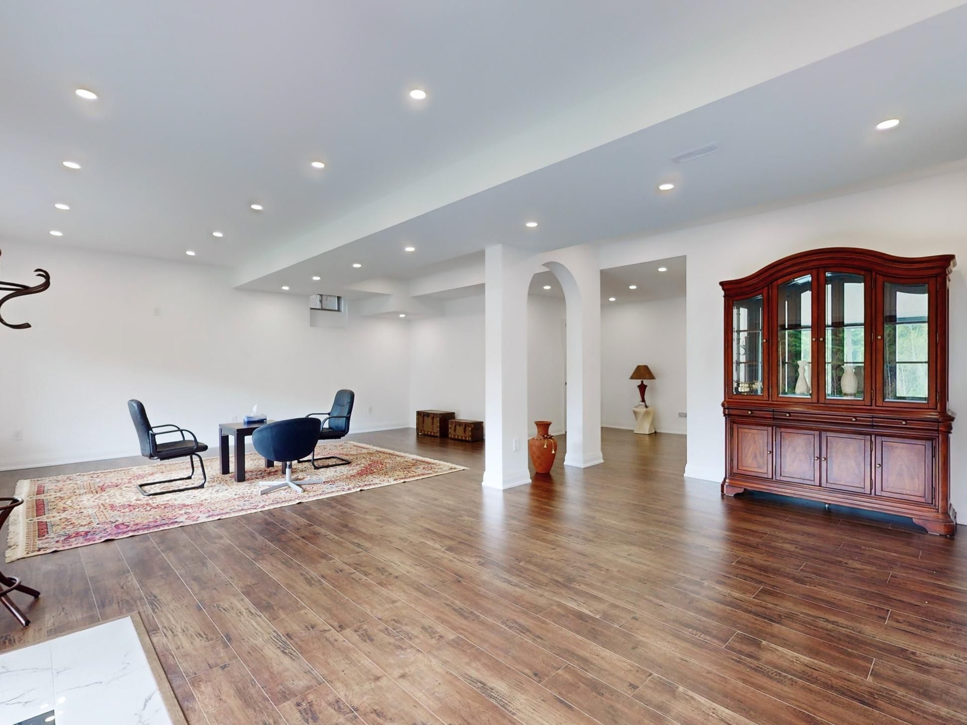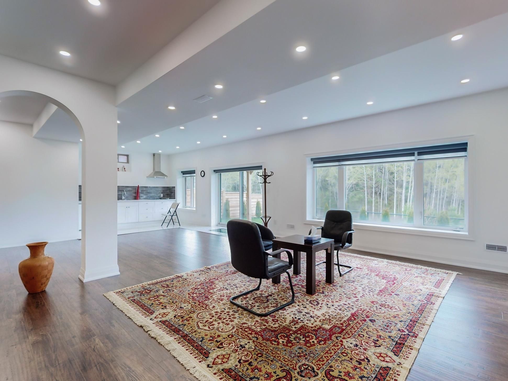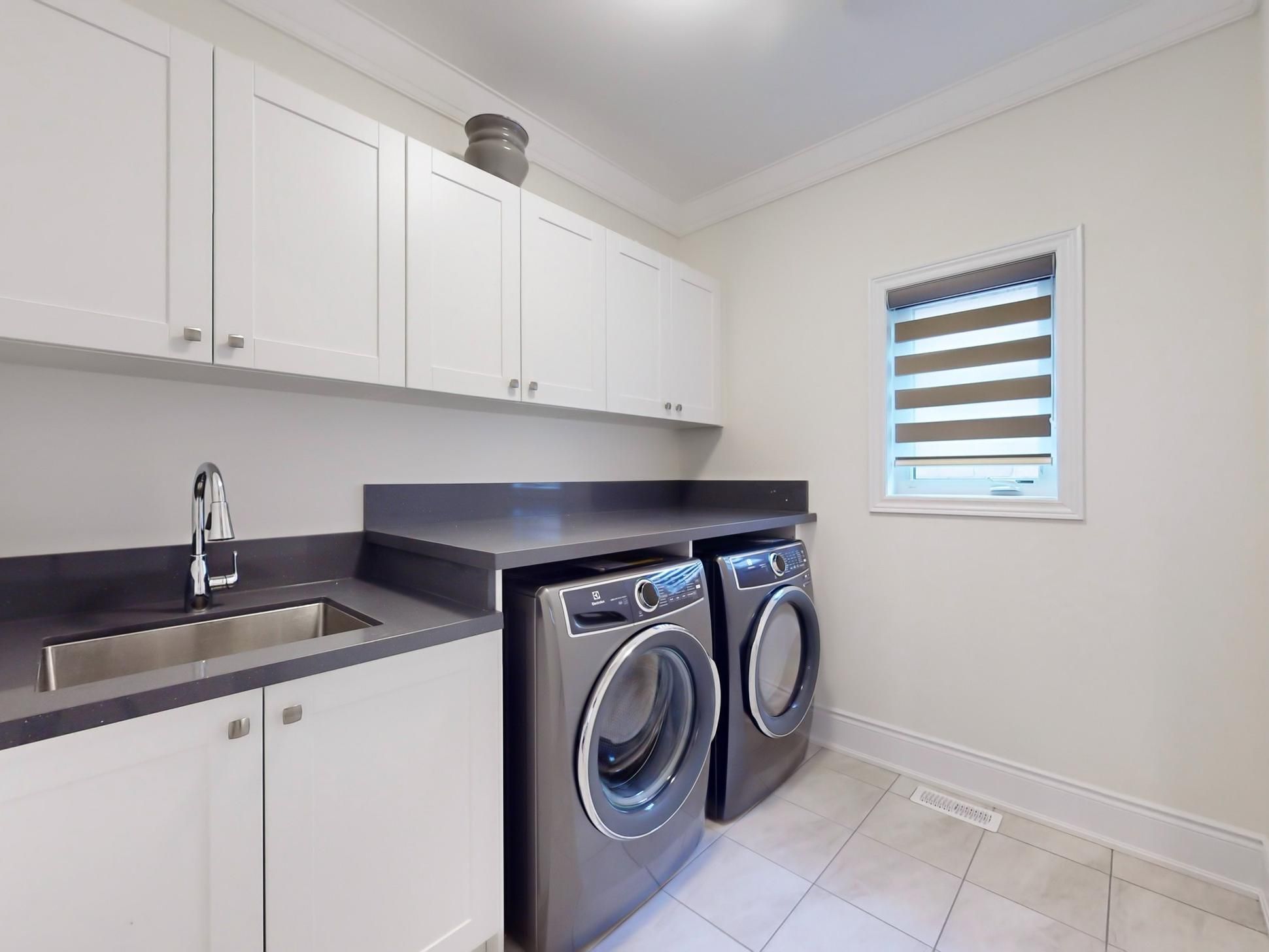 Location, location! Must see property located at quite court with incredible view on mature forest and storm water pond & 3 car garage with remotely controlled garage openers on 50 x 114 irregular lot. Finished walk-out lower level with fully equipped kitchen and laundry, may be used as apartment with a separate walk out entrance, (could be rented for $2500 a month) close to all amenities, shopping area, schools with access to walking trails in the nearby forest. Upgraded hardwood floors throughout the house, extended kitchen cabinets with fashion black stainless steel hi-end built-in appliances, including built-in coffee machine. Upgraded double-entrance door with programmable lock. Huge panoramic windows through out facade. 12', 11 1/2' and 10' on the ground floor. 9' on the 2-nd floor with upgraded 8' doors. Custom hinges and door handles throughout all floors. All custom toilets, water taps and quartz countertops thorough out. Huge master bedroom walk-in closet with custom made cabinets. Master bedroom ensuite with custom glass shower, bidet, floor to ceiling custom tiling, custom mirror and lights. Laundry of 2-nd floor with custom cabinetry, sink and quartz countertop equipped with electrolux washer & dryer 3 car extended interlock driveway with steps to fully fenced backyard, with potential to build swimming pool with beautiful pyramidal evergeens planted on the perimeter. Modern glass & metal custom railings for flag stone steps at the main entrance. Custom extended patio fitted with elegant patio furniture **extras** fashion lights, potlights and chandeliers throughout the house, exterior potlights. Custom curtains and blinds throughout. Trims and wainscotting on ground floor and stairs, crown moldings,central vac & equipment