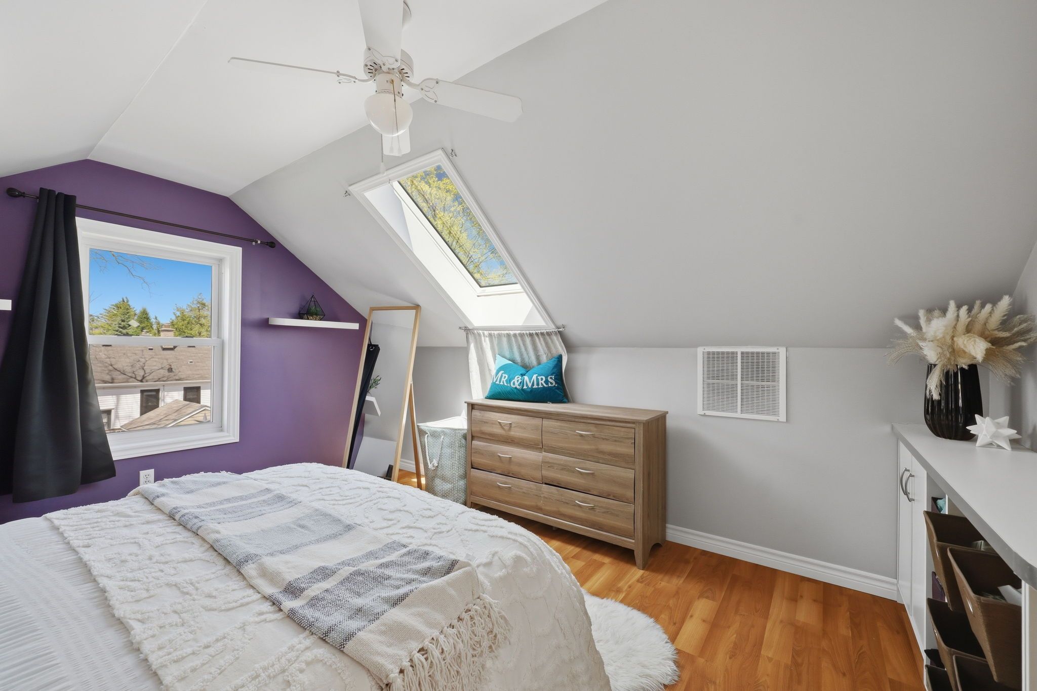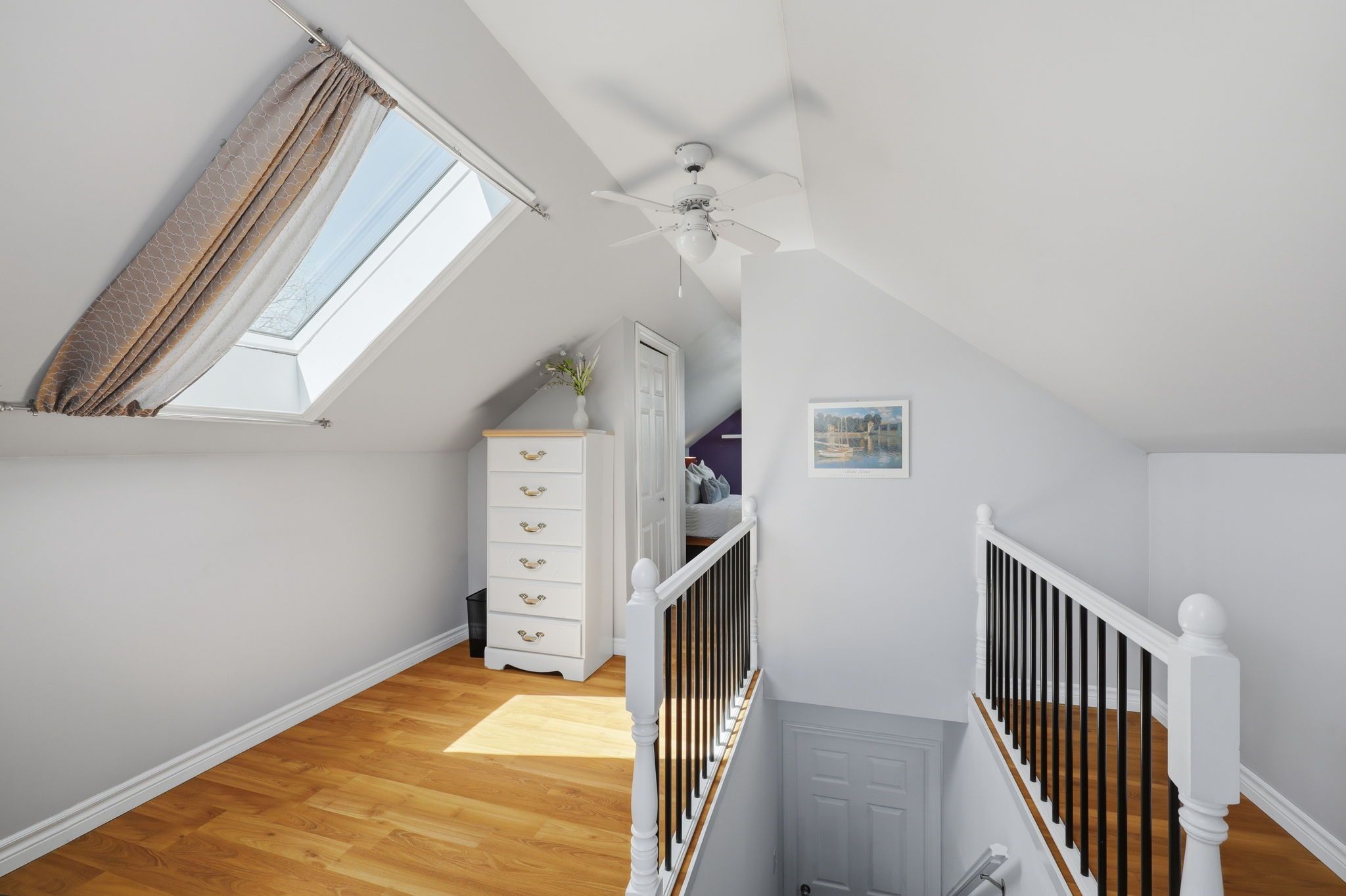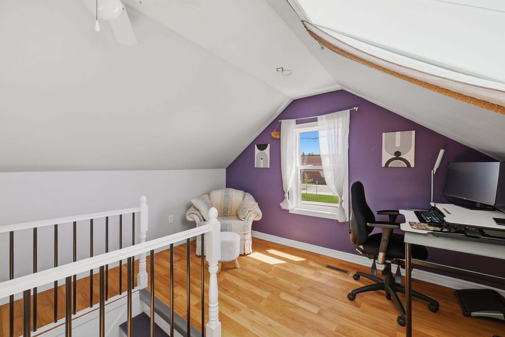• Private upper retreat with bright loft space and skylights.