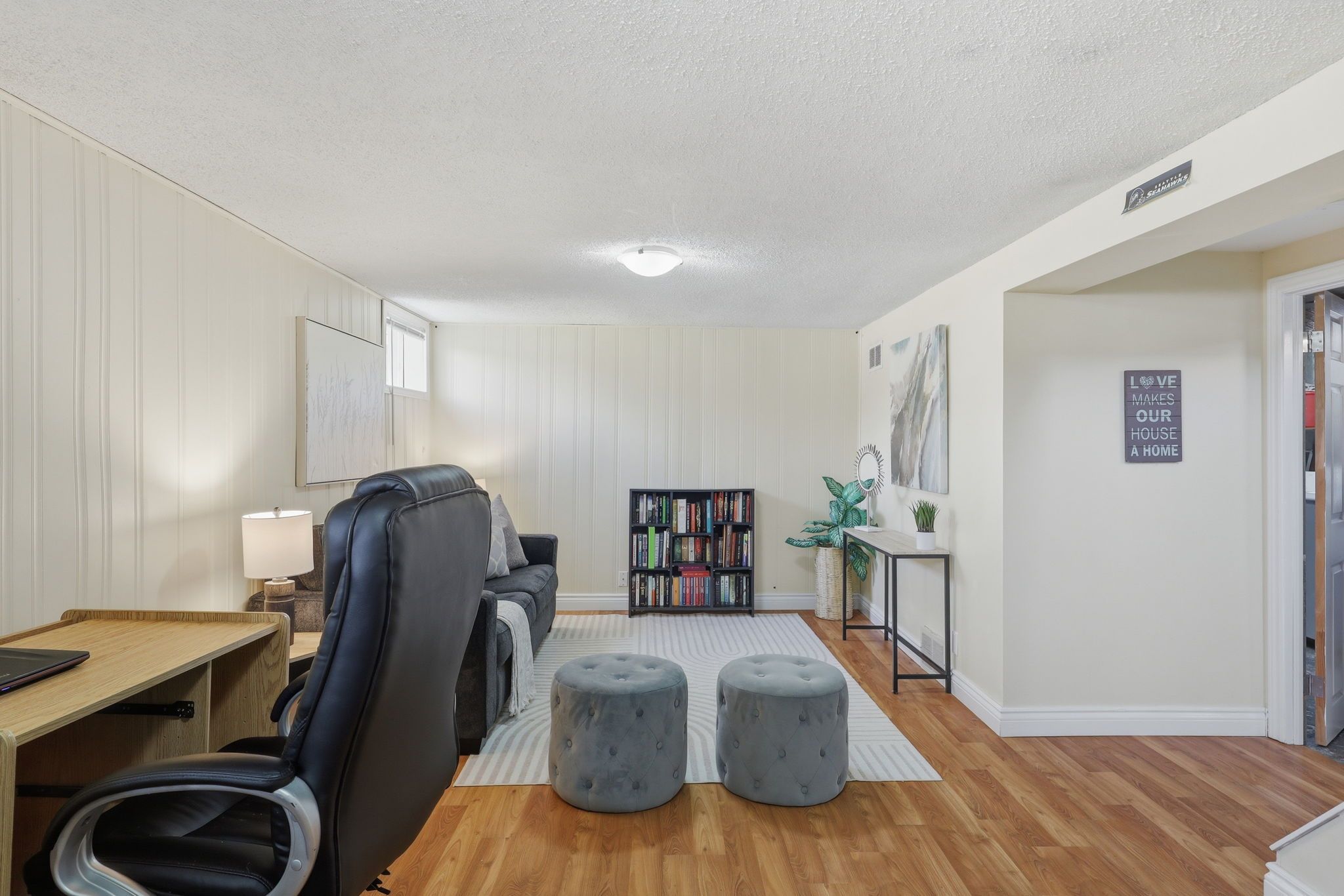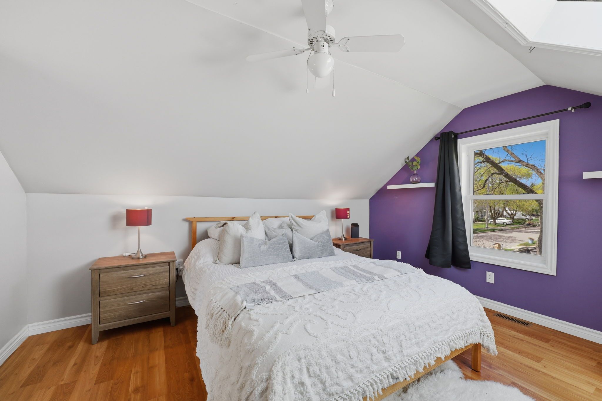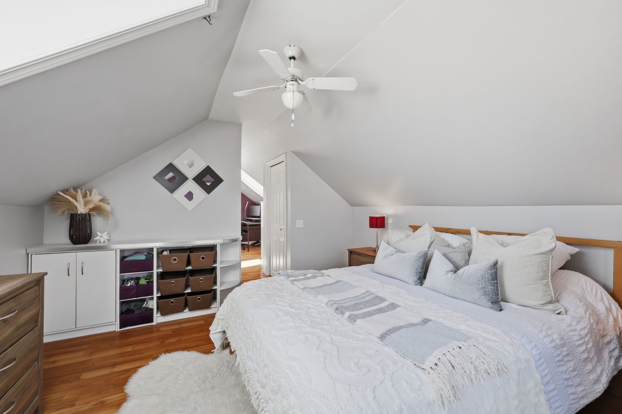 • Private upper retreat with bright loft space and skylights.