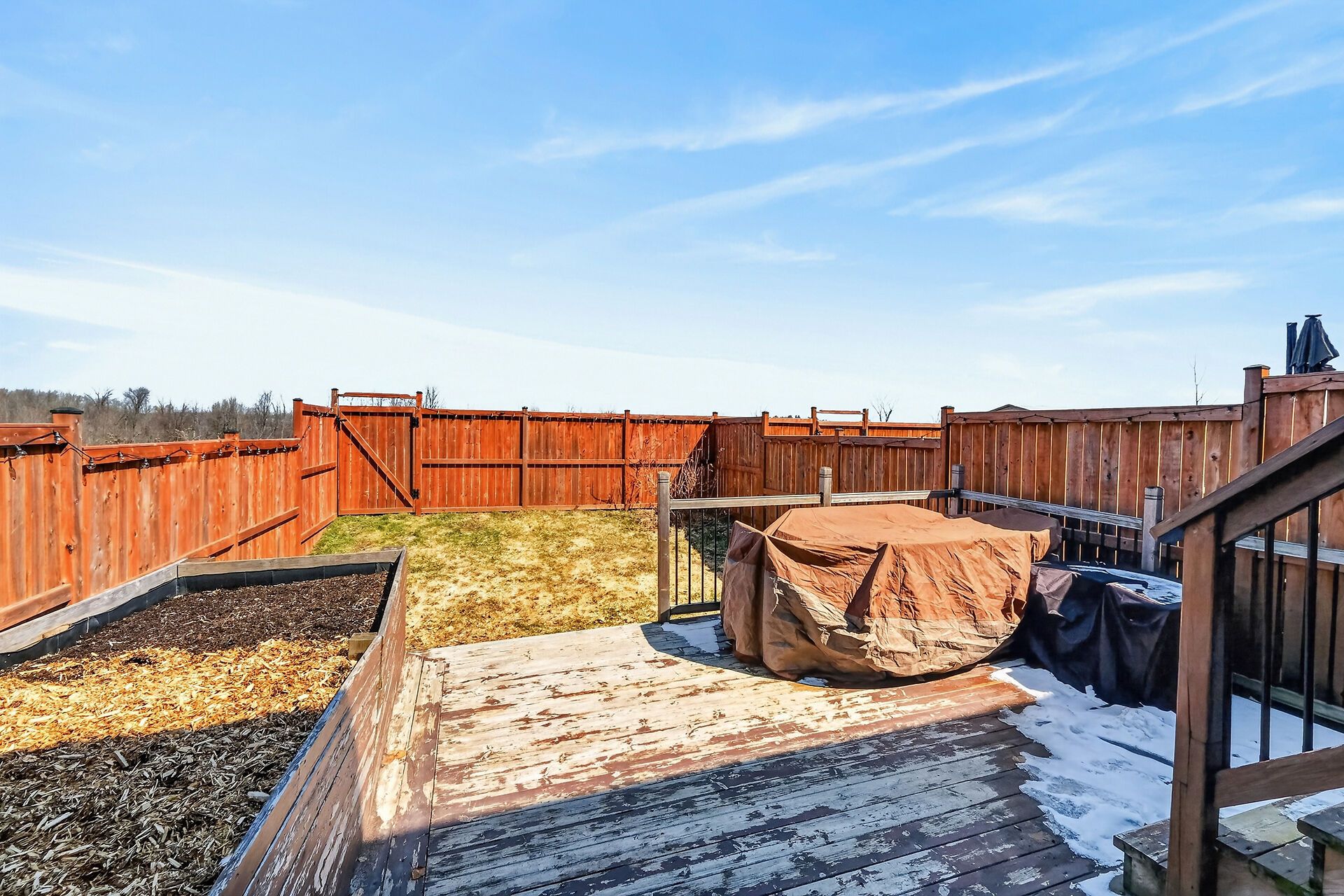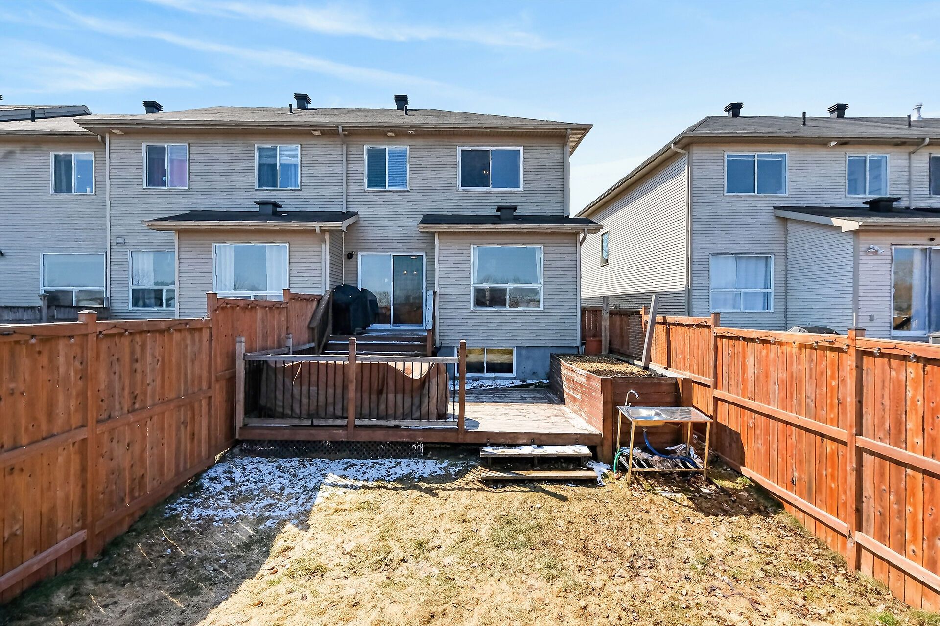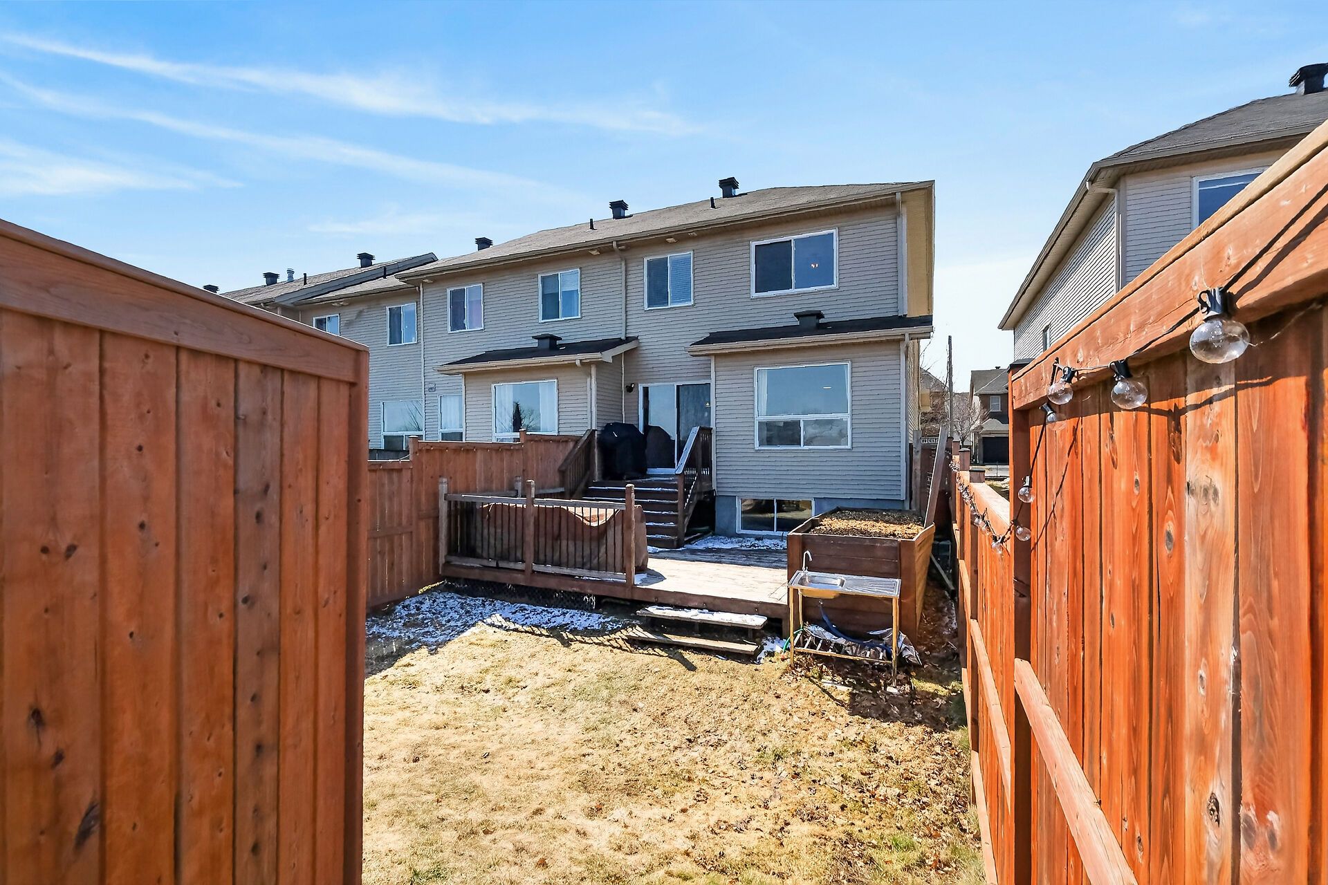 • Private fenced backyard with an oversized deck for outdoor enjoyment.
