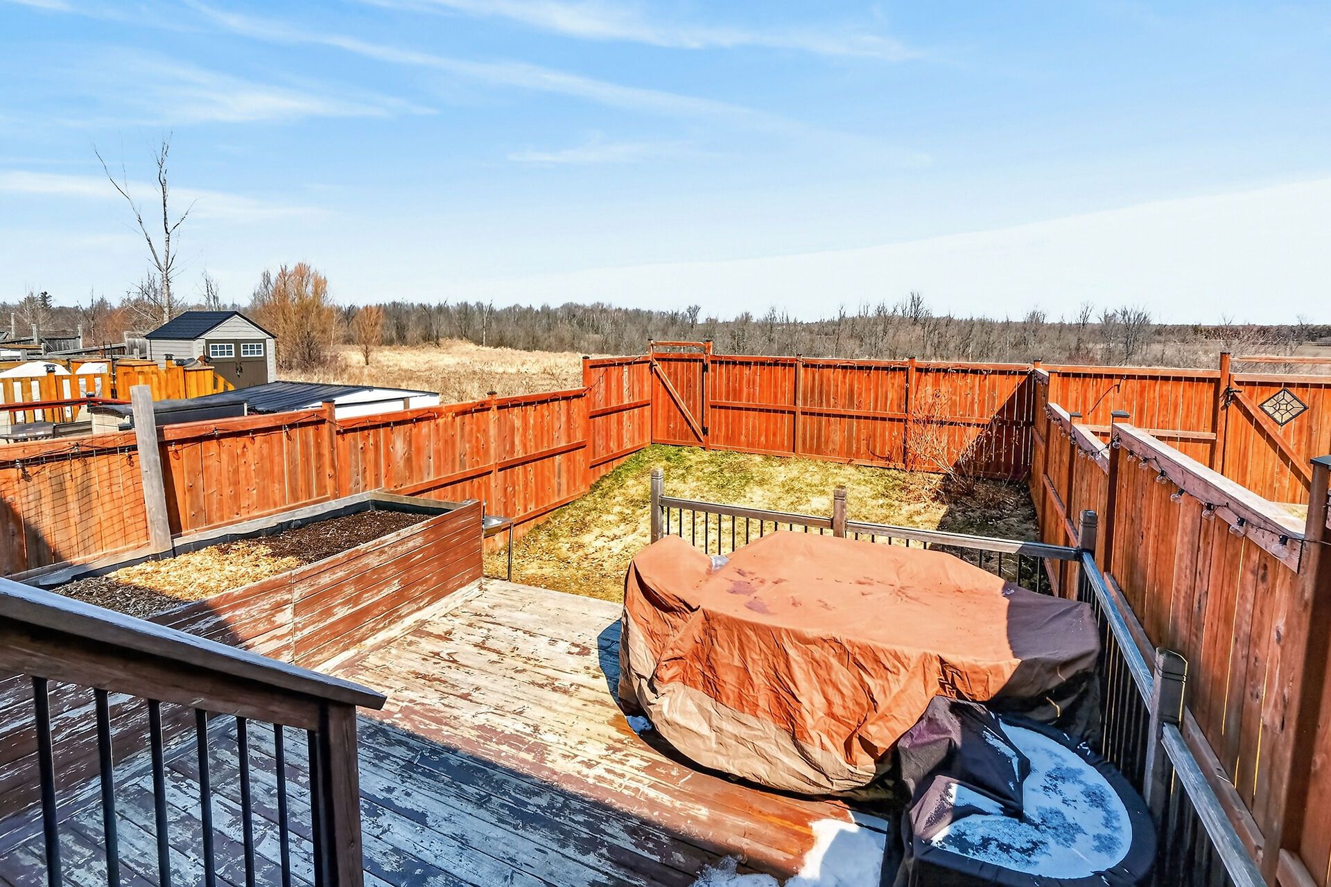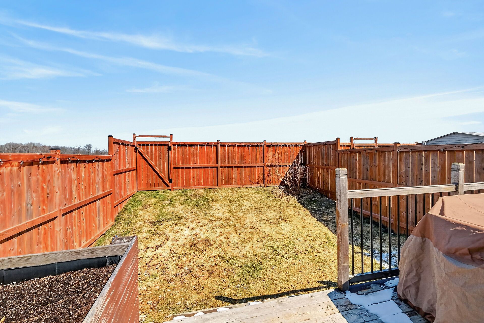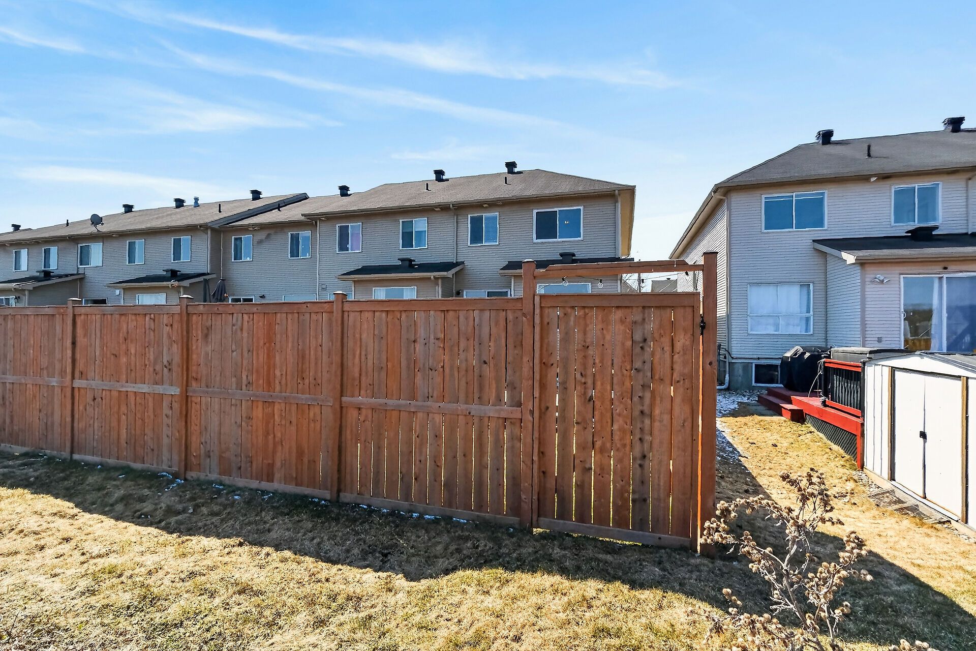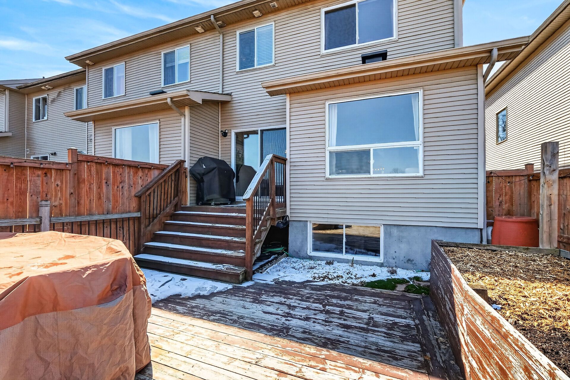 • Private fenced backyard with an oversized deck for outdoor enjoyment.