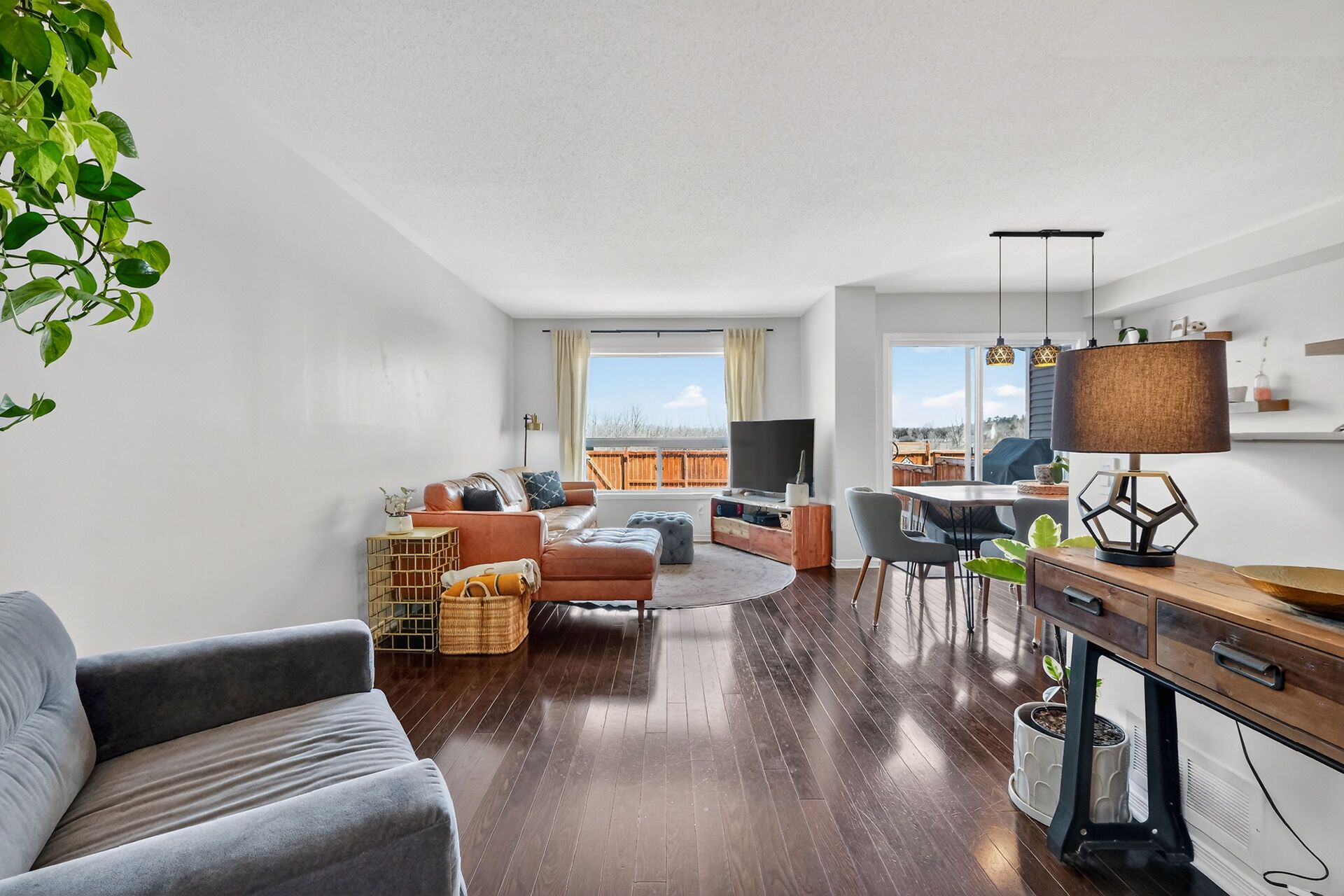 A meticulously maintained, quality-built end unit, backing on breathtaking greenspace. No rear neighbours! This stunning and stylish richcraft home, (the charleston model), is situated in the family friendly neighbourhood of east village. Curb appeal galore, with an interlock stone walkway. A lovely 3 bedroom, 2 1/2 baths, finished basement and garage with interior access. Greeted by the welcoming foyer, gleaming hardwood floors, contemporary finishings, the home opens to an expansive main floor featuring the living/dining and a well-designed kitchen. A convenient island, stainless steel appliances, and an enviable pantry. There is plenty of space to spread out and stay organized. Great for day-to-day busy living and entertaining is fun too! Plenty of natural sunlight floods the home through the wall of windows looking out on the natural landscape. The upper level is home to three well apportioned bedrooms. Retreat to the spacious primary bedroom, with walk-in closet, 4-piece ensuite, and roomy enough for the king-sized bed and your treasured furniture. The other two bedrooms are also generously sized. Plush comfy carpeting throughout the 2nd floor. Handy 2nd floor laundry. A finished living space in the lower level, can be whatever the family needs it to be. Rec room? Office? Kid's playroom? It's a comfortable and versatile space, complete with luxury vinyl flooring. Last, but not least, step through the patio doors off the dining room to the scenic backyard. Enjoy privacy, views and beauty from the comfort of your oversized deck and fully fenced yard. This is a great family home, close to schools, playgrounds, shopping, transit and millenium sports park! Move in and unpack! As per seller direction: delayed presentation of offers until tuesday, april 21 after 2pm; the sellers reserve the right to view and entertain pre-emptive offers.