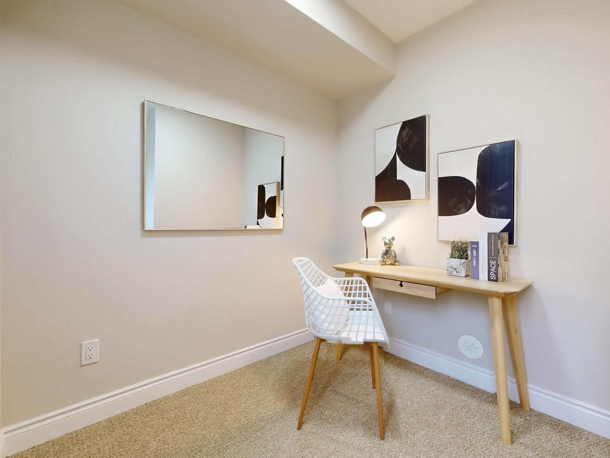 • Elegant design features like high ceilings and a cozy gas fireplace.