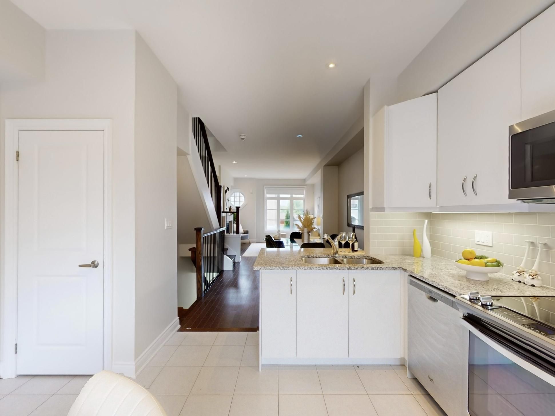 Immaculately maintained luxury freehold townhome in the prestigious river oaks community! The fairmount model boasts approx. 2,000 sq. Ft. Of stylish open-concept living, perfect for first-time buyers or families. Main floor highlights include soaring 9. 5 ft ceilings, heated foyer floors, modern led lighting throughout, pot lights, a cozy gas fireplace, and a gourmet kitchen with granite counters and walk-out to a private patio. Classic oak staircase adds warmth and elegance. Enjoy carefree living with a low monthly road maintenance fee of $177. 66, covering landscaping and snow removal, offering excellent flexibility. A rare opportunity to own a beautifully upgraded home in one of oakville's most sought-after neighborhoods.