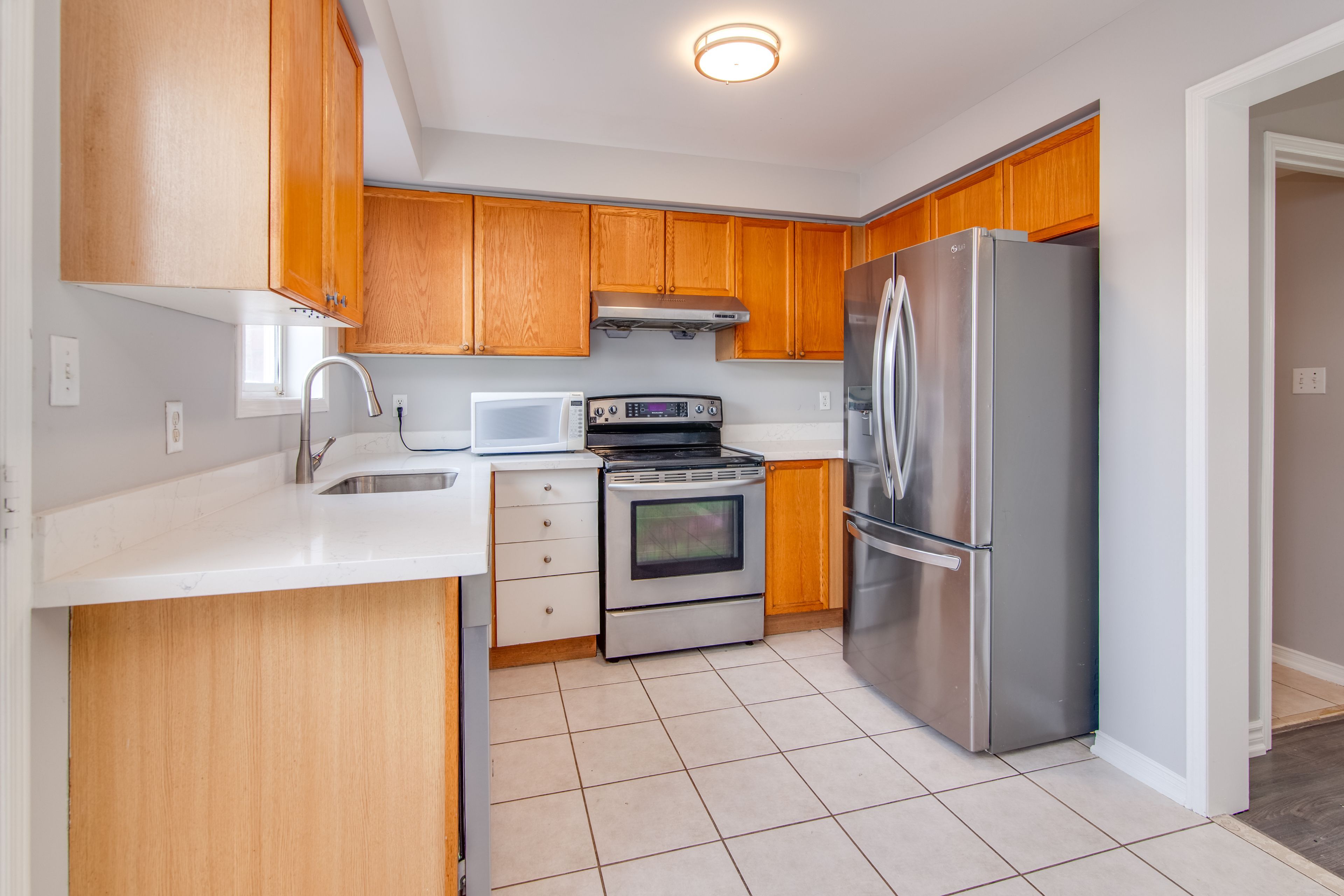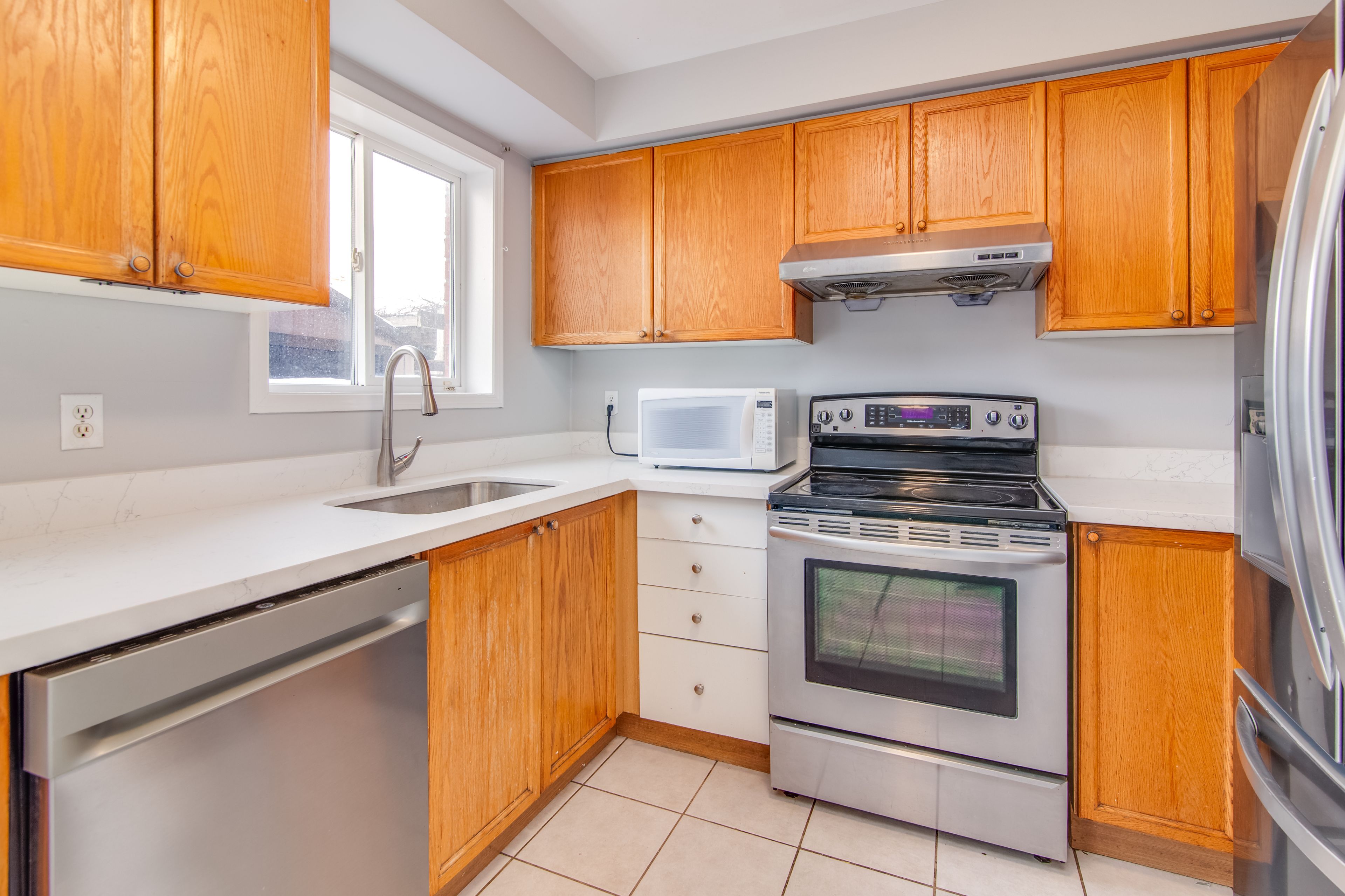 • Brand new granite countertops add modern appeal to the kitchen.