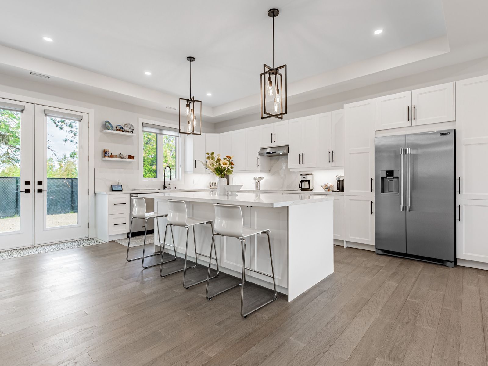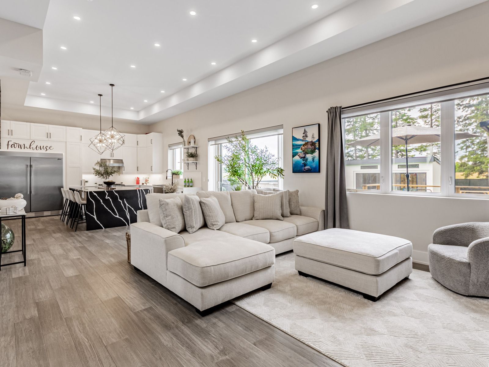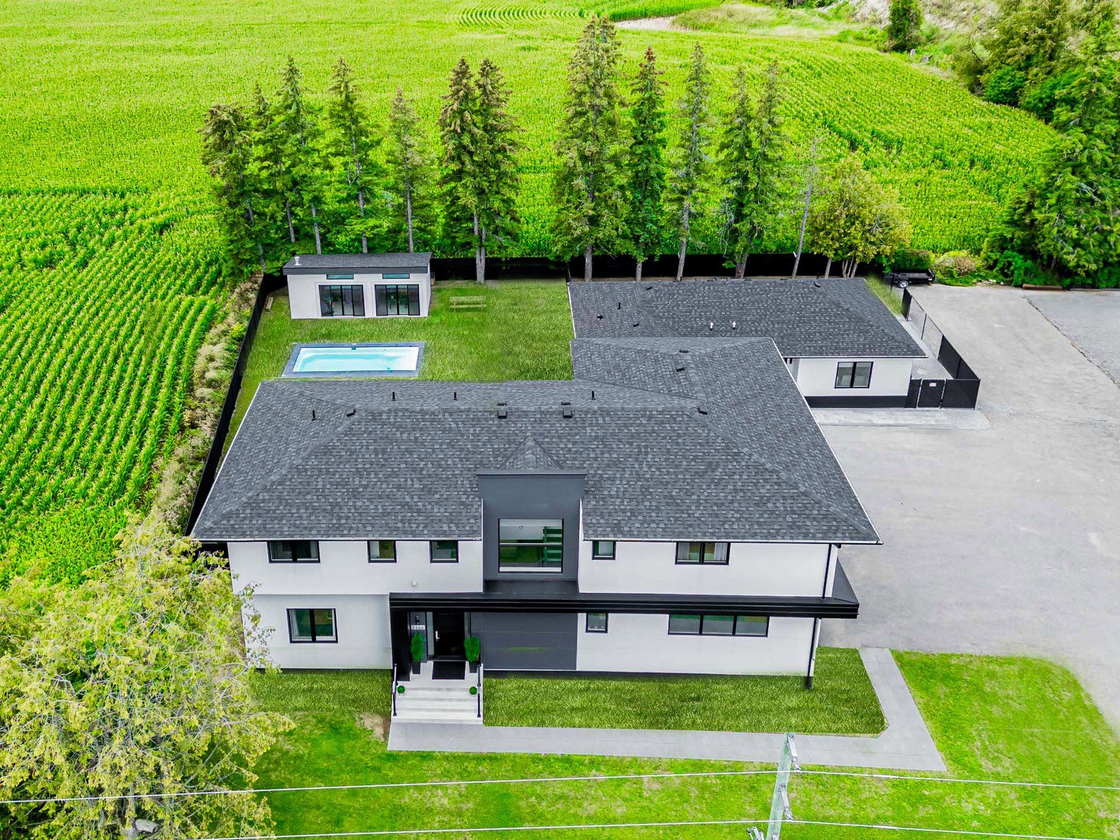 Generational living at it's finest in bradford's exclusive area. 2min to hwy 400. Feel the magnificence of this one of a kind property the second you step thru the custom automated gates. With approx 7,000sqft of combined finished living space, this 6 bed | 9 bath compound features 2 dwellings on a perfect 1acre lot. Primary house features include engineered hardwood thru/o main & 2nd, 12. 5ft ceilings on entire main floor, 9ft on 2nd, massive quartz waterfall island w/seating, quartz counters & b/splash, modern chefs kitchen, prof s/s appliances, built in coffee/bar/wine in dining, w/o to oversized deck, mudrm w/ access to gar, sunken 13ft family room with sep entr, main house primary bed retreat appx 950sqft w/ massive w/i his/hers closet, 5pc ensuite w/ his/hers shower and quartz bench, each bedrm has a 3pc ensuite & dbl closets. Second attached home boasts 10' throughout entire living space with hardwood floors and pot lights throughout. A 2nd primary bedroom with a walk-in closet & 6pc ensuite. 2nd bedroom includes built-in closets & its own 3pc ensuite. Kitchen features a stunning open concept layout with an oversized quartz island, pot lights & a walk-out to its own fenced yard and stone patio. Laundry/mudroom combination with access to its own private garage sums up this beautiful second house. Both dwellings each with own powder rooms. Enjoy the serenity of your fully fenced private backyard oasis with an inground saltwater pool, cabana with set up for a powder room, no backyard neighbours, unobstructed views of the countryside & breathtaking sunsets. Side yard fenced w/ green space currently a soccer field. Feel secure with 16 surveillance cameras, alarm system & intercom/bell system at gate & front door. 200amps each house, sep hydro meters, outdoor containerworkshop, wifi garage, gate openers, custom blinds, 3 laundry, fibre int. Mins to schools, shops, restaurants, parks, school bus route & much more! The optimal live/work/play lifestyle.