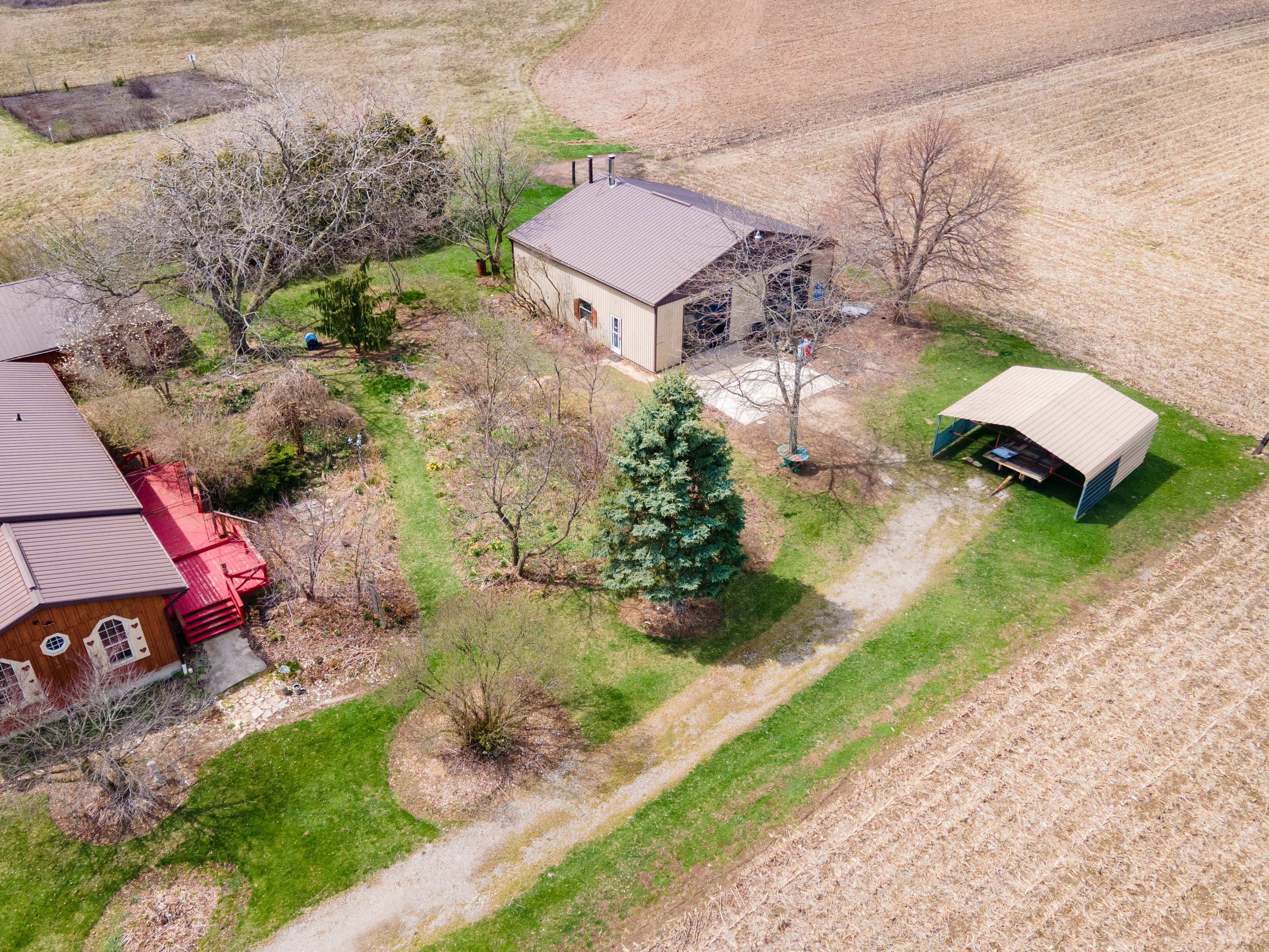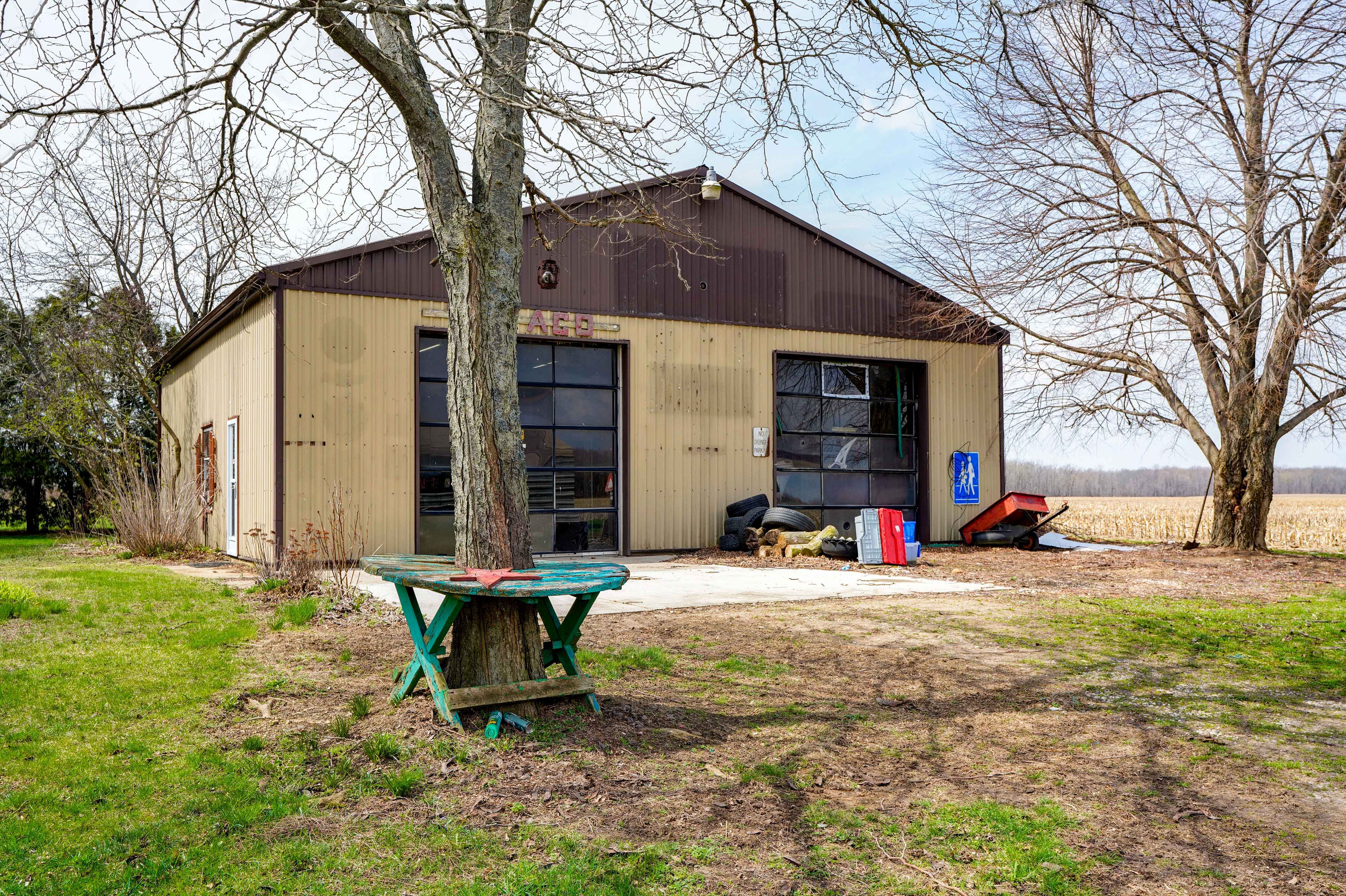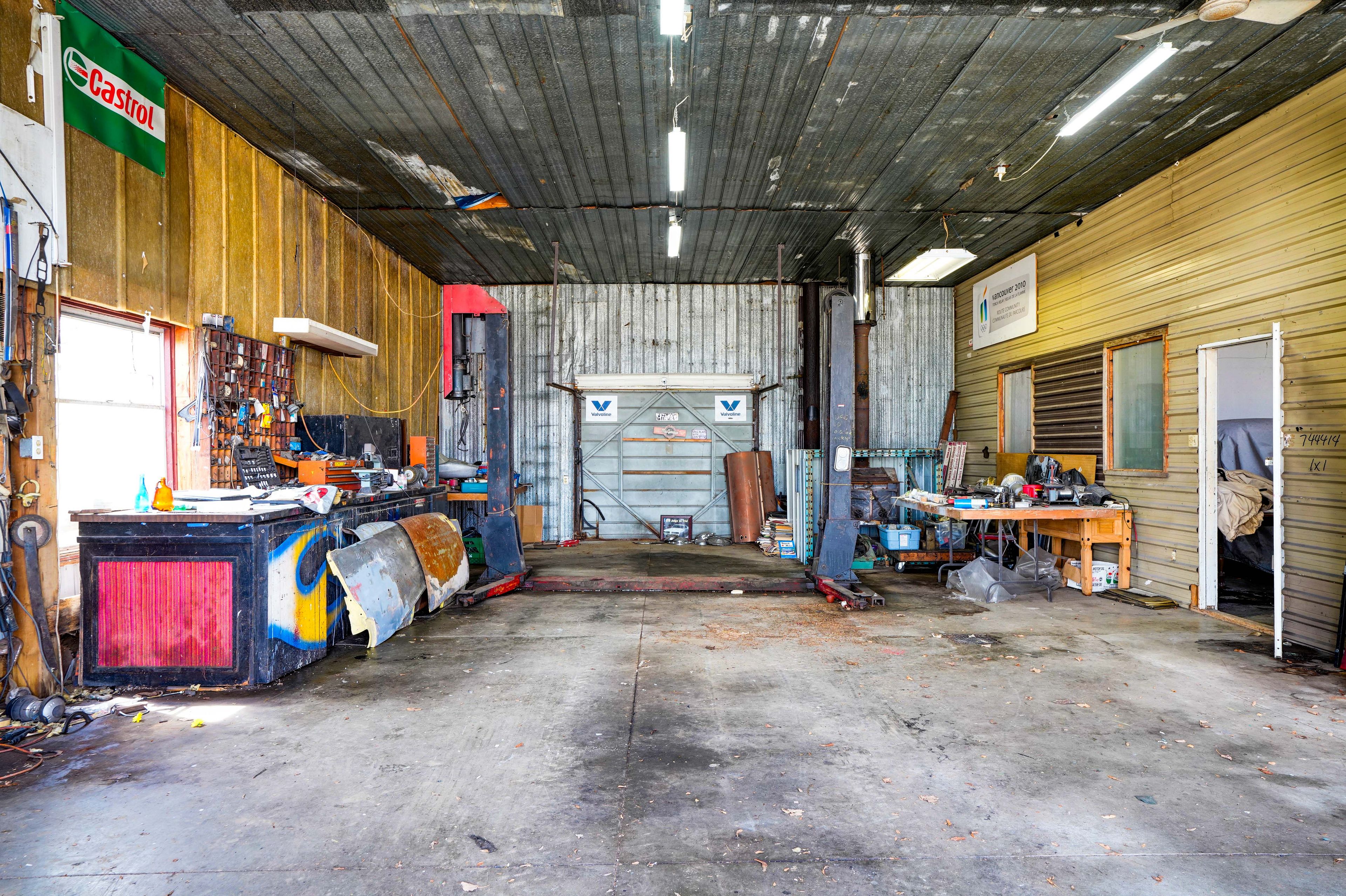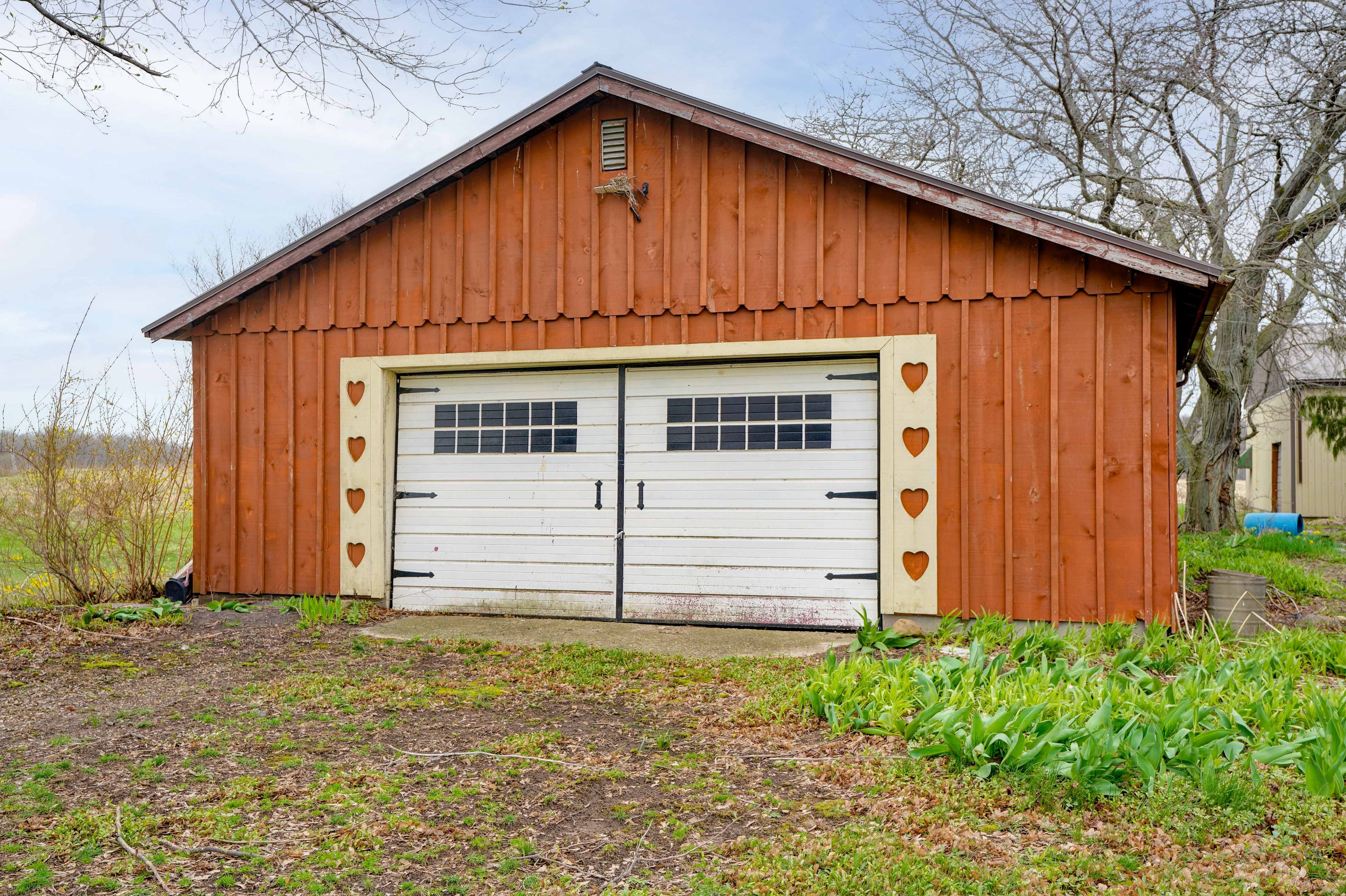 • Large detached garage and insulated shop with essential tools for projects.