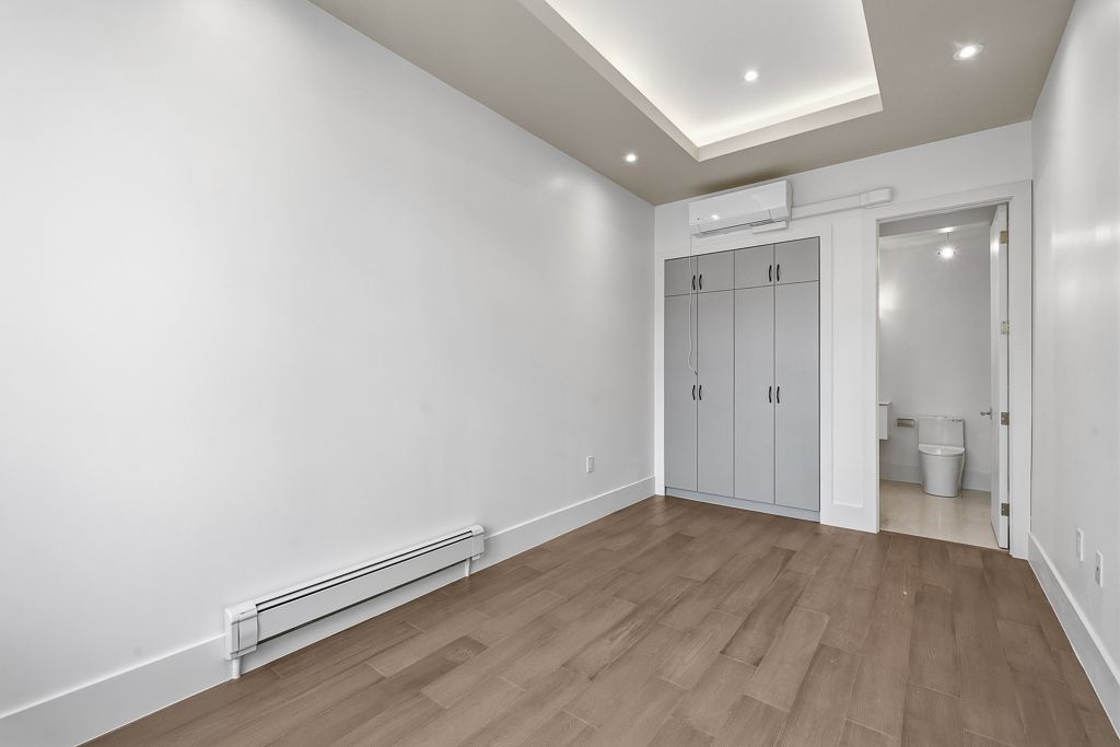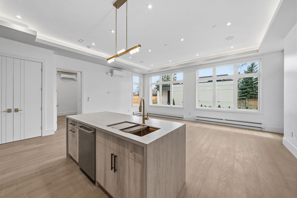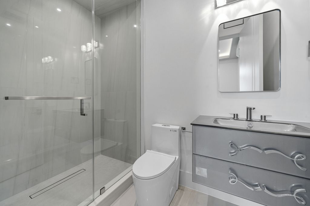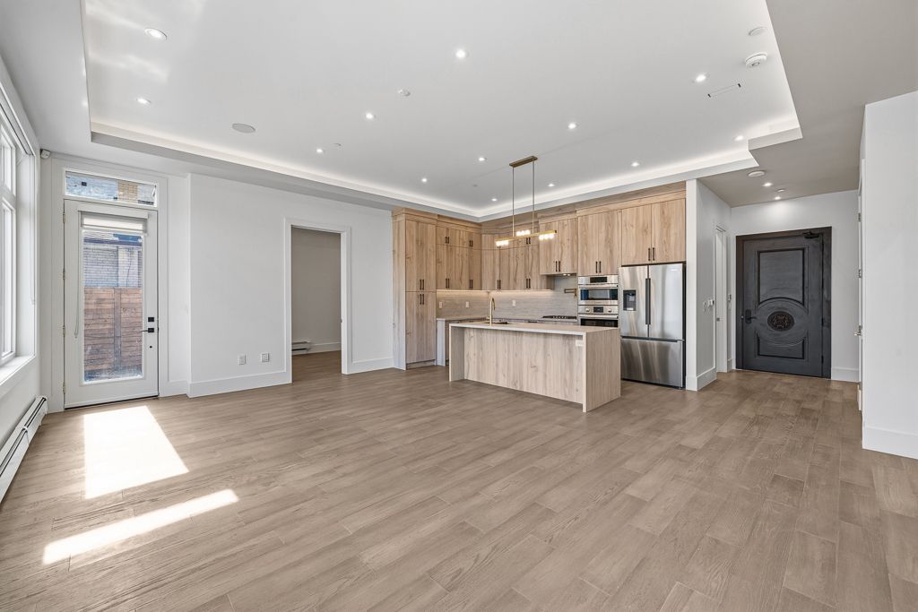 The aurelia suite - perfectly designed for modern family living, this exceptional ground-floor custom-built luxury multiplex residence showcases a striking custom precast exterior and offers approximately 1,686 sq. Ft. Of thoughtfully designed living space, featuring an exclusive oversized outdoor patio-ideal for entertaining and seamless indoor-outdoor living. Bright and open-concept layout filled with natural light, perfect for both everyday living and hosting. The modern eat-in kitchen serves as the heart of the home, showcasing a large centre island, premium porcelain countertops, and high-end bosch appliances, delivering both style and functionality. This residence offers 3 spacious bedrooms and 4 beautifully appointed bathrooms, including a luxurious primary suite complete with a walk-in closet and private ensuite. Enjoy enhanced comfort with heated flooring throughout, individual climate control, and a private tankless water heater. Fully integrated smart home automation allows control of lighting, sound system, speakers, and monitoring features. Premium lighting and custom window coverings are installed throughout. Designer vanities by armadi art (italy), along with upscale porcelain finishes in the kitchen and laundry, elevate the refined aesthetic. Samsung laundry included. Common areas feature shared security cameras for added peace of mind. Ideally located steps to top-rated schools, parks, and transit. A rare opportunity to own a highly upgraded luxury residence with exceptional outdoor space in a prime location.