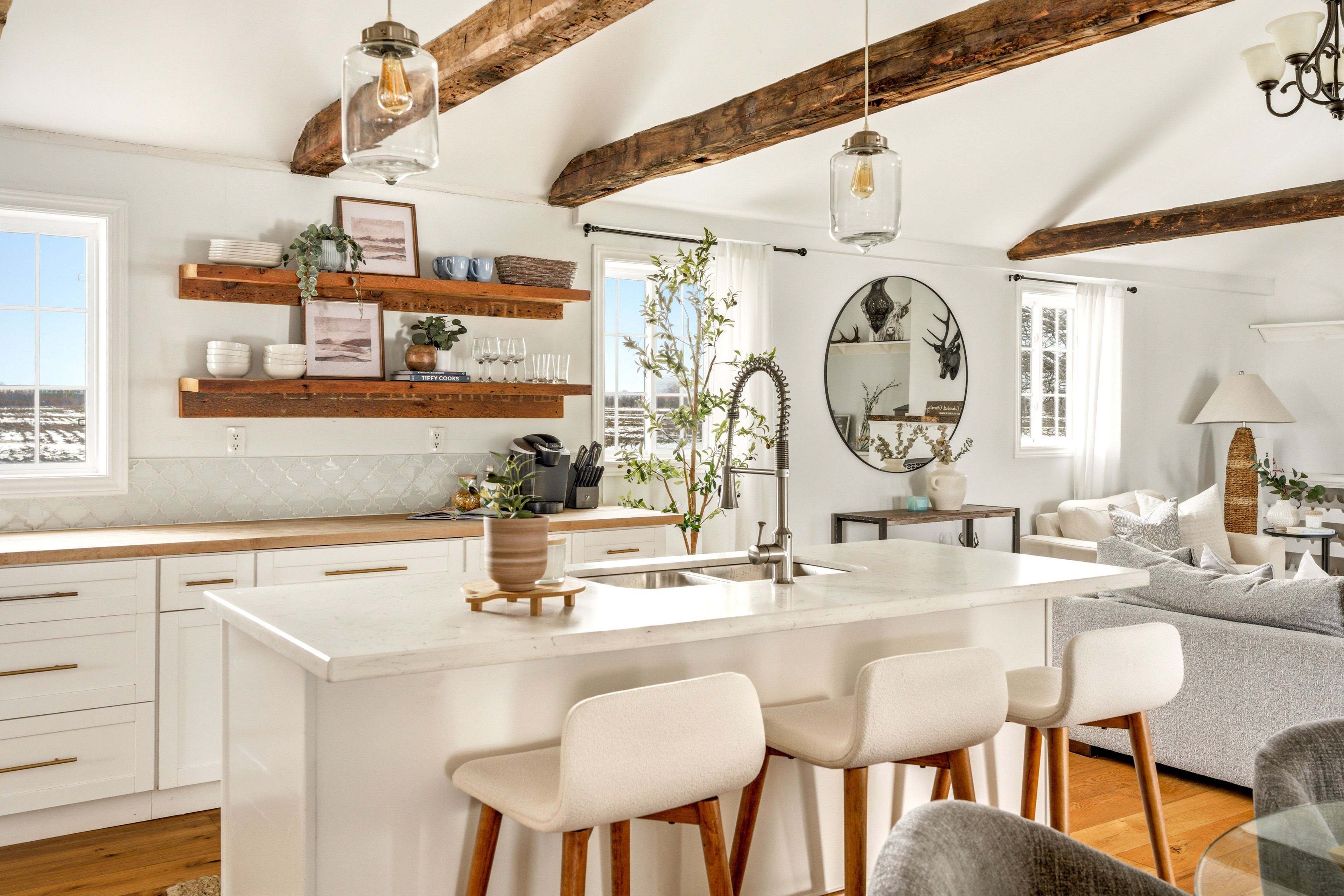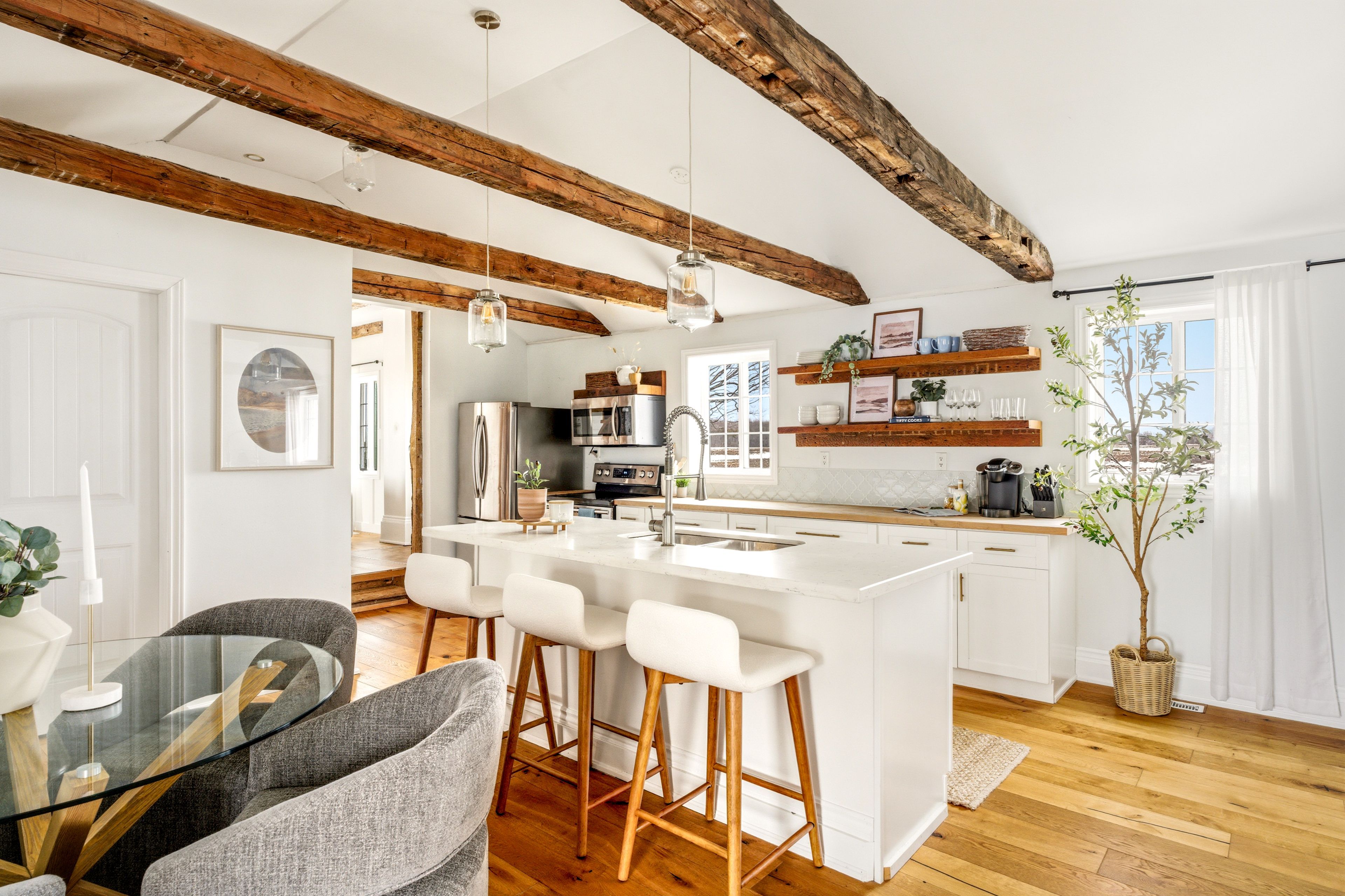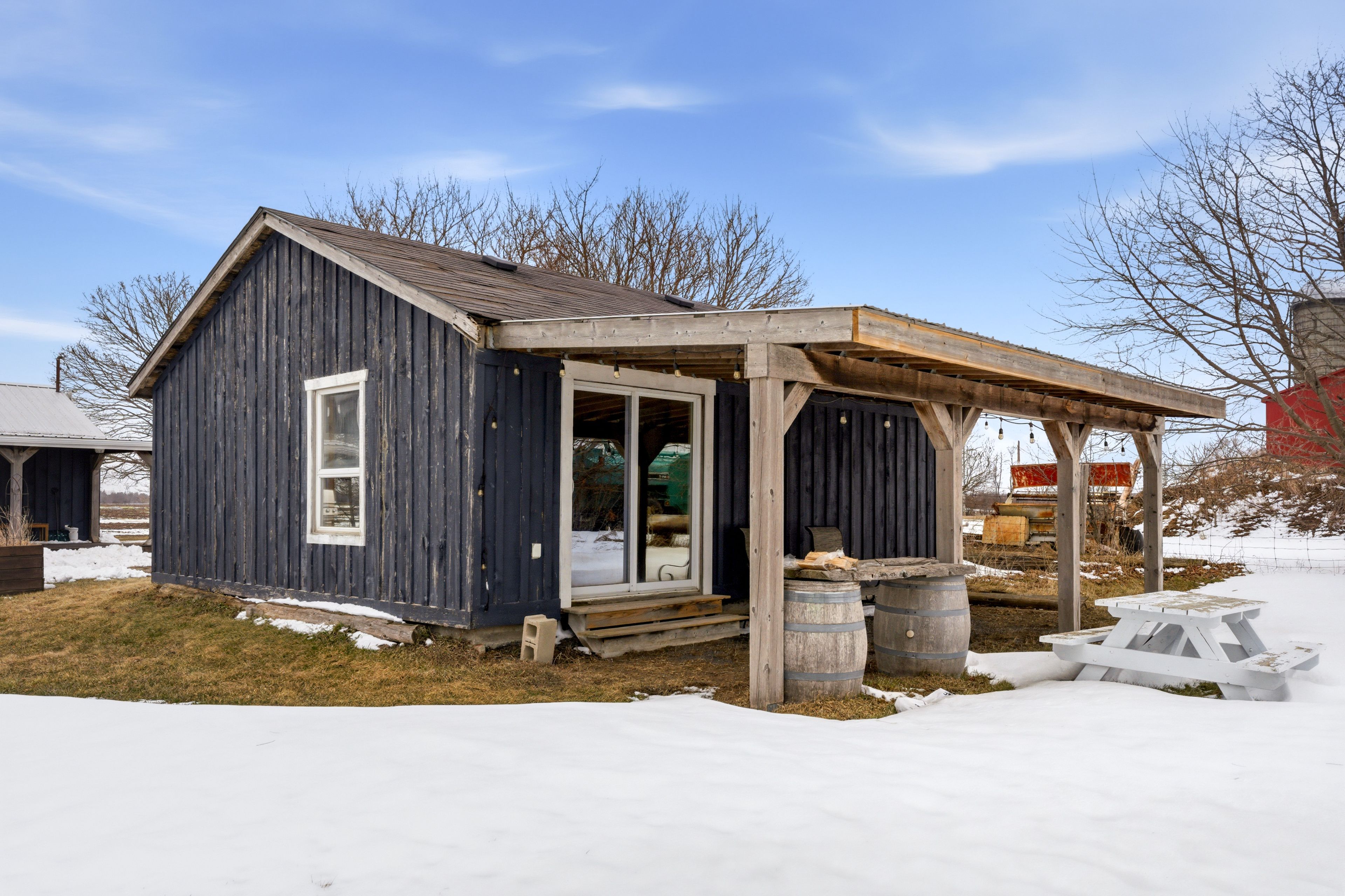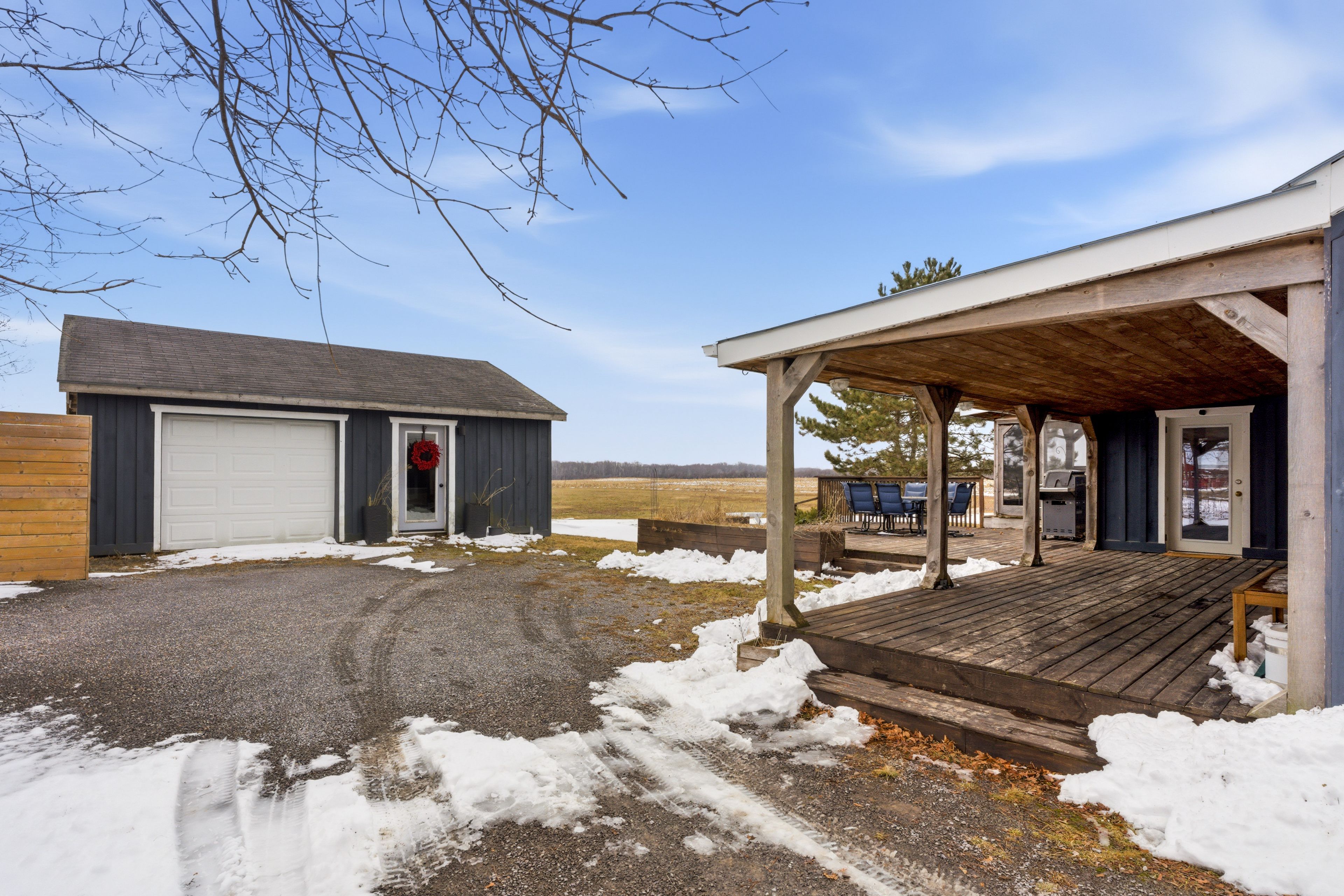 Imagine waking up to this. Rolling countryside as far as you can see. A versatile outdoor space, either front or back, where the only thing on your agenda is deciding which direction to watch the sunrise with a coffee or the sunset with a glass of wine. This is county living. This beautifully updated home makes it yours, year-round or seasonally, whatever direction you want to take it. The open-concept main floor was made for the way people actually live. Light pours in, views draw you outside and the layout flows naturally through the open concept kitchen and living area. Effortless quiet mornings to expansive dinner parties. The versatility can't be overstated. The main-floor bedroom features an ensuite and walk-out. Upstairs, two bright bedrooms and a 5-piece bathroom welcome family and guests with warmth and character. Thoughtfully updated throughout, combining the home's historic charm while delivering the comfort and style today's buyers expect. The detached garage goes beyond parking and storage. One side for indoor parking, the other side is ready to become a gym, wellness escape, yoga studio or dedicated home office. Right in the heart of ontario's most desired destination. Less than 10 minutes to prince edward county's wellington restaurants, wineries, shops and shoreline. Whatever your lifestyle, there's space for it here.