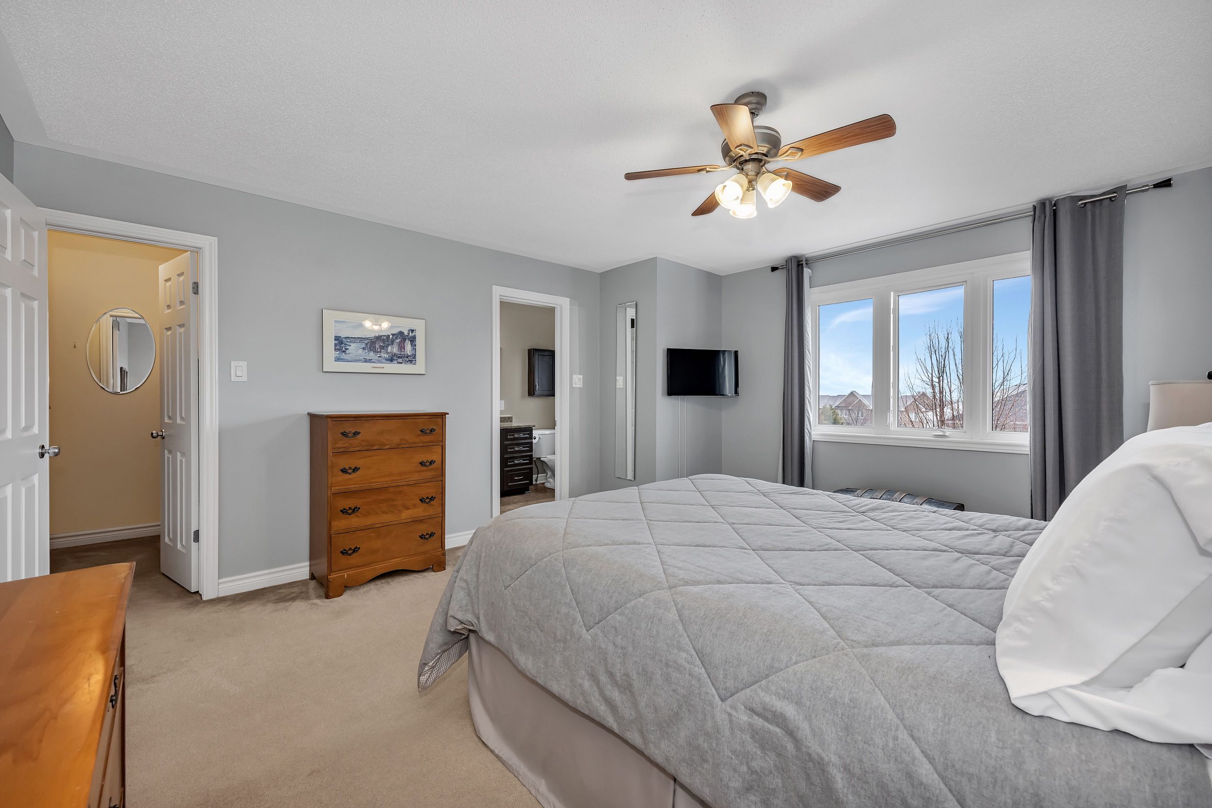 • Bright primary suite with walk-in closet and ensuite bathroom.