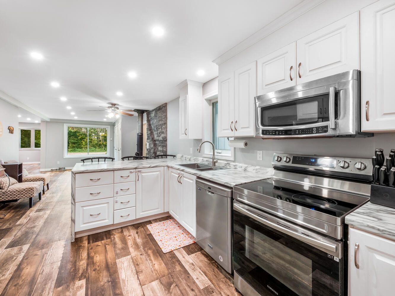 • Cozy wood stove adds warmth and country feel to the home.