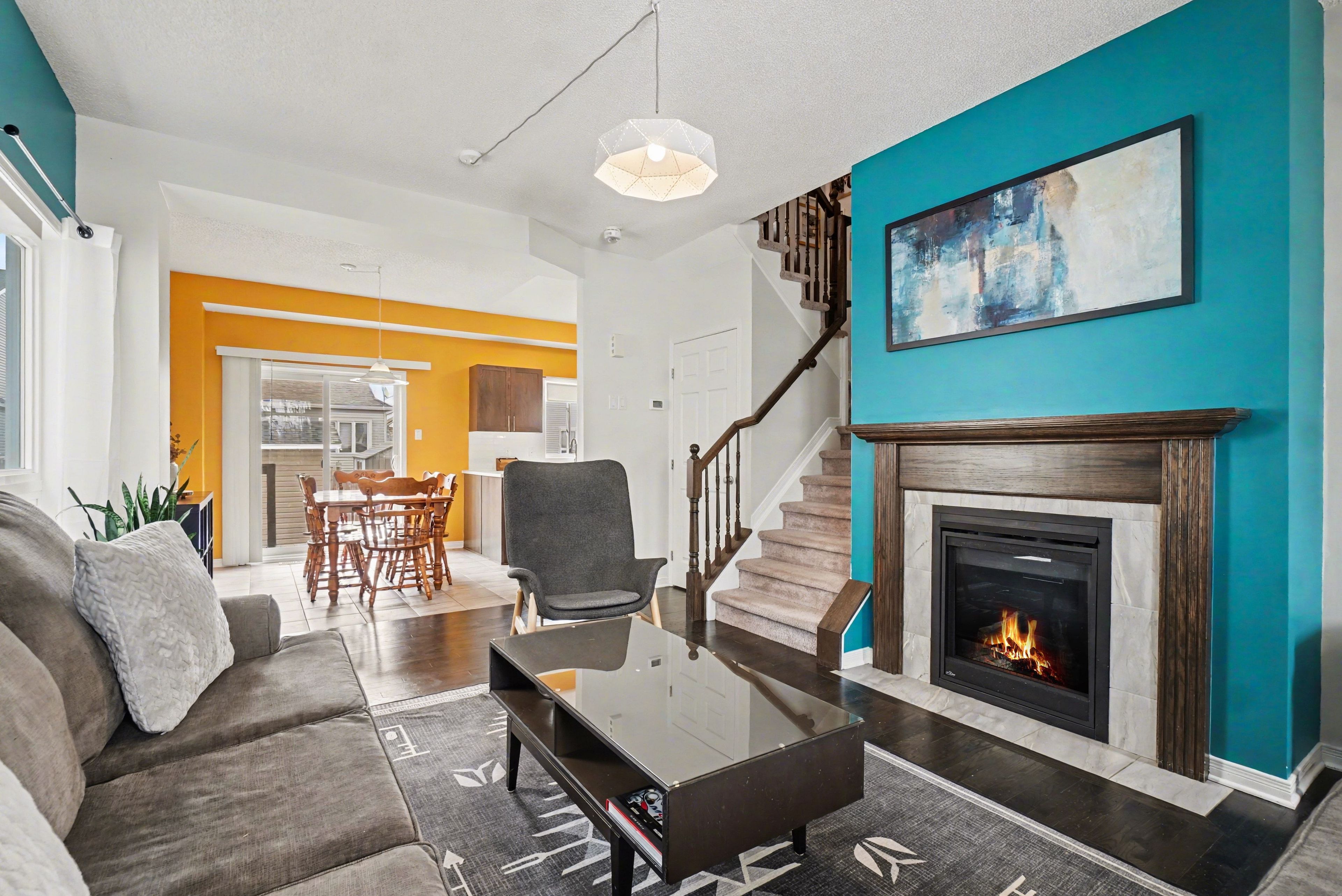 • Bright open-concept main floor with a cozy gas fireplace.