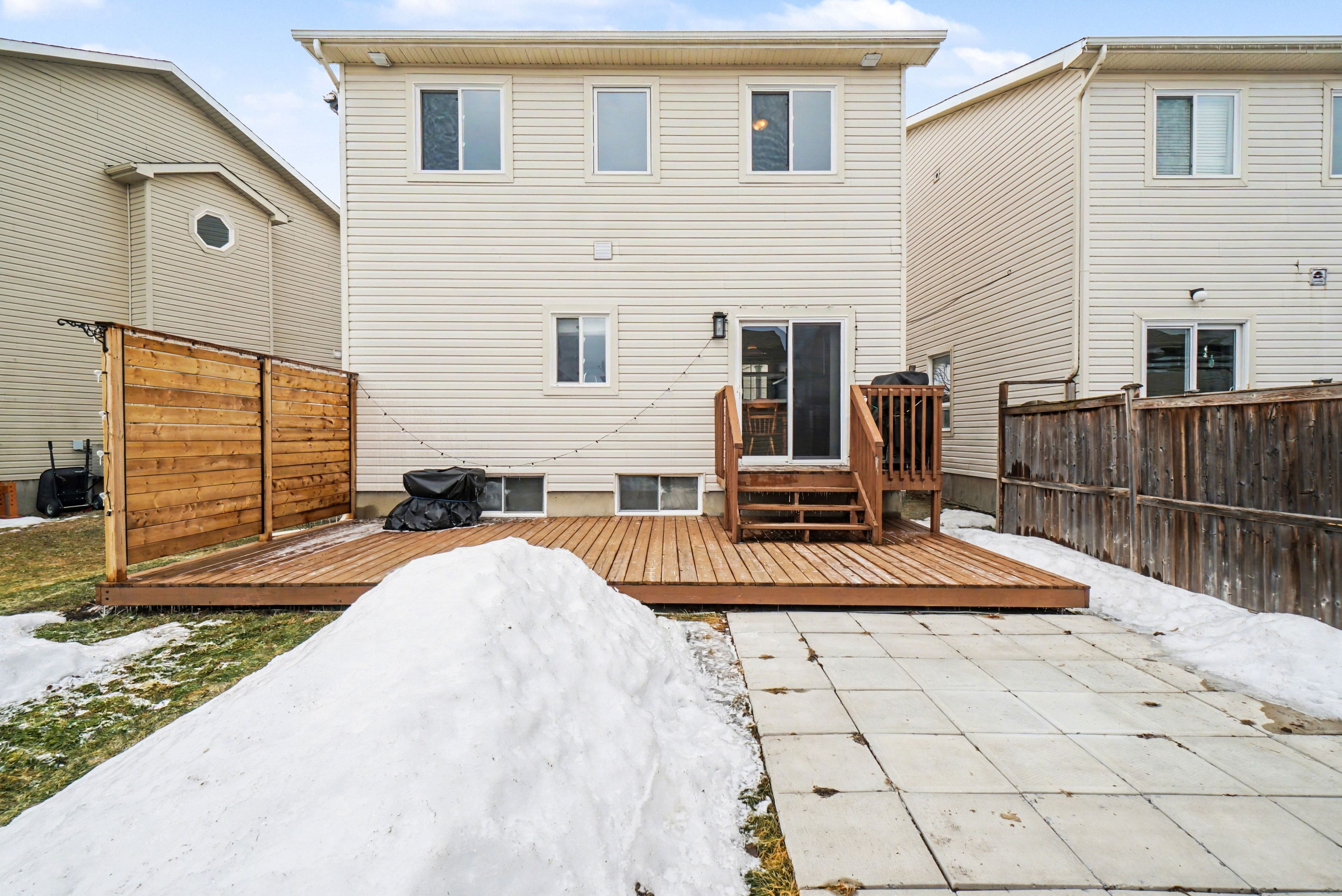 Welcome to this beautiful single-family home located in a quiet and family-friendly neighbourhood of rockland, just steps from a nearby park. This inviting property offers a bright and spacious open-concept main floor featuring a comfortable living and dining area highlighted by a cozy gas fireplace and abundant natural light. The kitchen offers plenty of workspace and flows perfectly into the dining area with patio doors leading to a large deck overlooking the partially fenced backyard, complete with a privacy wall between neighbours-perfect for relaxing or entertaining. A convenient powder room completes the main level. Upstairs, you will find a generous primary bedroom featuring a private 4-piece ensuite, along with two additional well-sized bedrooms and another full 4-piece bathroom. The fully finished basement adds exceptional living space and offers endless possibilities. It could easily serve as a family theatre area, spacious family room, gaming space, or even a workout area to suit your lifestyle. The lower level also features a 2-piece bathroom, a laundry room, a storage room, and plenty of additional storage space throughout the home. A wonderful opportunity to own a spacious and well-maintained home offering comfort, functionality, and great living space both inside and out.