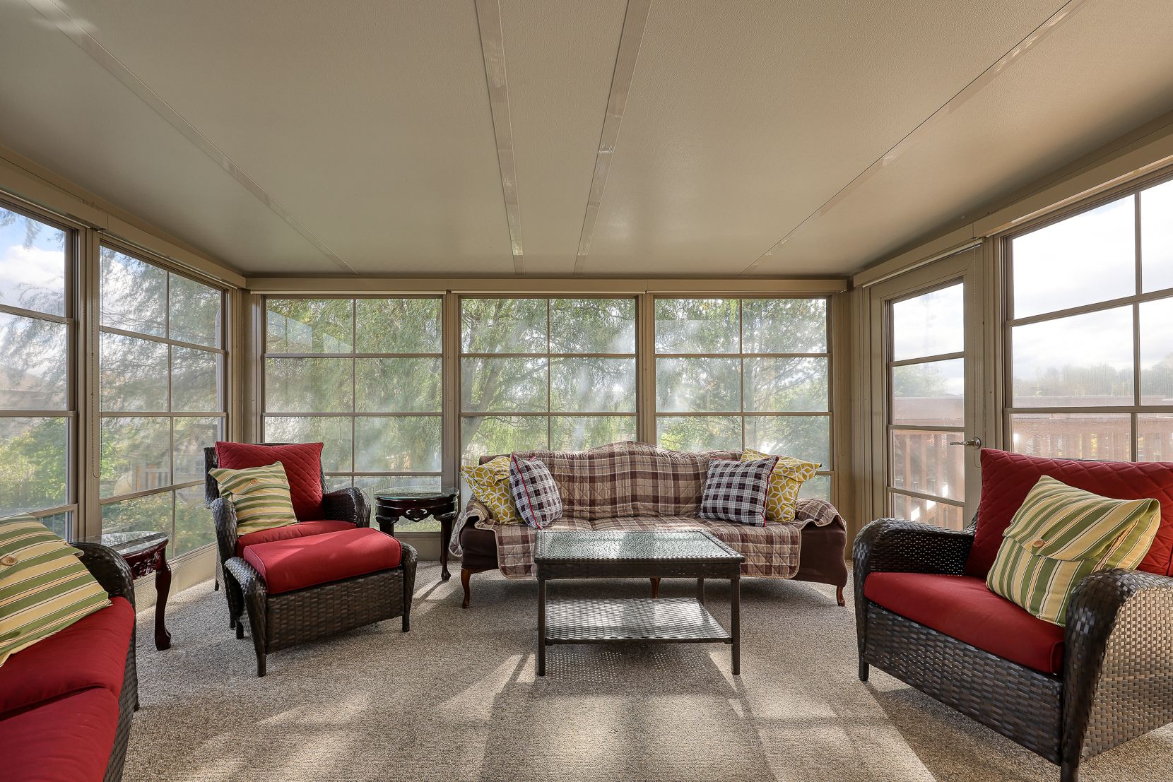 • Bright three-season sunroom perfect for relaxing or morning coffee.