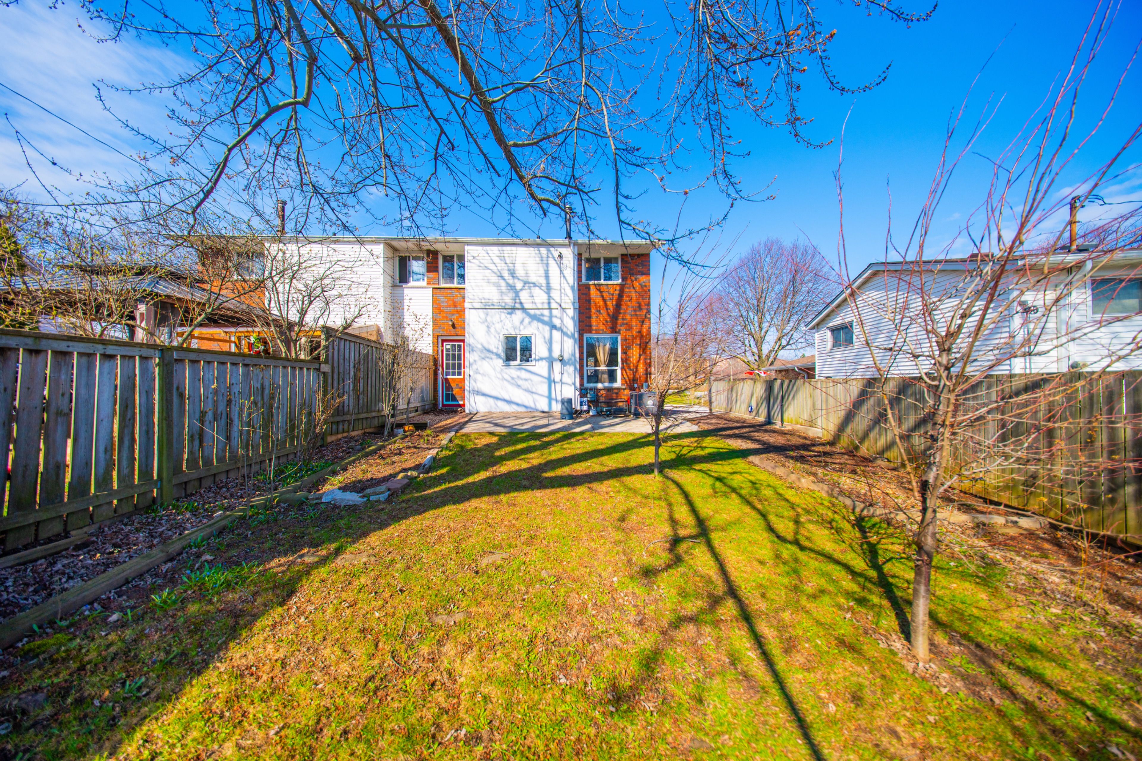 • Private backyard with patio for BBQs, outdoor seating, and green space.