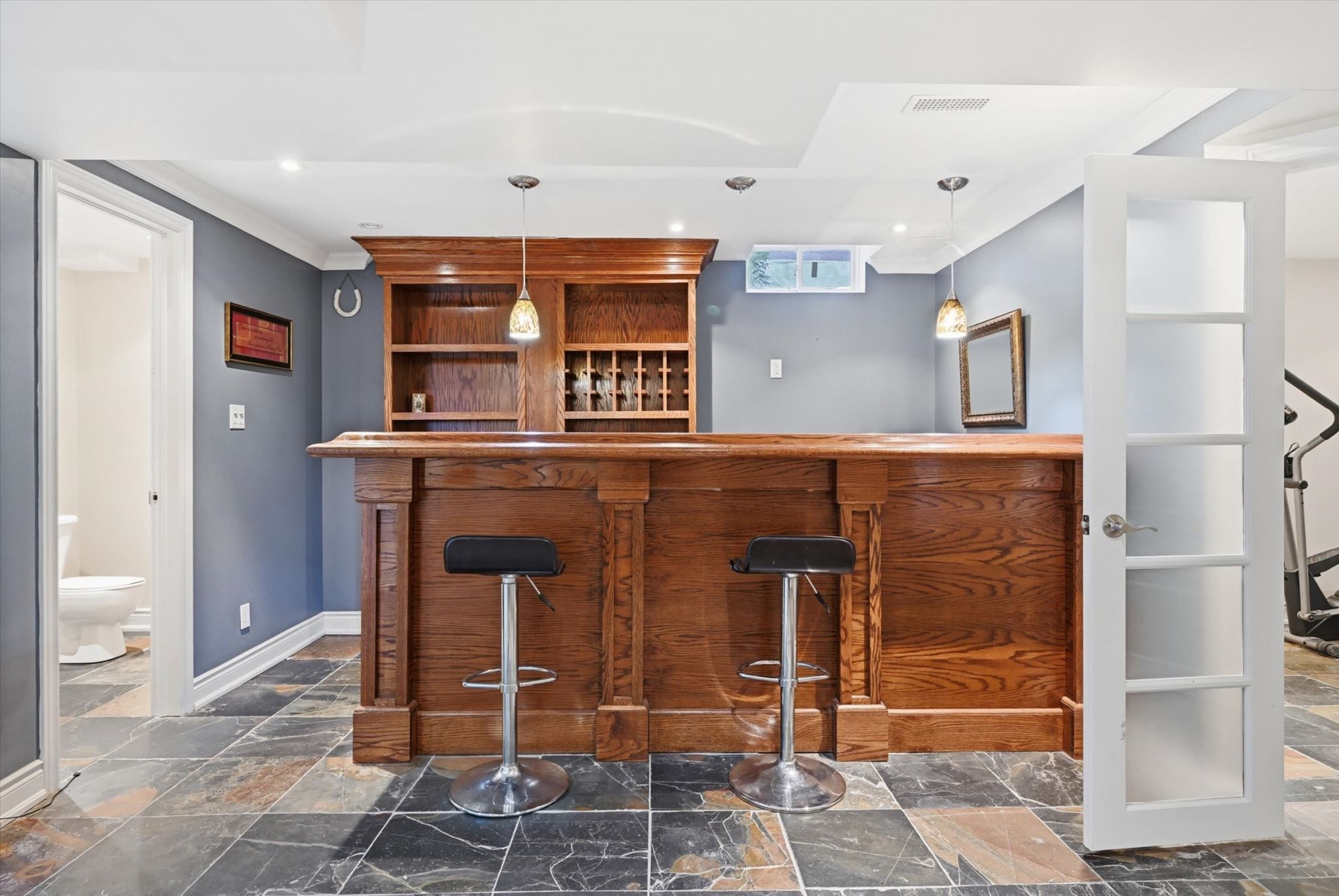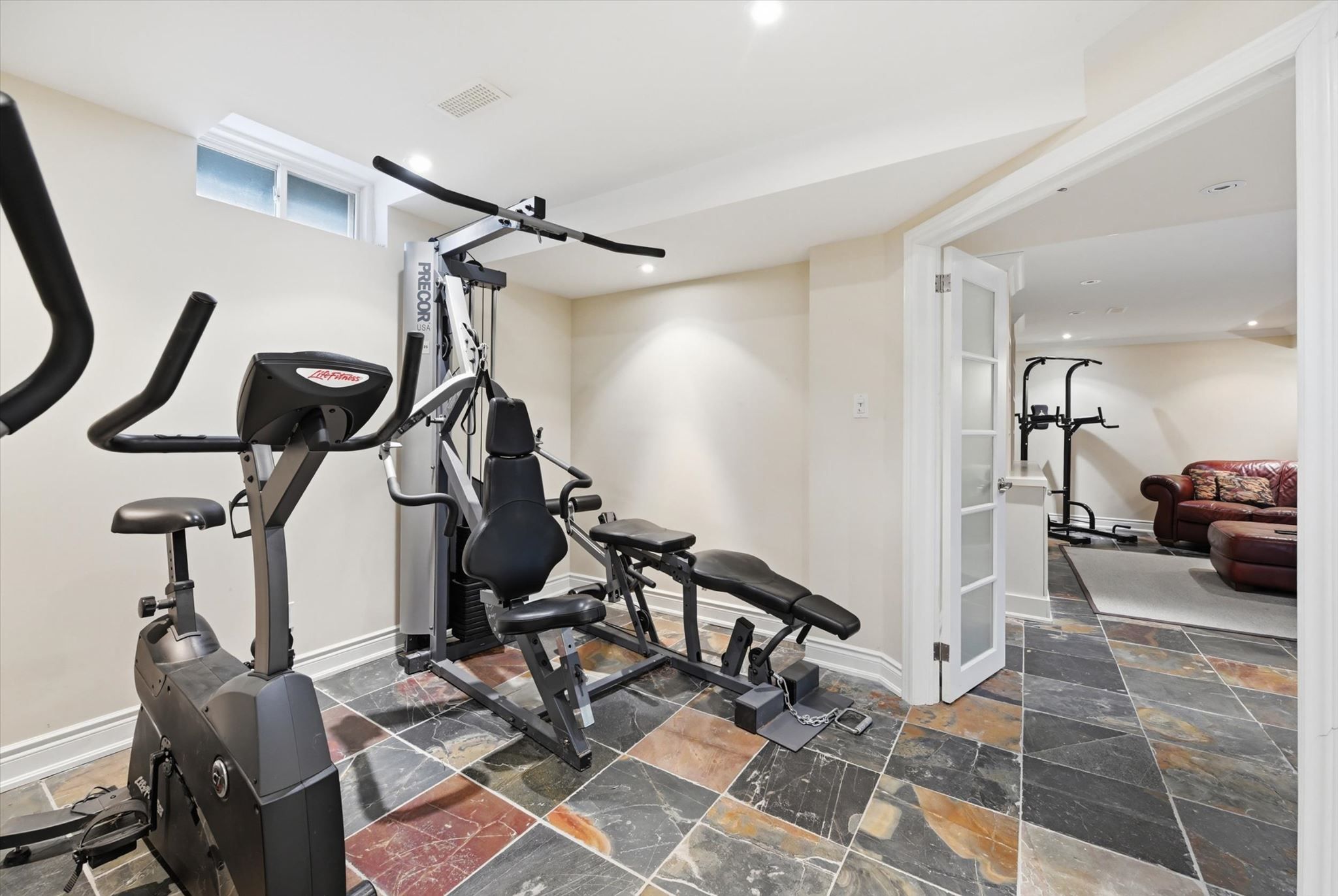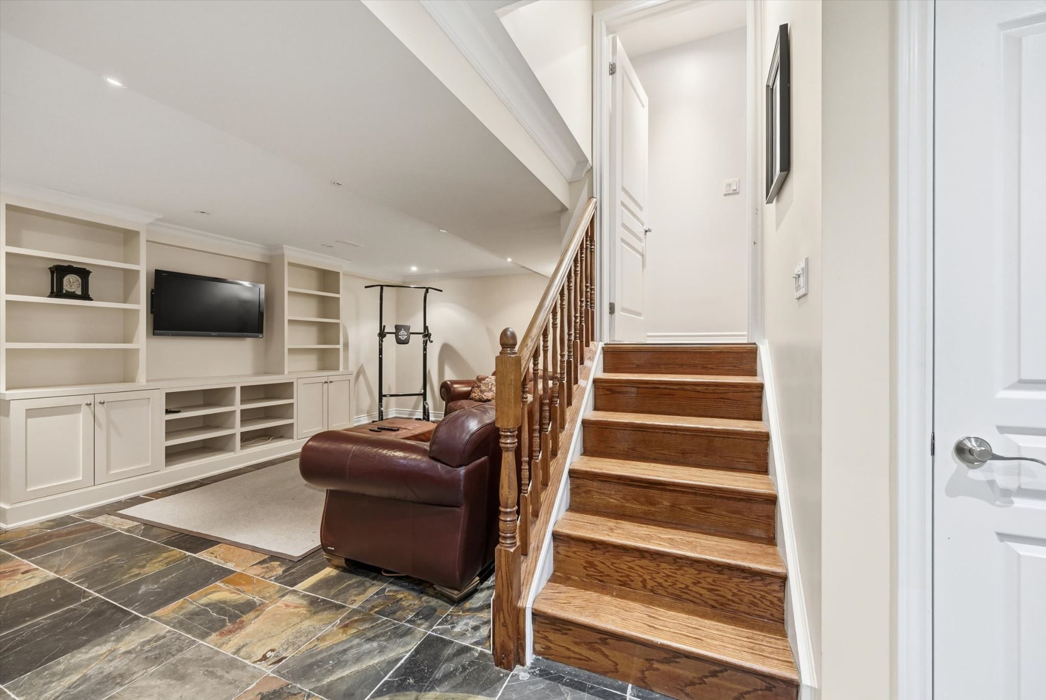 • Professionally finished basement includes a large recreation room and gym.
