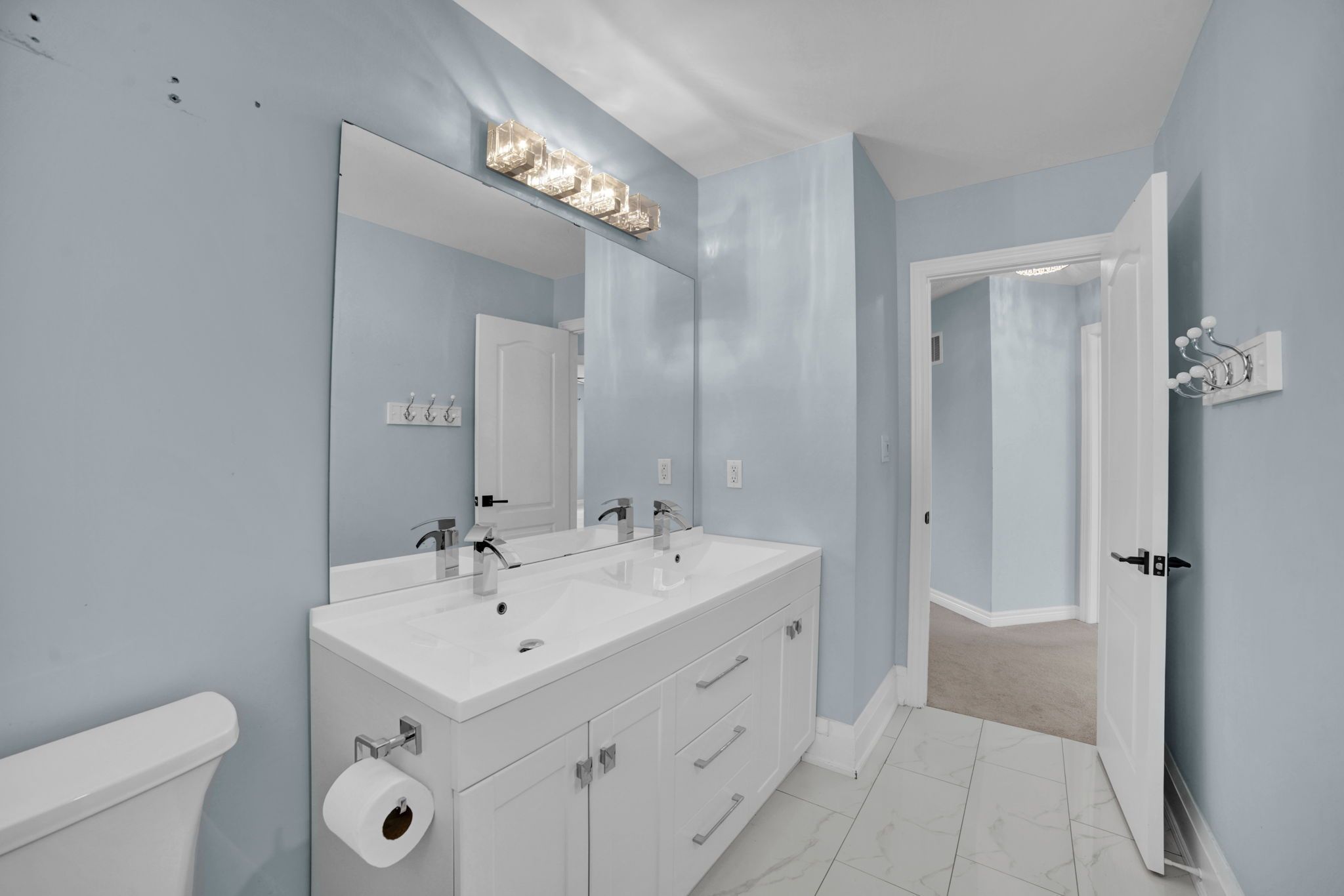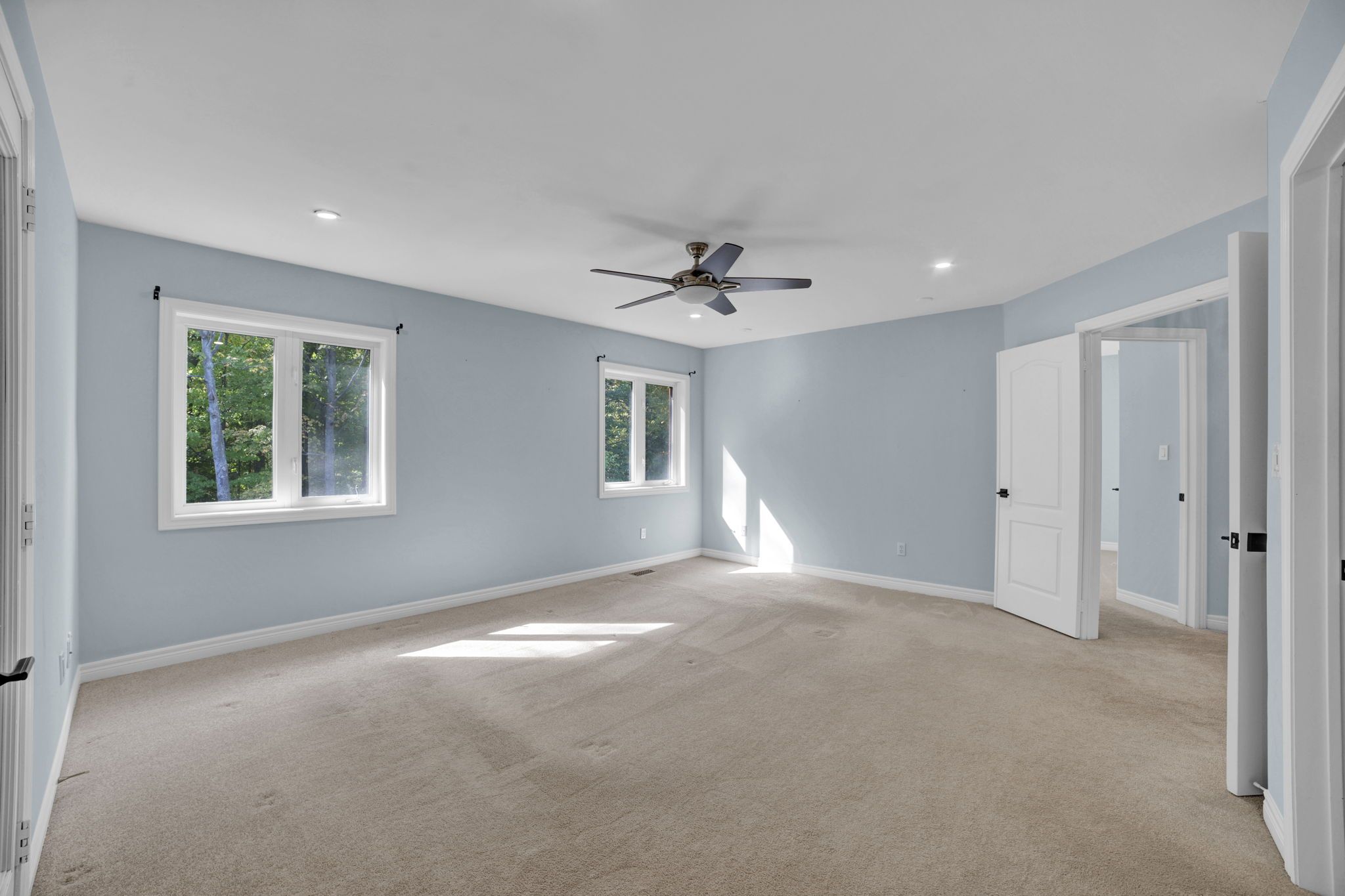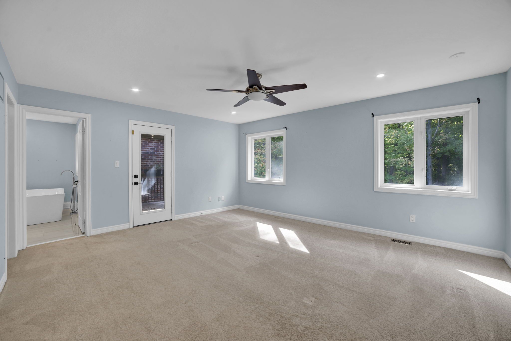• Expansive primary suite with a walk-in closet and private balcony.