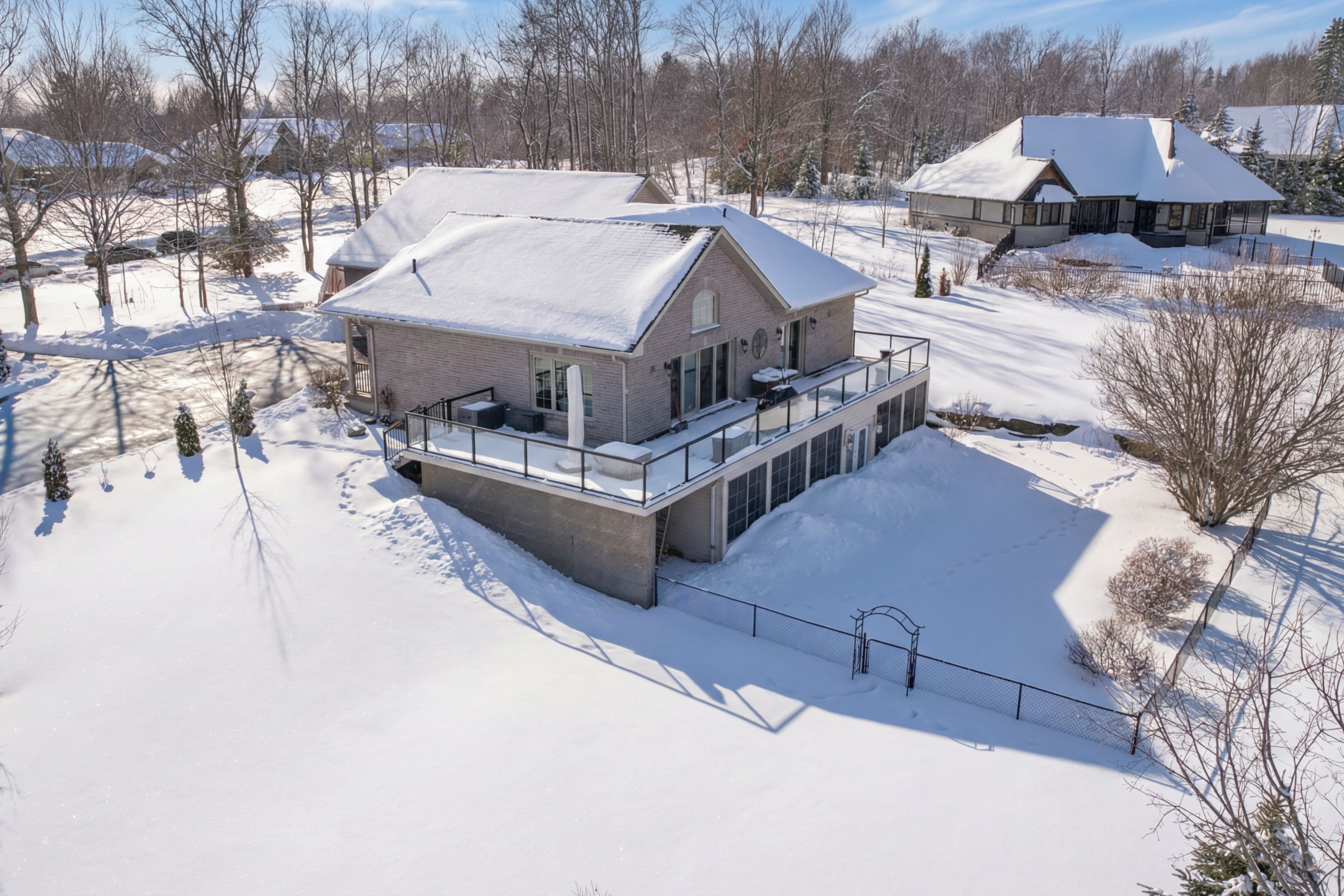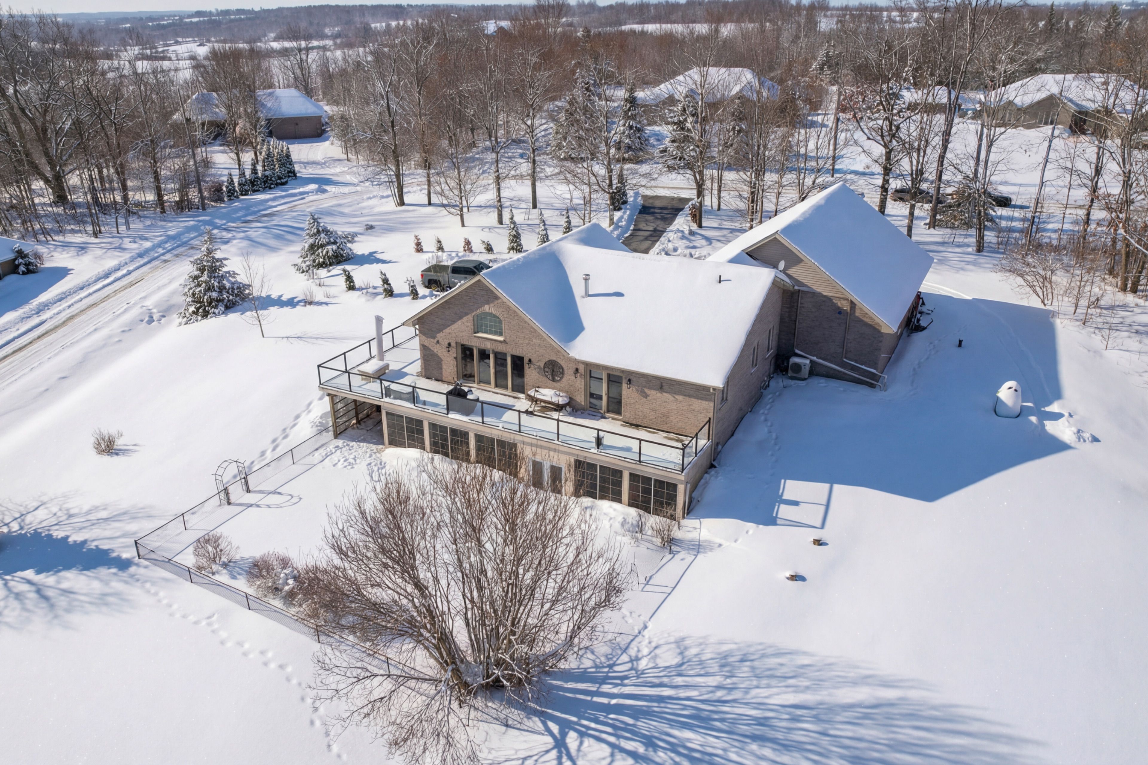 Stunning custom-built brick bungalow set on a private 1. 32-acre lot in the desirable enclave of katchewanooka court, young's point. This exceptional 3-bedroom, 3-bath executive home combines refined finishes, thoughtful design, and breathtaking countryside vistas. A spacious wrap-around deck invites outdoor living and entertaining, while large windows and vaulted ceilings bathe the open-concept main living areas in natural light and showcase long, panoramic views toward katchewanooka lake. The heart of the home is a beautifully appointed kitchen featuring custom cabinetry, granite countertops and a generous island that anchors casual dining and socializing. The open-plan living and dining areas flow seamlessly to the deck via walkout doors, creating a bright and airy entertaining space. Designed for multigenerational comfort and flexible living, the walkout lower level provides a second kitchen/wet bar, full bath, and private entrance from the spacious 3 bay garage-ideal for a guest suite, in-law accommodations, or rental potential. Ample storage, functional mudroom access, and tasteful finishes throughout add everyday convenience. Situated just moments from katchewanooka lake, 77 acres of protected conservation lands, local shops, and restaurants, and a quick 4-minute drive to the charming village of lakefield, this home offers a rare combination of serene country living and close-knit community amenities. Perfect for families or buyers seeking elegant, low-maintenance living with versatile, income- or multi-family-ready space. Schedule your private showing and experience the refined lifestyle this property delivers.