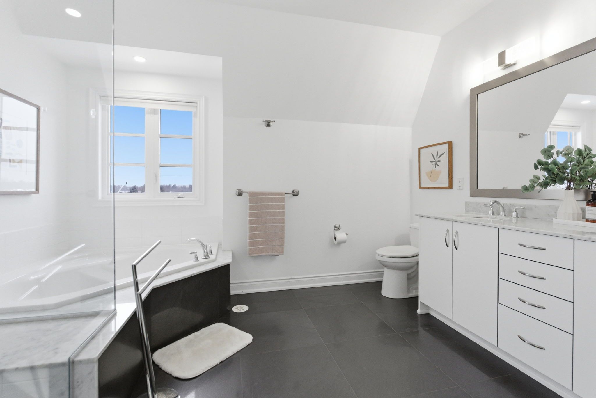 • Spa-inspired ensuite and custom walk-in closet in primary bedroom.
