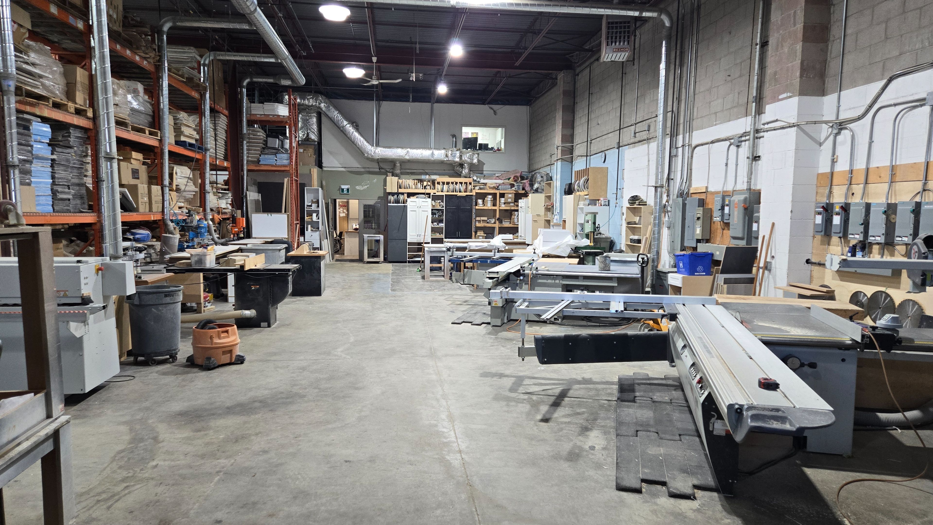 Millwork and carpentry business, 6000 sq ft + 1400 sq ft of mezzanine, fully equipped with top line of machinery and well fixtured, ready for its next owner to take over. Great effort and capital spent into the lease hold improvement, very well maintained machinery, very good size front office and retail area. 2 drive in garage doors. Prime location, directly adjacent to bronte go station. Well managed complex with fiber internet, ample surface parking and close access to the qew. Very large unobstructed shipping area. Contact listing agent for more details.