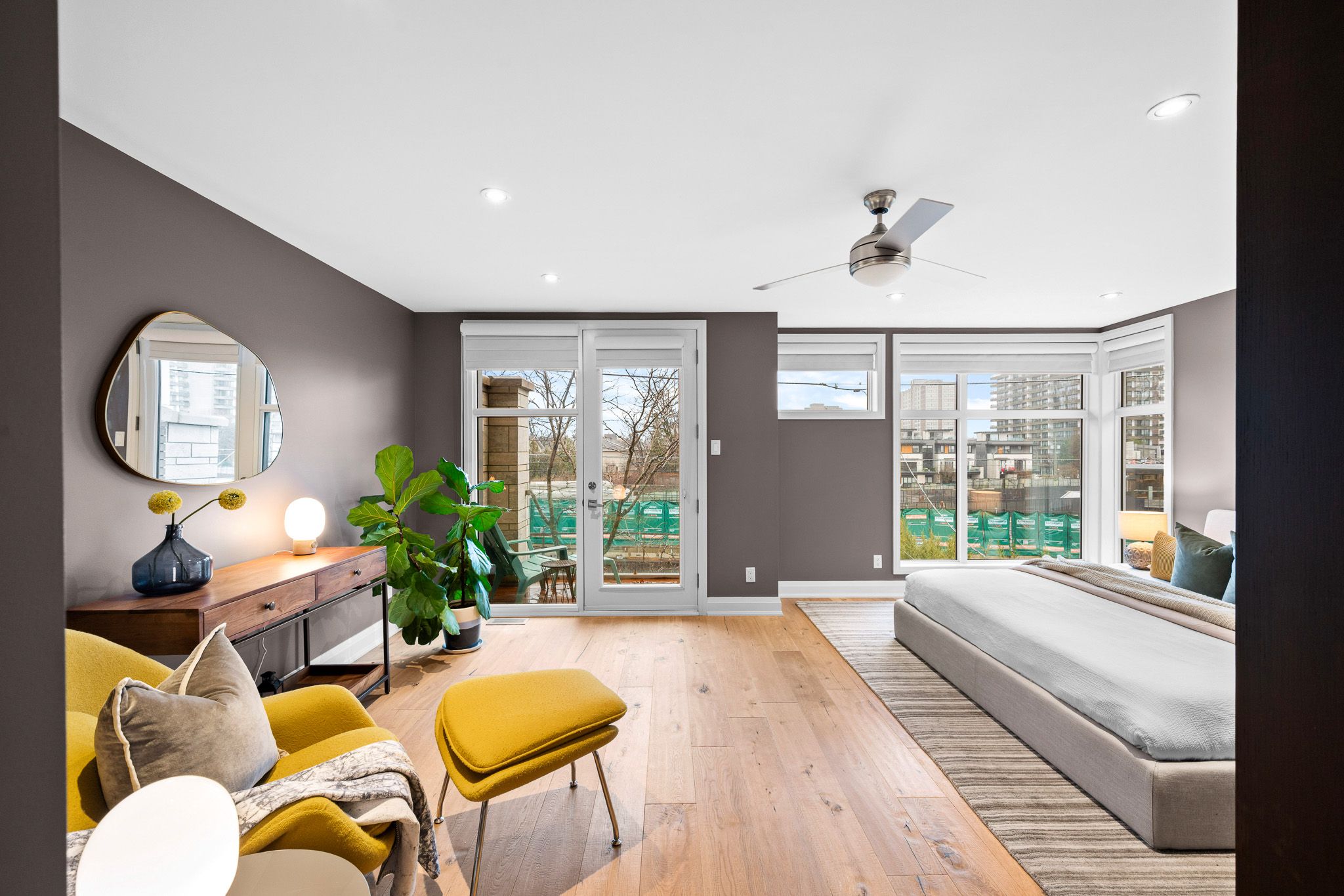 • Spacious primary suite with a private balcony and luxurious ensuite amenities.