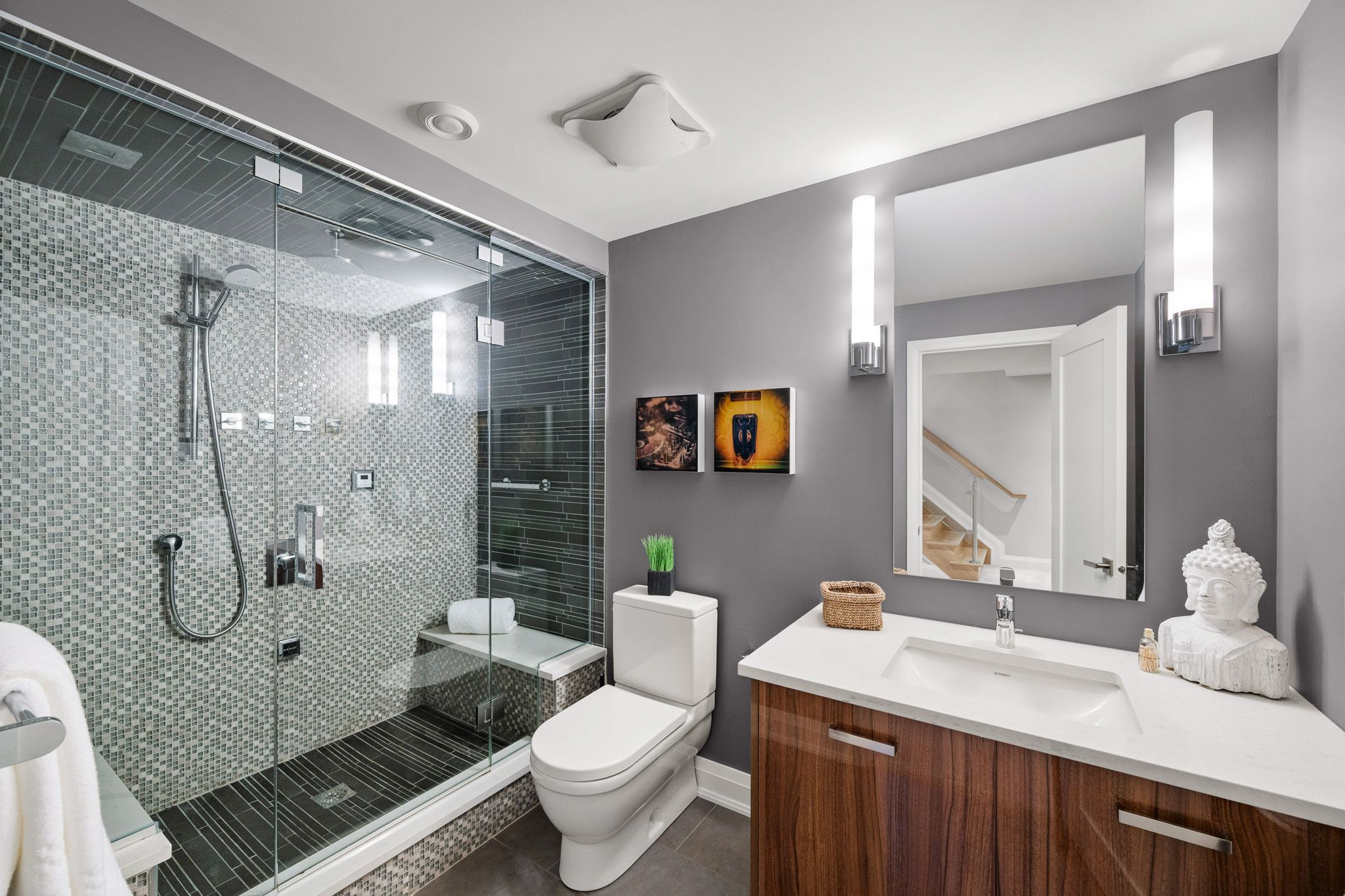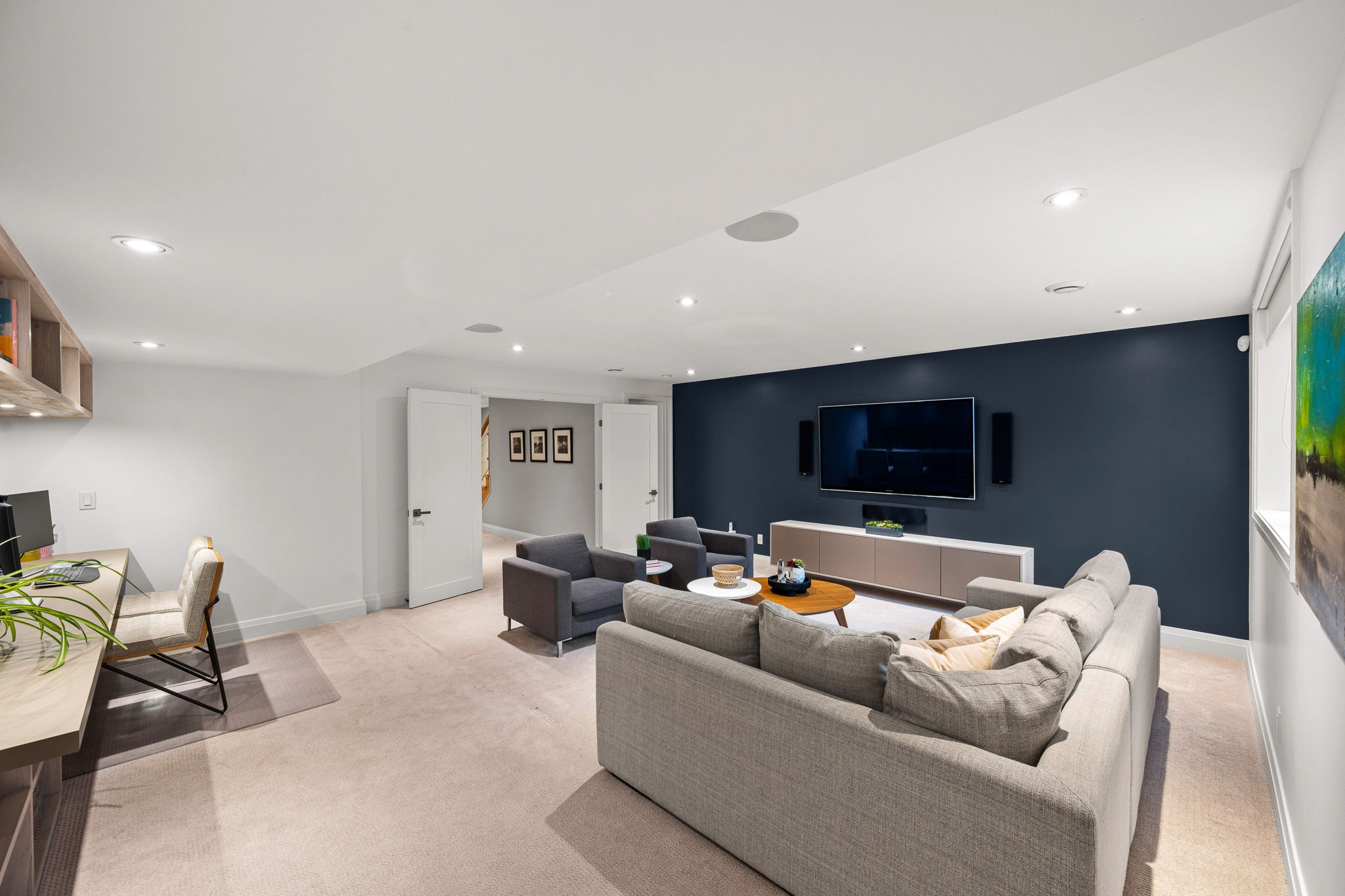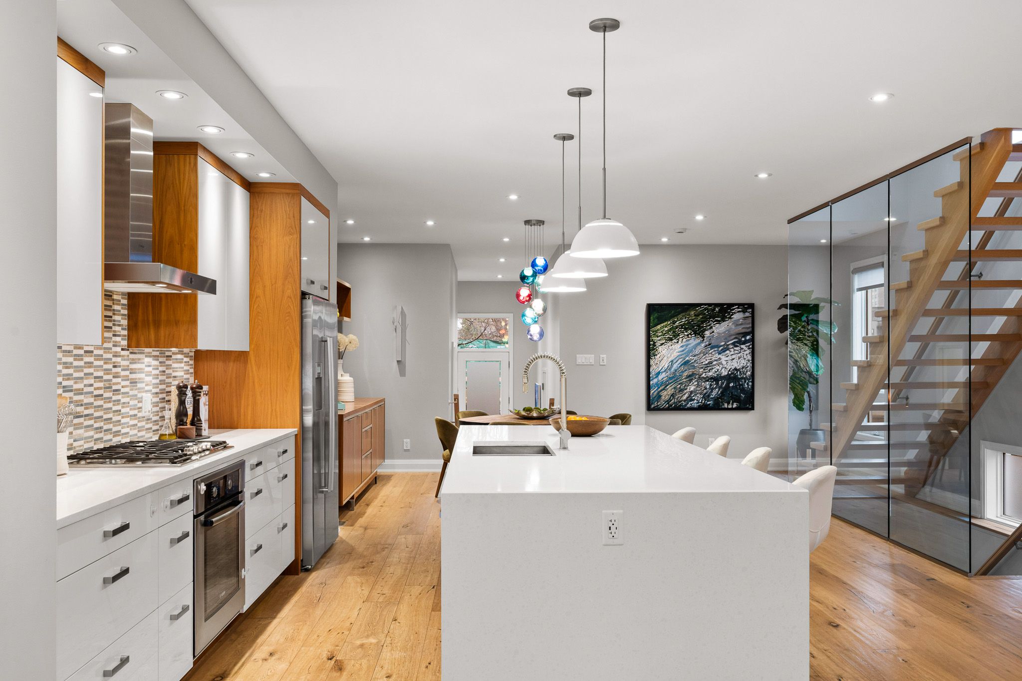 • Elegant interior with high-end finishes, skylights, and a welcoming open layout.