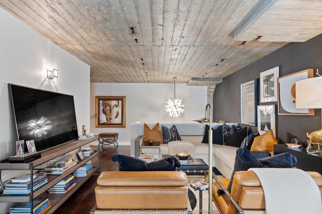 Welcome to club lofts. The condo lifestyle you have been searching for, loft living and located in prime olde walkerville; walk to all the restaurants and conveniences, waterfront and enjoy maintenance free living at its finest. This 2400 sq ft unit is magazine ready, with 2 large bedrooms, 2 baths, open l. Oft area ideal for entertaining or perhaps a home gym, so many possibilities. Main floor laundry. Ideal corner unit so you have expansive windows on two walls to take in the city views. Underground parking. Many quality upgrades and finishes, appliances remain. Rooftop viewing deck, party room. Now is the time to spoil yourself and enjoy luxury living, flexible possession.