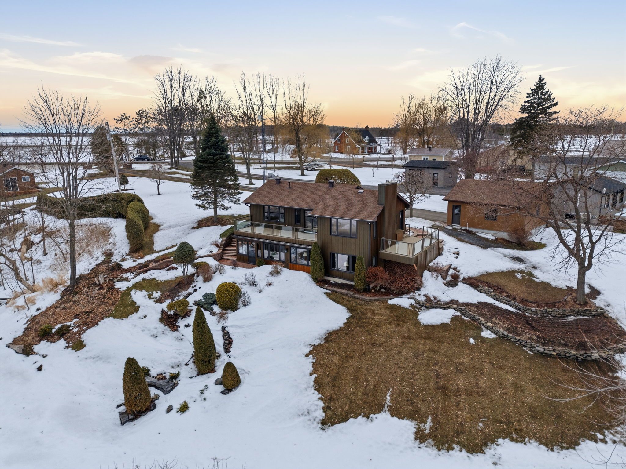 • Beautifully landscaped grounds with gardens, trees, and private boat launch.