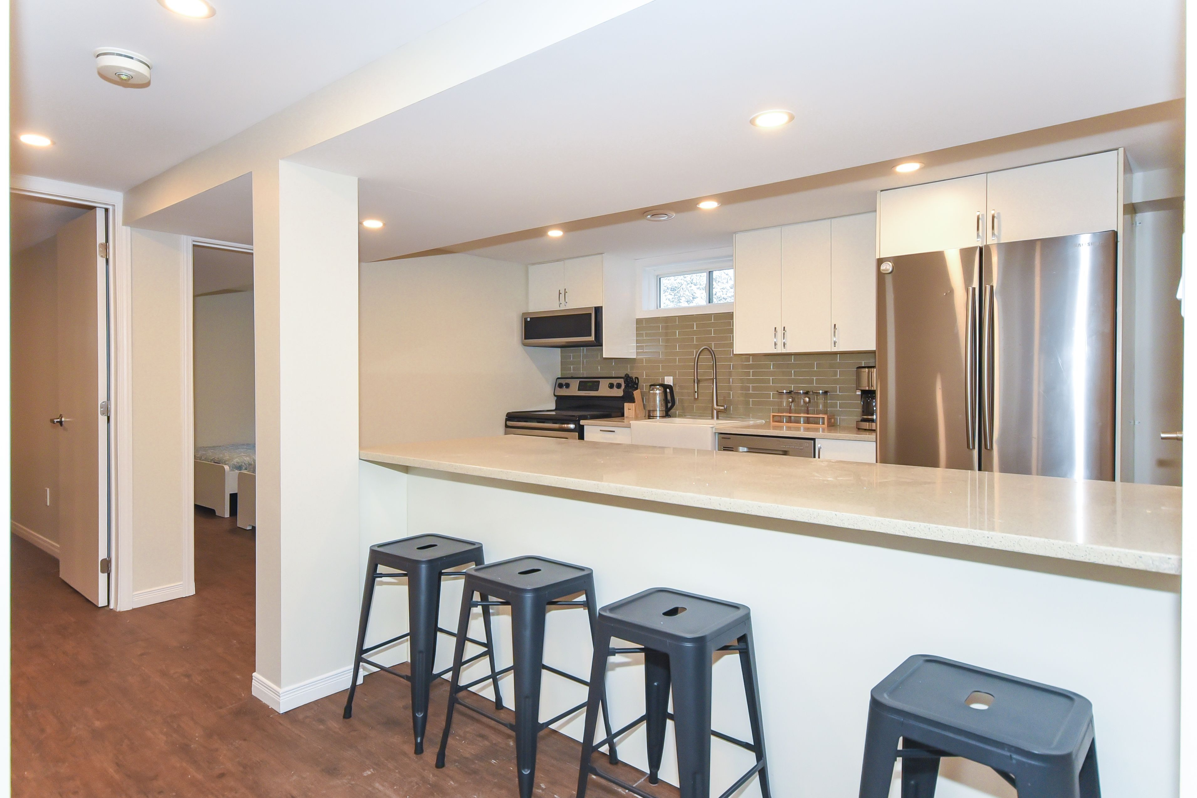 All-inclusive and fully furnished, just renovated 4 bedrooms, 2. 5 bathrooms in a modern lower level unit with open concept kitchen, quartz counter-top, ss appliances, extra large living area. Large kitchen with generous island, lots of storage, in unit laundry, modern new furniture, lots of seating area. Parking on premisses for 2 vehicles, extra large shared backyard. Walking distance to algonquin college, ikea, groceries and dining, short distance to major transit hub and 417 offering very easy commute to downtown ottawa, uottawa, carleton university, kanata and barrhaven. Extra large shared backyard.