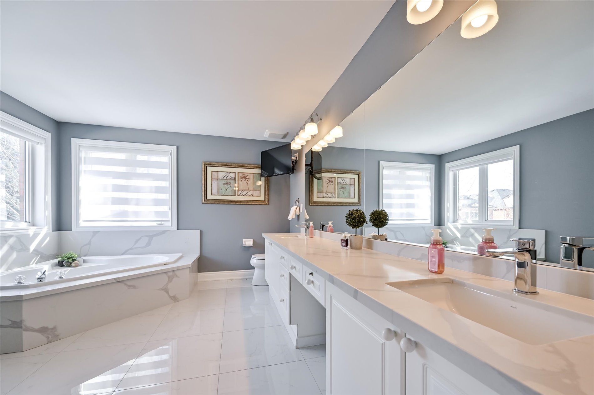 Here's your opportunity to own a magnificent home in the prestigious joshua creek community. The light-filled main floor welcomes you with a grand foyer and an open-concept layout featuring 9-foot ceilings and engineered hardwood throughout. Spacious principal rooms, a library, powder room and convenient main-floor laundry, offer an ideal blend of style and function. Formal living and dining rooms are perfect for entertaining, while the updated custom kitchen impresses with high-end finishes, stone countertops, and a generous breakfast area with walkout to the deck and pool. The adjoining family room, anchored by a cozy gas fireplace, provides the perfect space tounwind. Upstairs, the generous primary suite features large windows, a walk-in closet, and a private ensuite. Four additional spacious bedrooms, a full bath, and a semi-ensuite complete the second level. The fully finished basement offers a large recreation room, a full bathroom, and ample storage. Additional highlights include an attached double garage with inside entry and a private, sun-filled backyard ideal for outdoor enjoyment & entertaining. Conveniently located close to shopping, top-rated schools, go transit, and major highways.