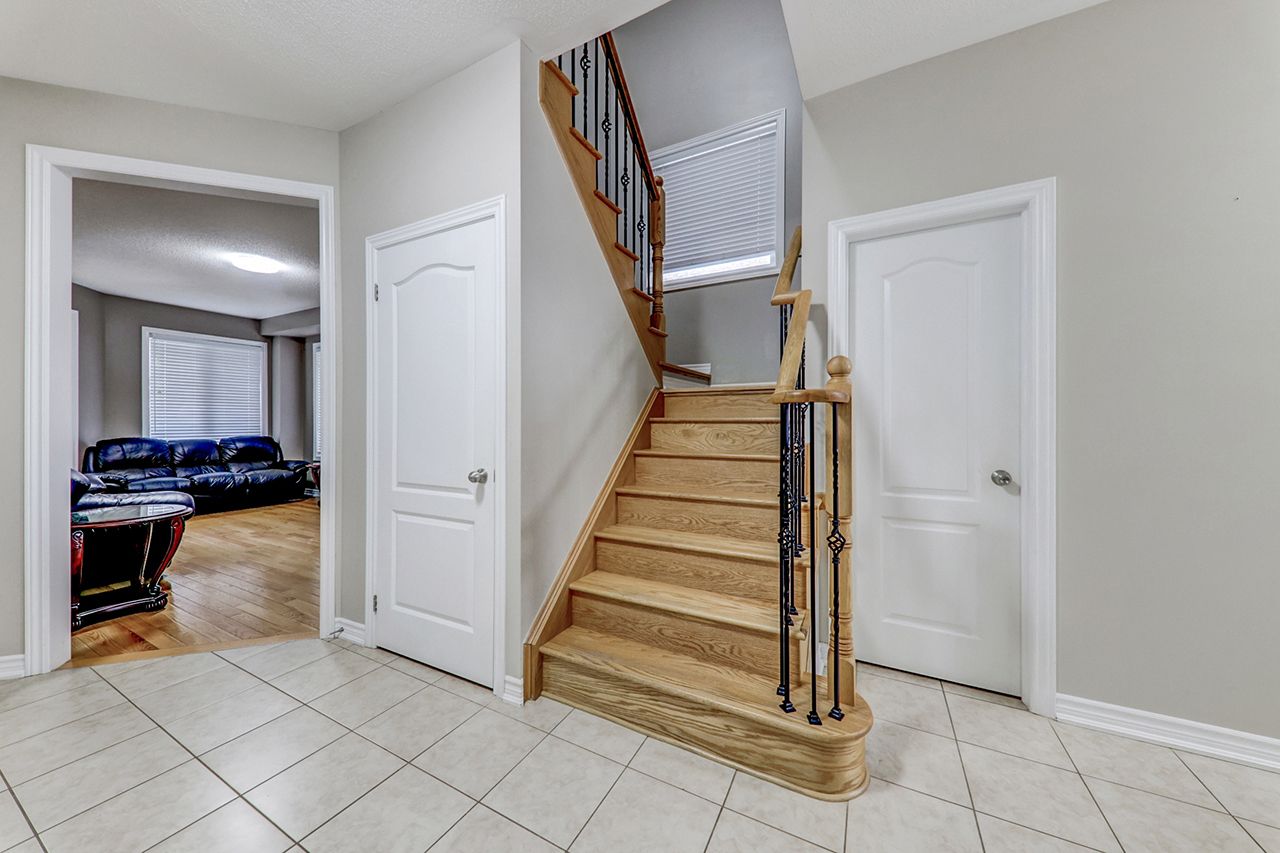 • Hardwood floors and matching oak staircase enhance interior appeal.