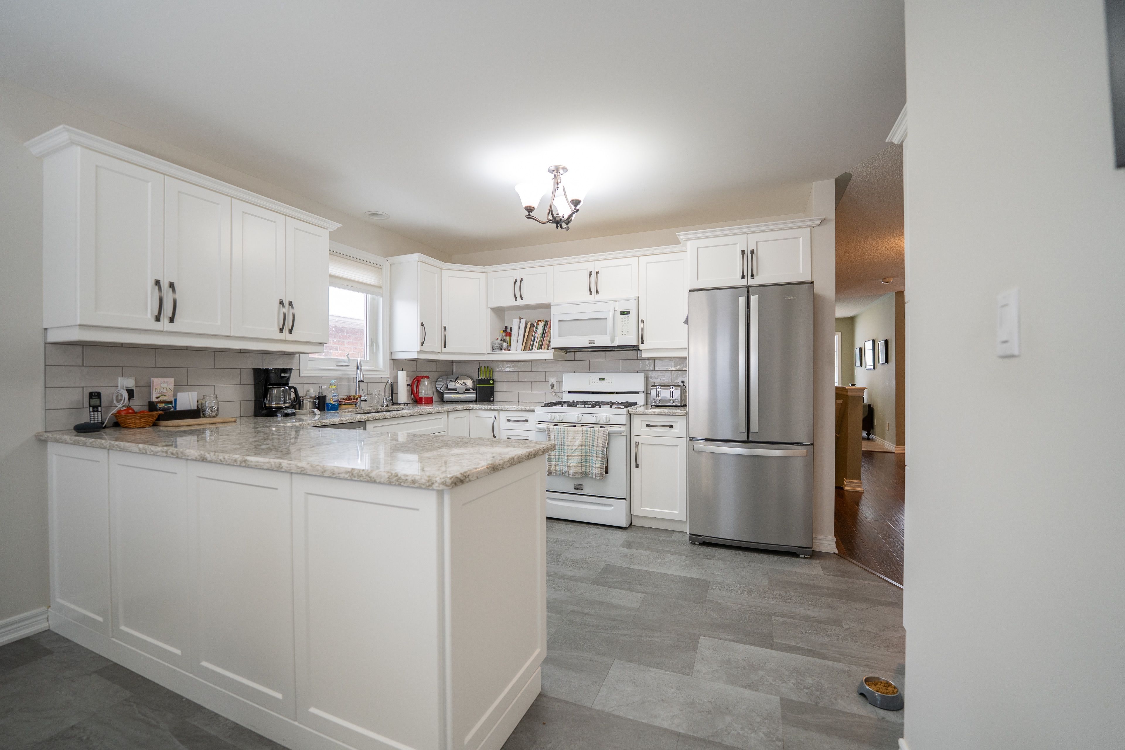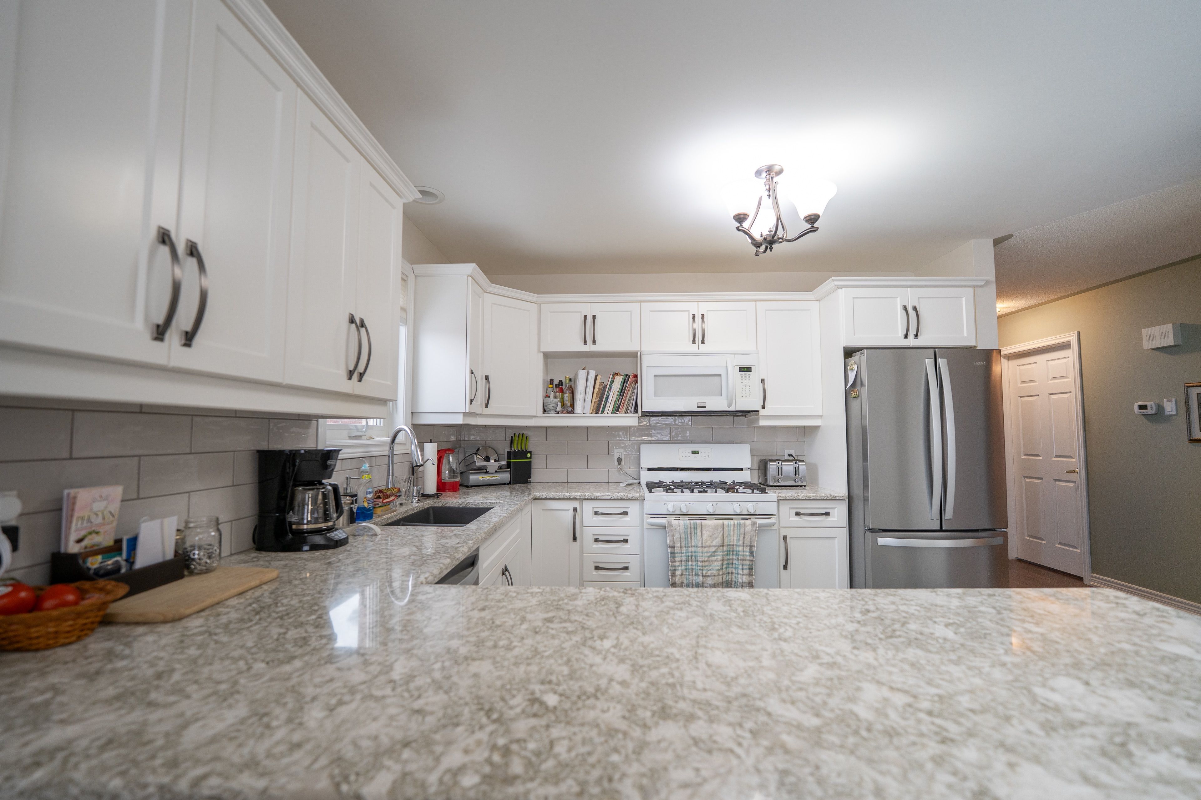 • Updated kitchen with quartz countertops and convenient storage options.
