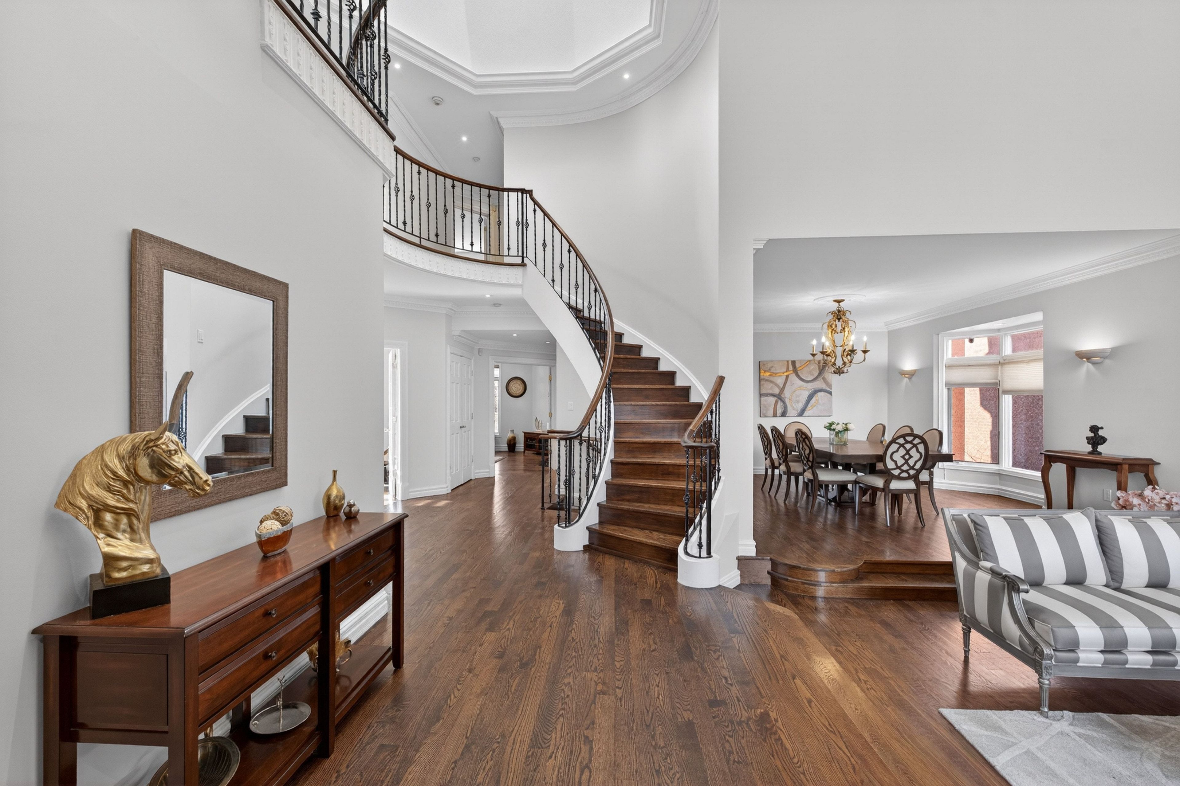 Remodelled and renovated remarkable 2-storey custom built home on a wide premium ** 56' x 133' ** lot (7,460 sq. Ft)! Offering about 5,800 sq. Ft. Of luxurious living space (4,109 sq. Ft. Above grade + professionally finished walk-out basement apartment) in coveted hillcrest ave! This upgraded and spacious residence features an elegant remodelled california style facade, magnificent living room with designer gas fireplace and natural stone mantel, bow window and soaring ceiling 18. 8 feet height! Sophistication flows through the main hallway with 26 feet height including central skylight above, granite floor and decorative niche, office, formal dining room, circular staircase, family room with a fireplace, a mudroom with access to garage and the side! Gourmet kitchen and large sized breakfast walk-out to a big upgraded deck and lovely backyard ideal for family gathering and entertaining!! 2nd floor includes breathtaking master bedroom with cathedral ceiling, walk-in closet, his & hers closets, make-up desk and 6-pc ensuite! Other three bedrooms with two full baths and a comfortable laundry room! Bright and spacious sun-filled basement fully renovated in 2017 >> high ceiling and above grade windows, large separate apartment with 2 bedrooms, 3-pc bath, full kitchen, living rm, and family room! While the basement has potential income or use as a basement apartment, it can be easily converted for use as a great entertainment center for family! Convenient location with one minute to ttc station, short walk to yonge street and all other amenities. Steps away from best schools: earl haig s. S, hollywood p. S, bayview m. S!