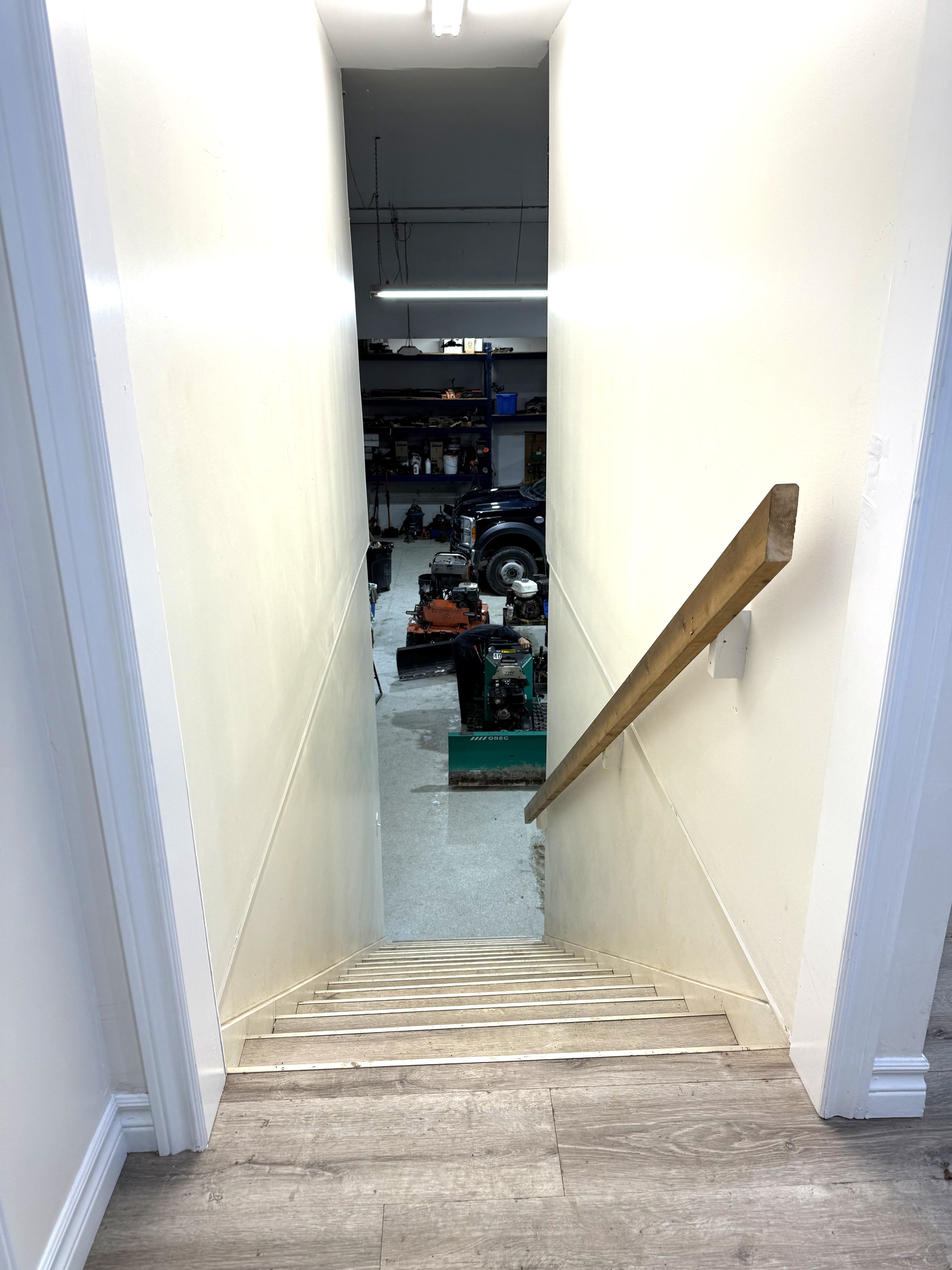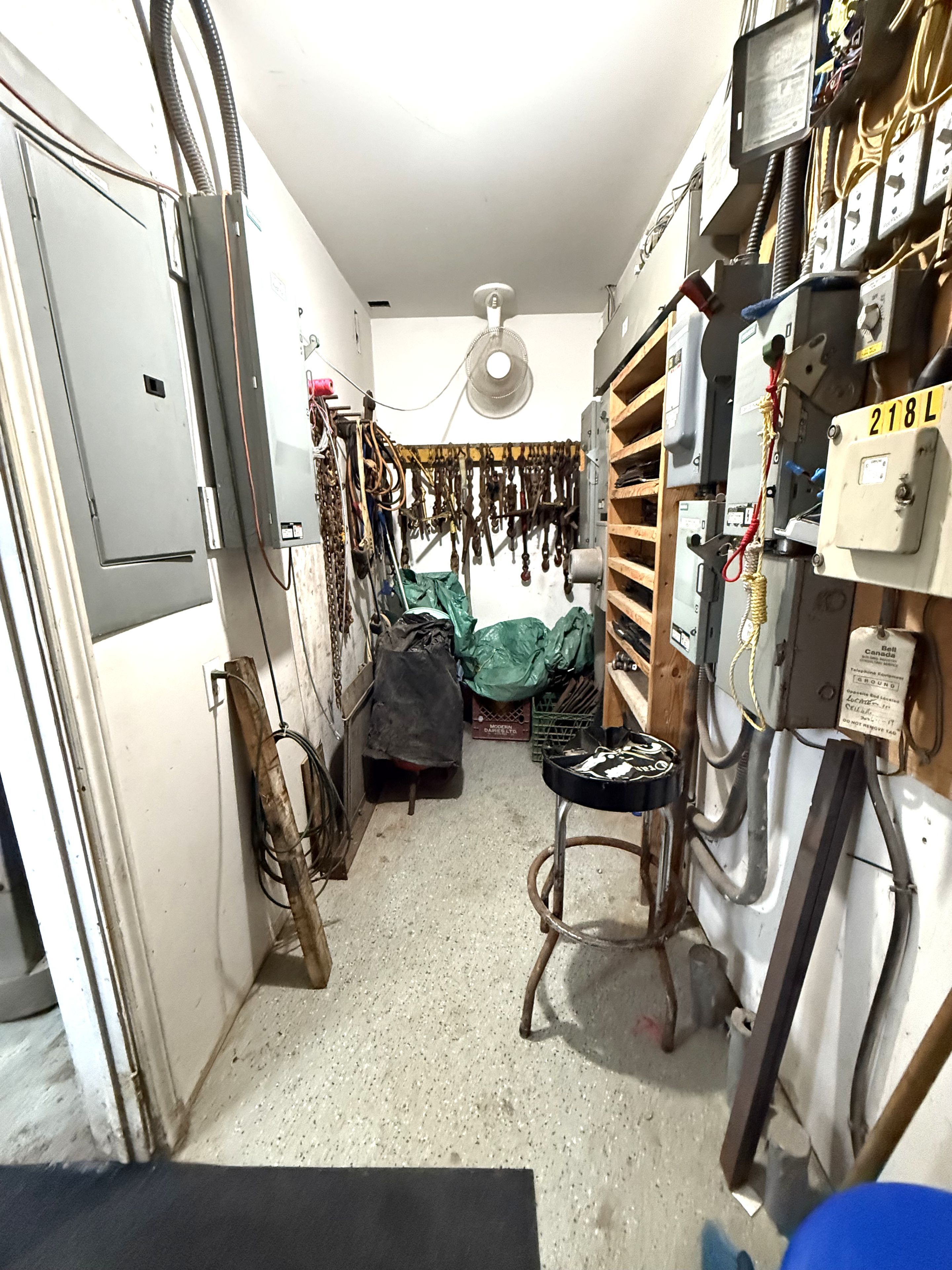 Building size: 3,200 sq ft main floor + 1,040 sq ft mezzanine (860 sq ft finished). Parking: gravel lot accommodates 8 vehicles at front; additional space on west and east sides. Office area (770 sq ft)- reception desk and waiting area at front entry- 2 offices, file area, 2-piece washroom- carpet floors, painted drywall walls, 9' ceilings, recessed led lighting- ceramic tile in washroom- in-floor heating and a/c, staff kitchen- concrete floors, led lighting- in-floor heating- access from office area or shop. Shop (2,430 sq ft)- two bays with three roll-up doors: 2 at 12' 14', 1 at 14' 14' concrete floors, 18' ceilings, hanging led lighting- in-floor heating with back-up overhead gas furnace- includes: office (se corner), parts room, 2-piece washroom, electrical room- washroom finished with ceramic tile, 8' ceilings, led lighting. Air exchanger, ac, oil grid separator, alarm system, in floor boiler system. Mezzanine (1,040 sq ft)**finished (860 sq ft):**- office (200 sq ft): carpet, painted drywall, 7' ceilings, led lighting- 3-piece washroom and boardroom (660 sq ft): industrial vinyl flooring, 7'ceilings, recessed led lighting. Unfinished (180 sq ft): - storage access: front parking lot entry to office and shop; interior stairs to mezzanine. Security, fire/smoke alarm systems, , exterior lighting.