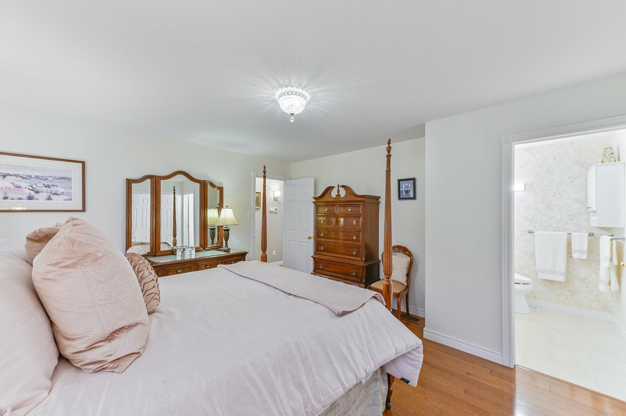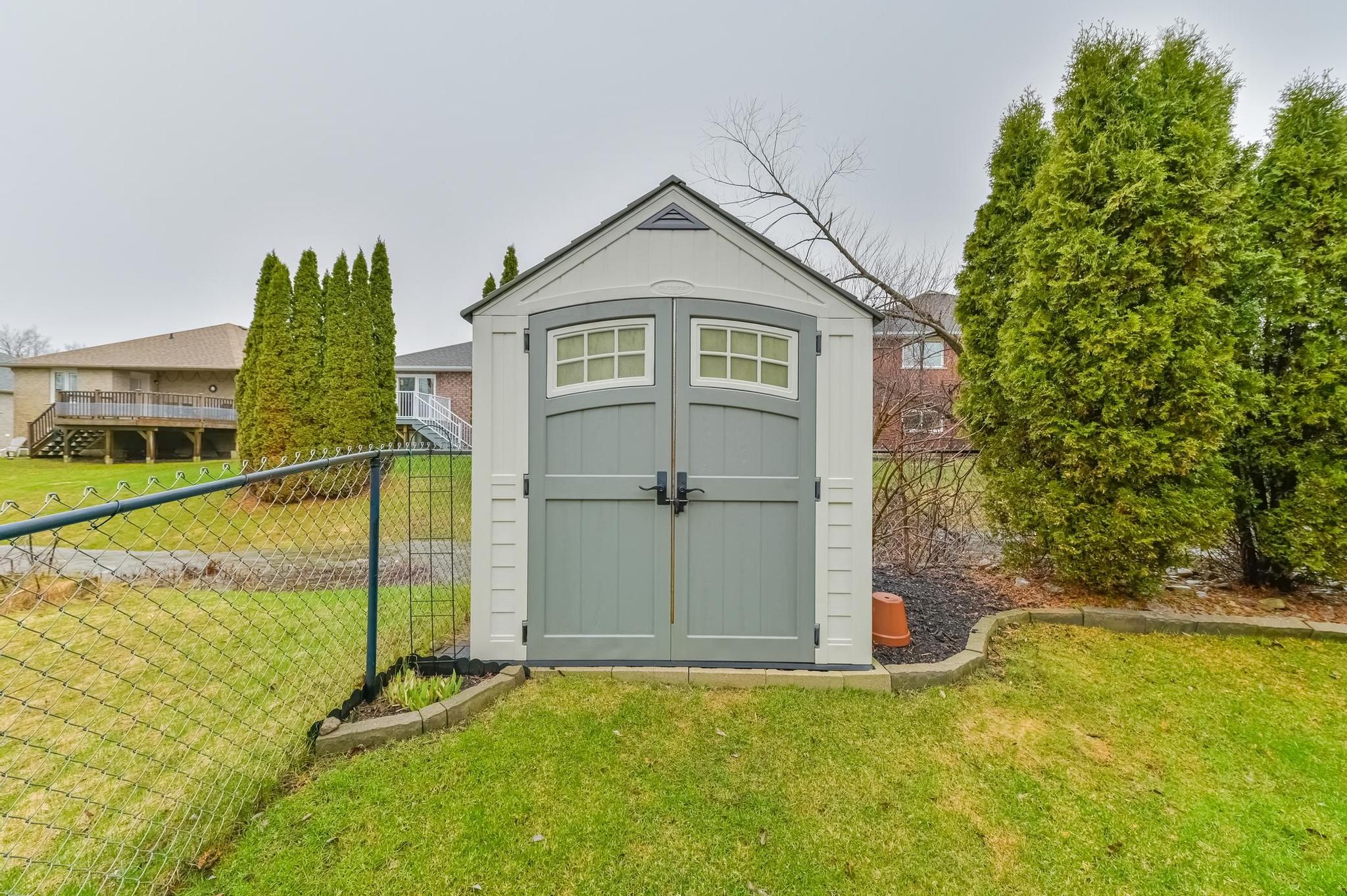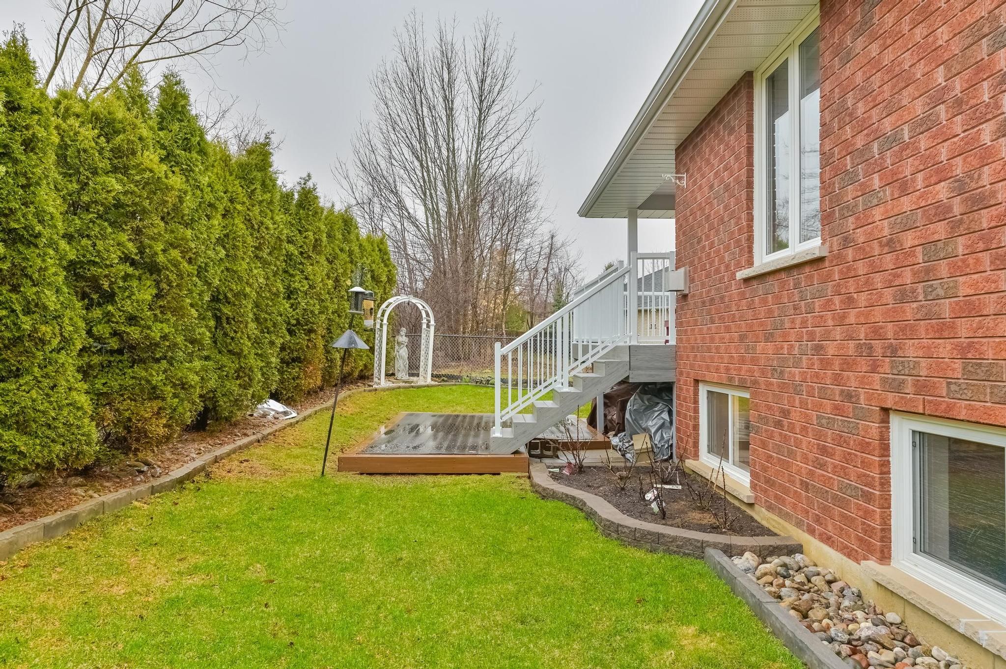 Beautifully appointed 2+2 bedroom raised bungalow in one of the north end's most desirable, family-friendly communities. Surrounded by mature trees, walking trails, and greenspace, this location offers quiet, low-traffic living just minutes to schools, shopping, and trent university. This well-maintained home features a bright, oversized windows, and quality finishes throughout. The kitchen is thoughtfully designed with upgraded cabinetry, granite countertops, under-cabinet lighting, backsplash, stainless steel appliances. The main level offers a spacious primary bedroom with a well-appointed ensuite, an additional bedroom, full bathroom, the fully finished lower level provides excellent additional living space with a large rec room with a gas fireplace, two bedrooms, a full bathroom, and ample storage-perfect for guests or multi-generational living. Step outside to a private backyard retreat with an expansive deck, complete with added lighting and power for entertaining. Backing onto mature trees and a peaceful creek setting, this property offers a rare sense of privacy and connection to nature. Additional features include an attached double garage, stamped concrete entry, natural gas bbq hookup, 200 amp service with generlink, and extensive landscaping. A turn-key home offering comfort, quality, and an exceptional north end lifestyle. Security system monitored by trent security, new main floor hardwood 2022, new furnace 2022 ,new ac 2022,upgraded insulation 2023