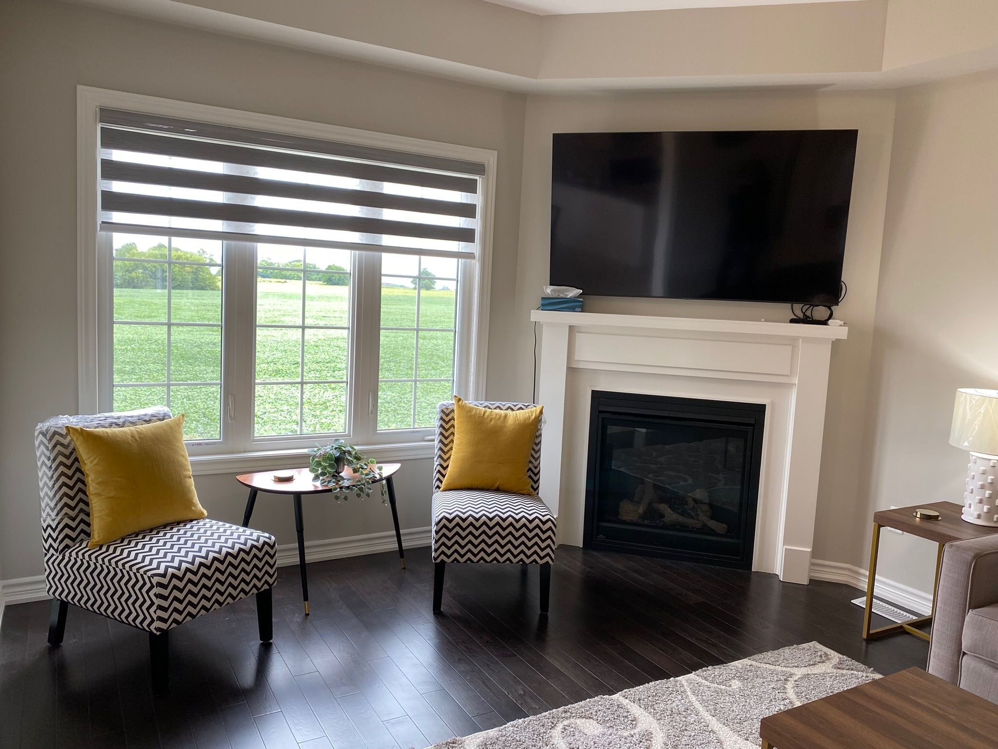 • Bright open concept with a gas fireplace for cozy evenings.