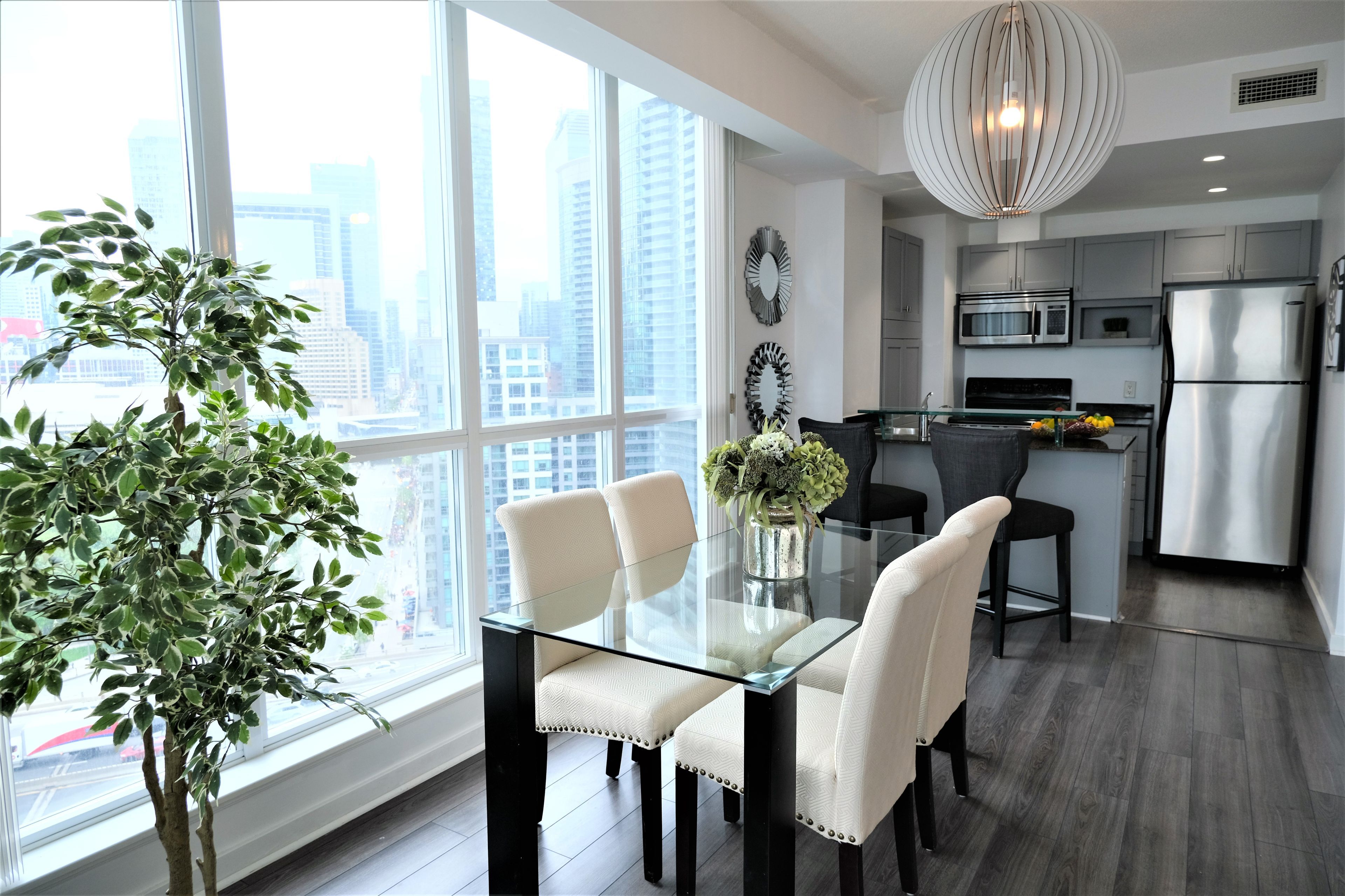 • Luxury corner suite with stunning lake and skyline views.