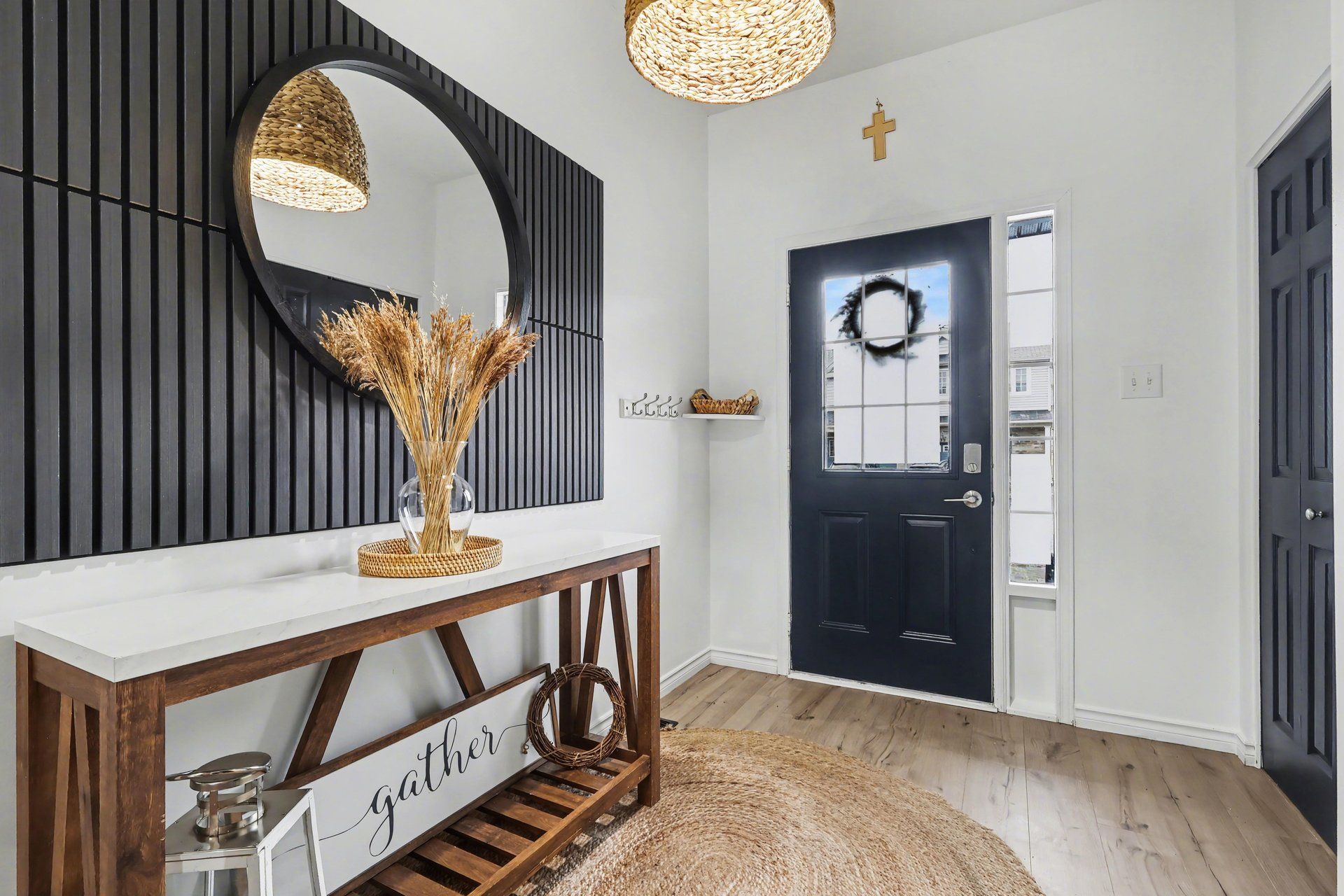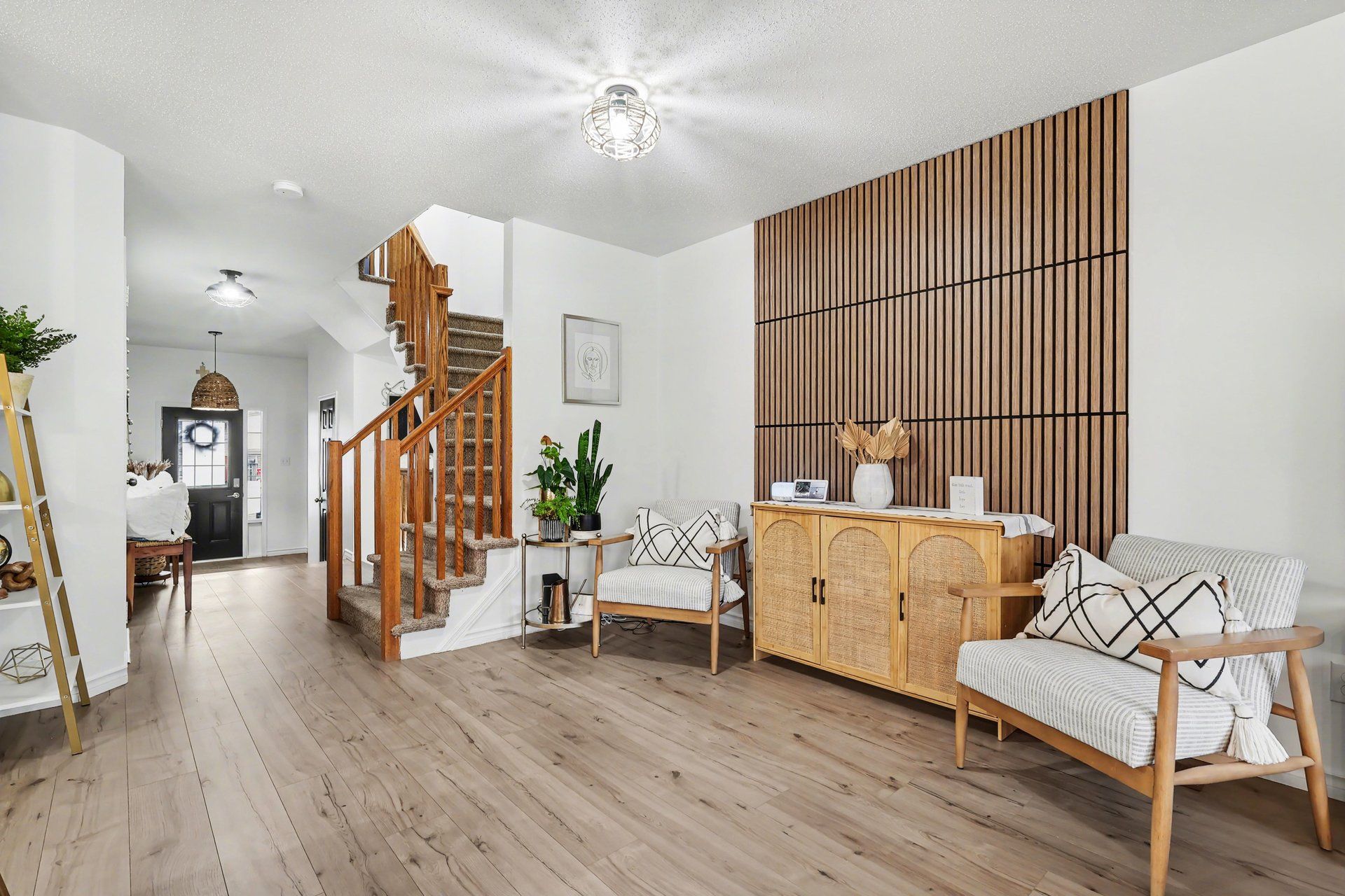 Welcome to 218 rolling meadow crescent. This stunning end-unit townhome in bradley estates offers 3 bedrooms, 3 bathrooms, and over $45,000 in thoughtful upgrades on a quiet street in sought-after chapel hill south. Step inside to a bright, open-concept main floor designed for everyday living and entertaining. The kitchen is a standout with quartz countertops, a farmhouse sink, eat-in island, and plenty of cabinetry, all flooded with natural light from large windows and a patio door leading to your private backyard with deck and fencing. Upstairs, the spacious primary retreat features a walk-in closet and a beautifully updated ensuite with glass shower and modern finishes. Two additional bedrooms and a full bathroom complete the level. The fully finished basement adds even more living space with a cozy fireplace, perfect for movie nights or hosting friends and family. Major updates include roof (2023), stone driveway (2024), flooring throughout (2022), lighting and bathroom updates (2022), fresh paint (2022 with recent touch-ups), shiplap feature wall (2024), acoustic accent walls (2026), and exterior wood columns (2025). Just minutes to schools, shopping, transit, and trails including goldfinch park and mer bleue bog. The perfect blend of comfort, style, and location. Rec room photo virtually staged.