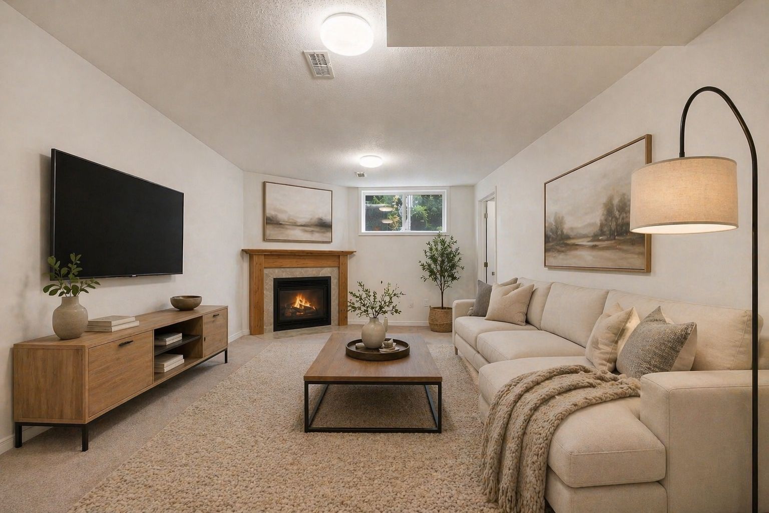 • Fully finished basement featuring a cozy fireplace for movie nights.
