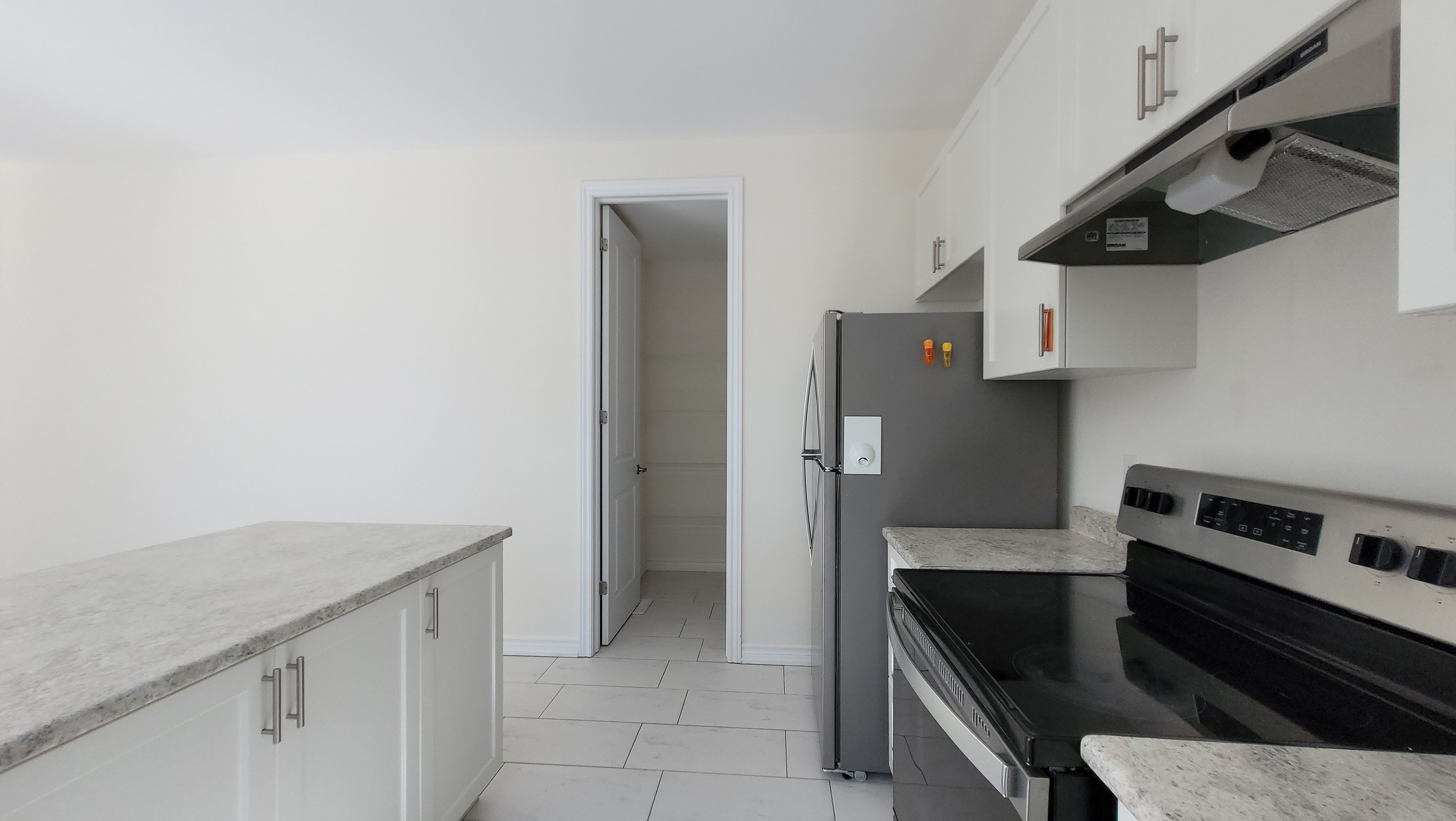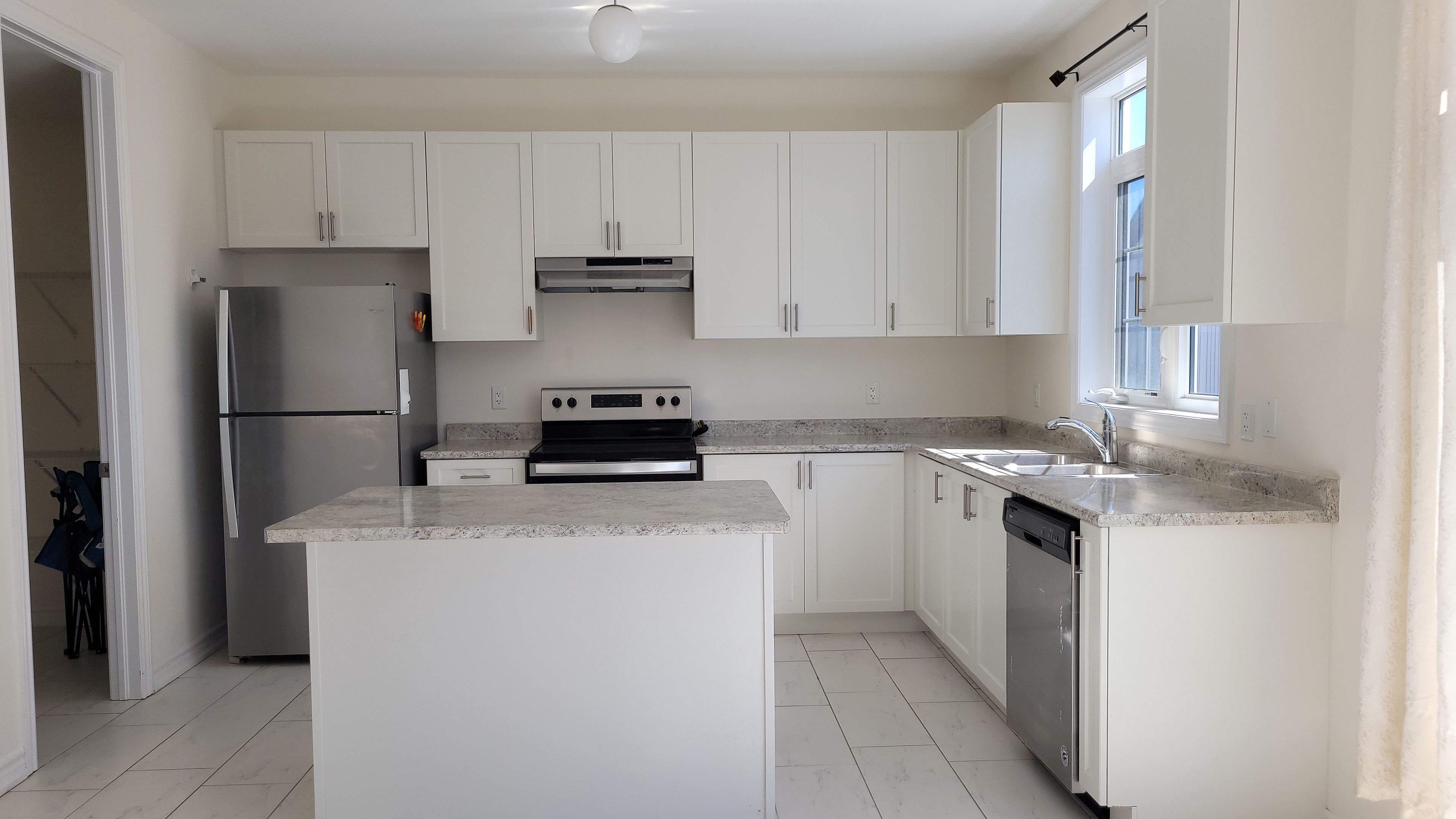 • Eat-in kitchen features a large island and oversized pantry for storage.