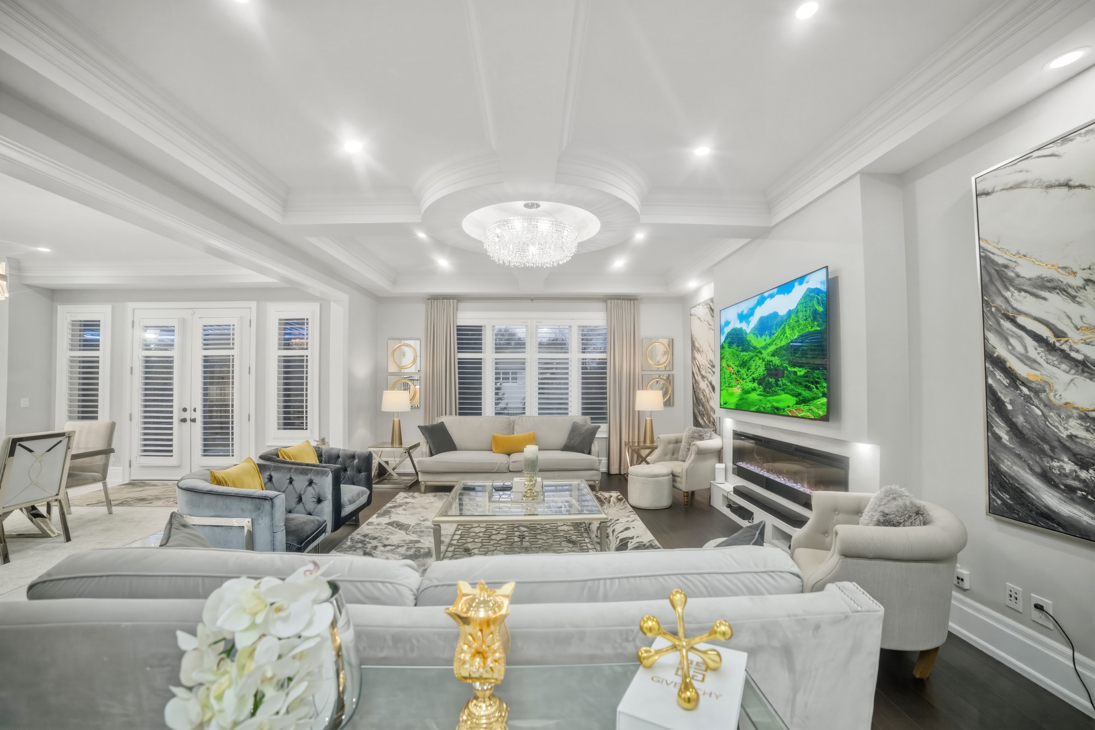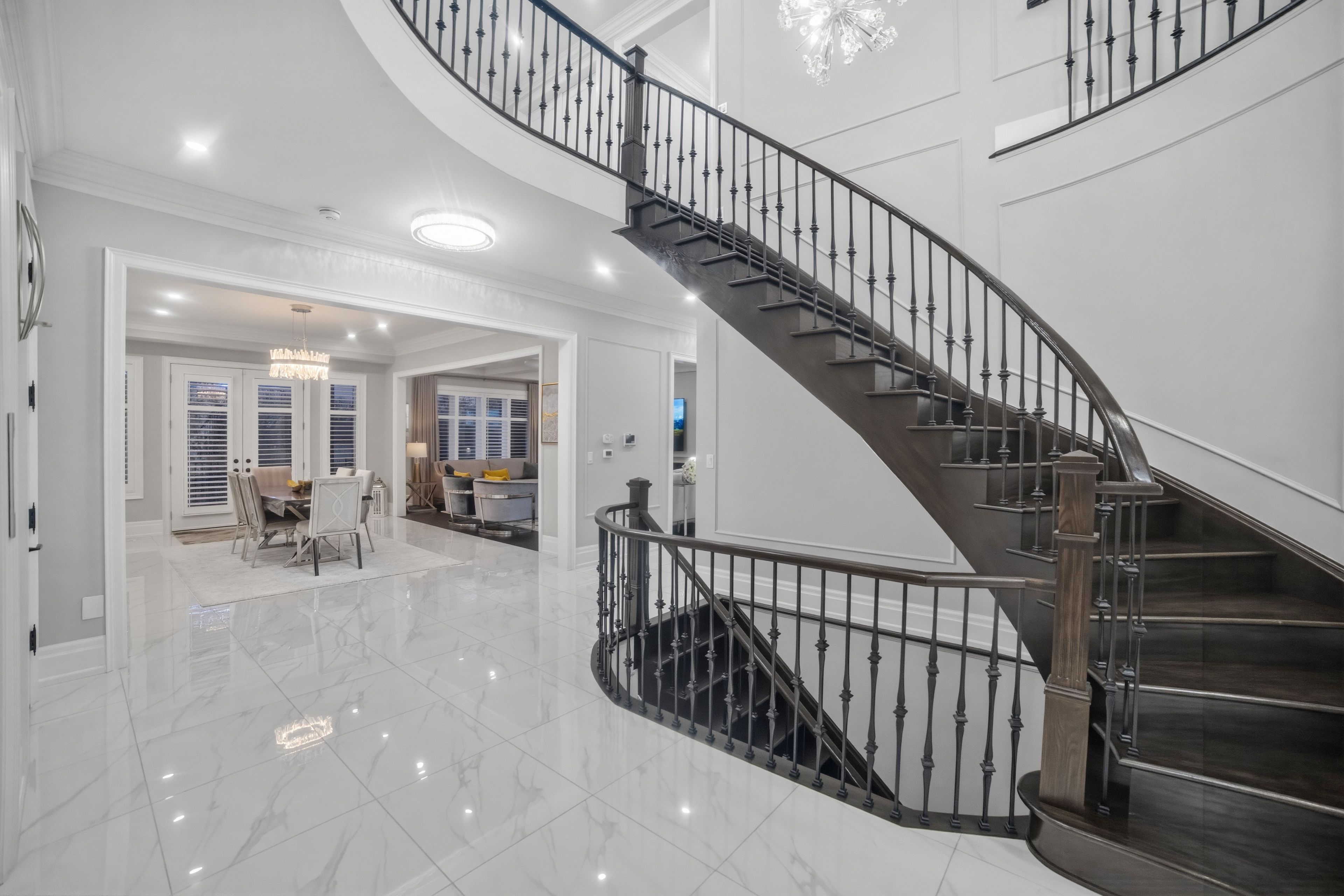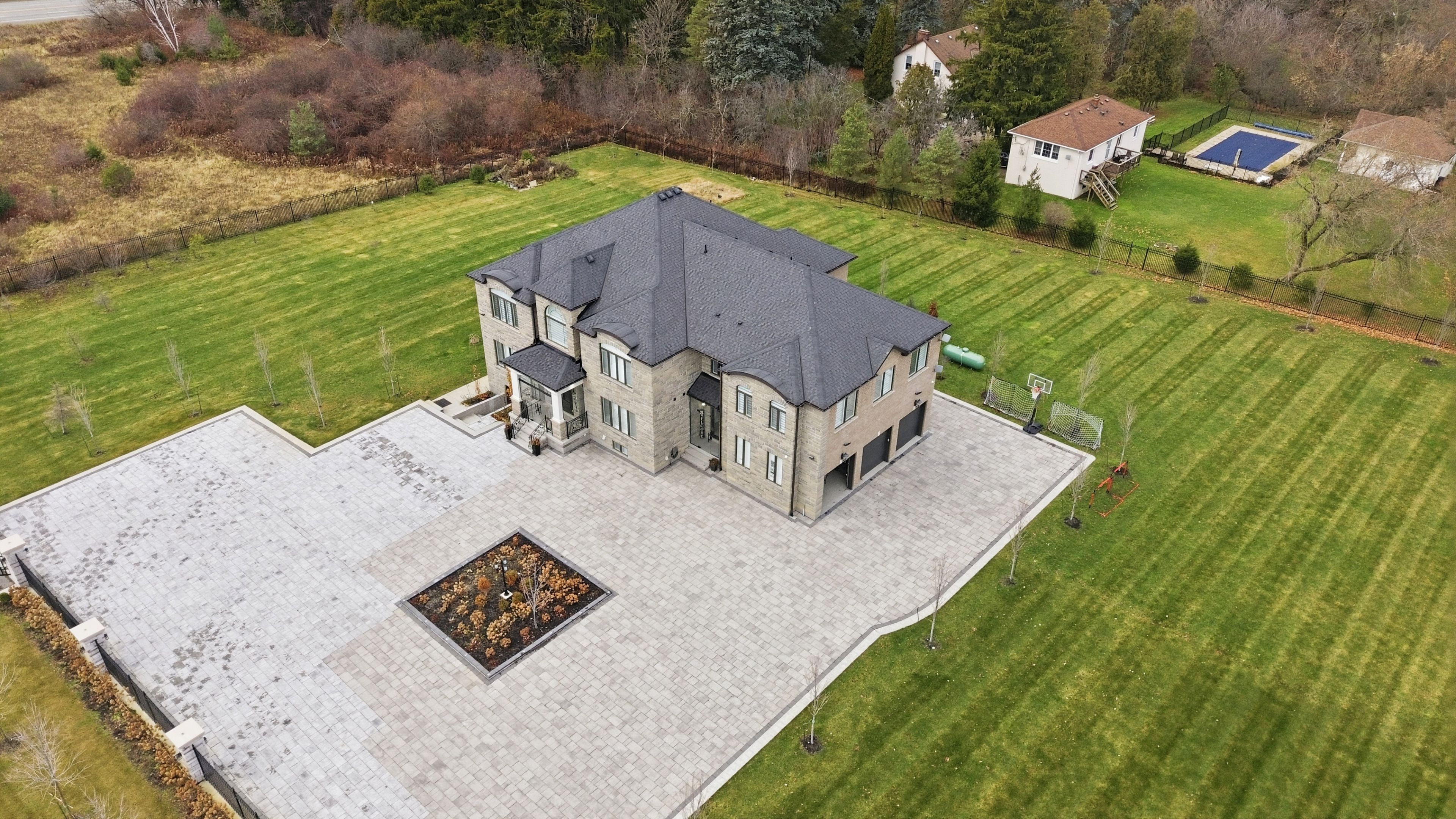 Experience luxury living in this stunning custom-built estate offering over 8,500 sq ft on a premium 1. 70-acre lot in prime maple. Designed for both grand entertaining and family comfort, the home features a circular interlocked driveway with parking for up to 30 cars, two automatic gates, security system, and beautifully landscaped grounds with lighting, mature trees, and a sprinkler system-creating a private, resort-like setting with lush green open space. The home offers 6+3 bedrooms and 6+2 bathrooms, including a main-floor large size ensuite ideal for extended family or home office use. The main suite features a spacious layout with a private sitting area. Interior finishes include 10 ft ceilings, engineered hardwood flooring, quartz countertops, custom cabinetry, and elegant feature ceilings with designer lighting. Professionally finished basement with 2 full kitchens with islands, 3 bedrooms, 2 full bathrooms, and 2 separate walk-up entrances-perfect for in-law suites. Additional features include 3 oversized garages with epoxy floors, 2 laundry rooms, and a large covered patio with tv and led lighting, outside property ideal for entertaining up to 200 guests. Around $1m spend on landscaping and upgrades. A rare opportunity offering luxury, privacy, and exceptional space for large families.