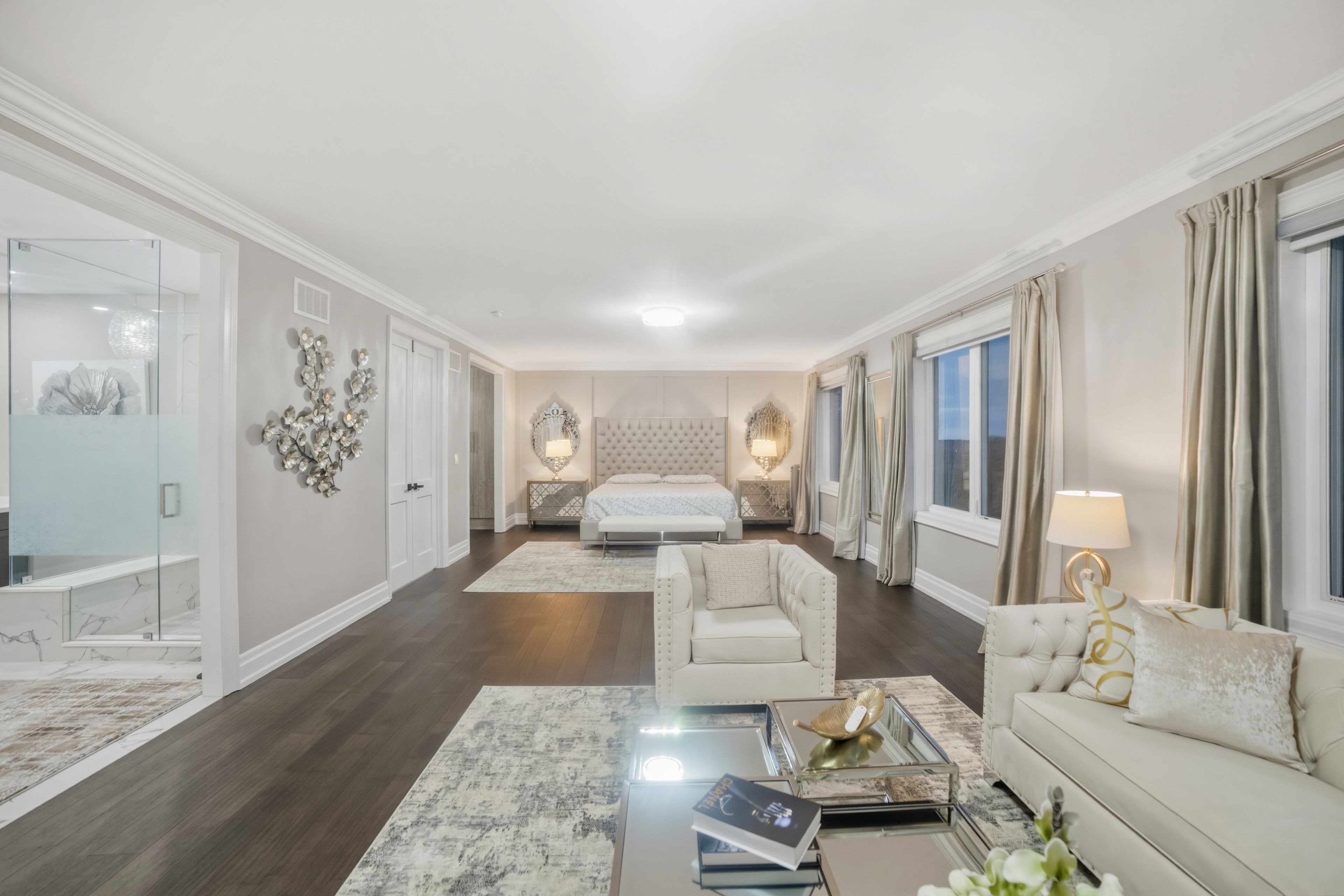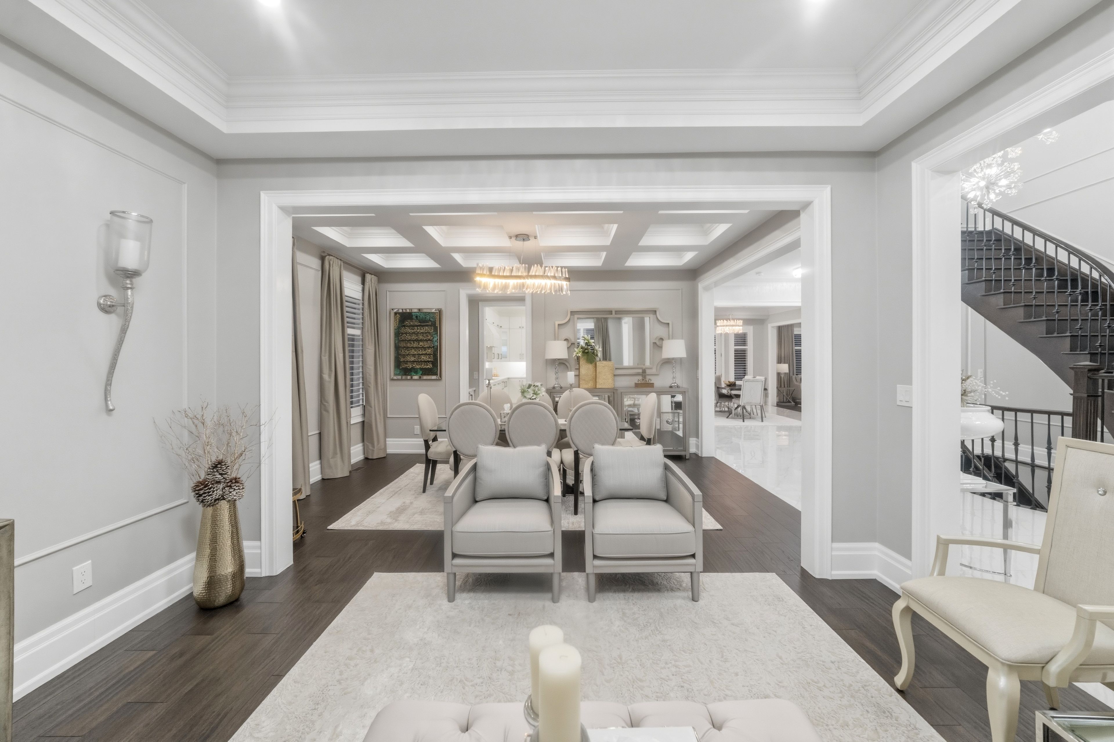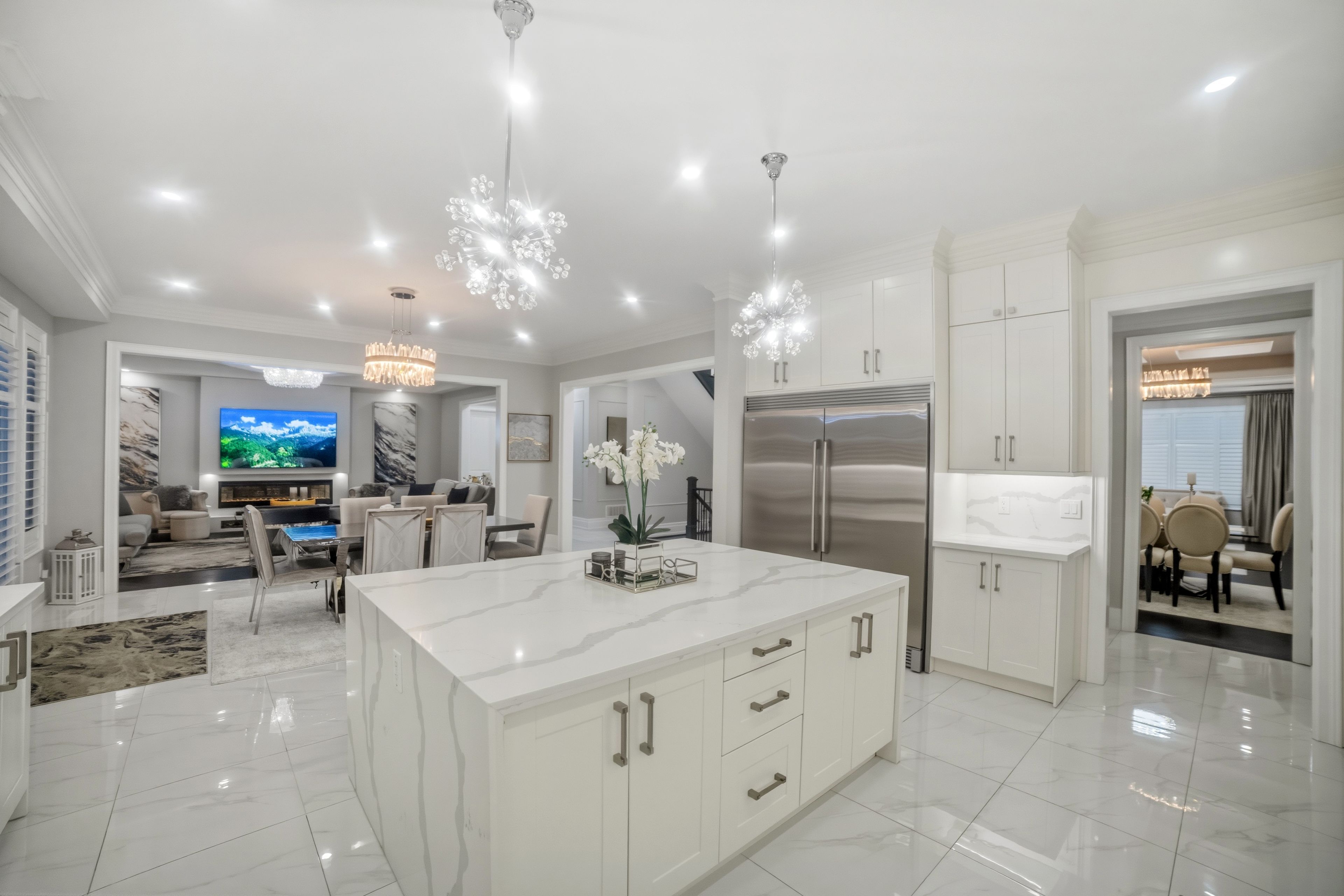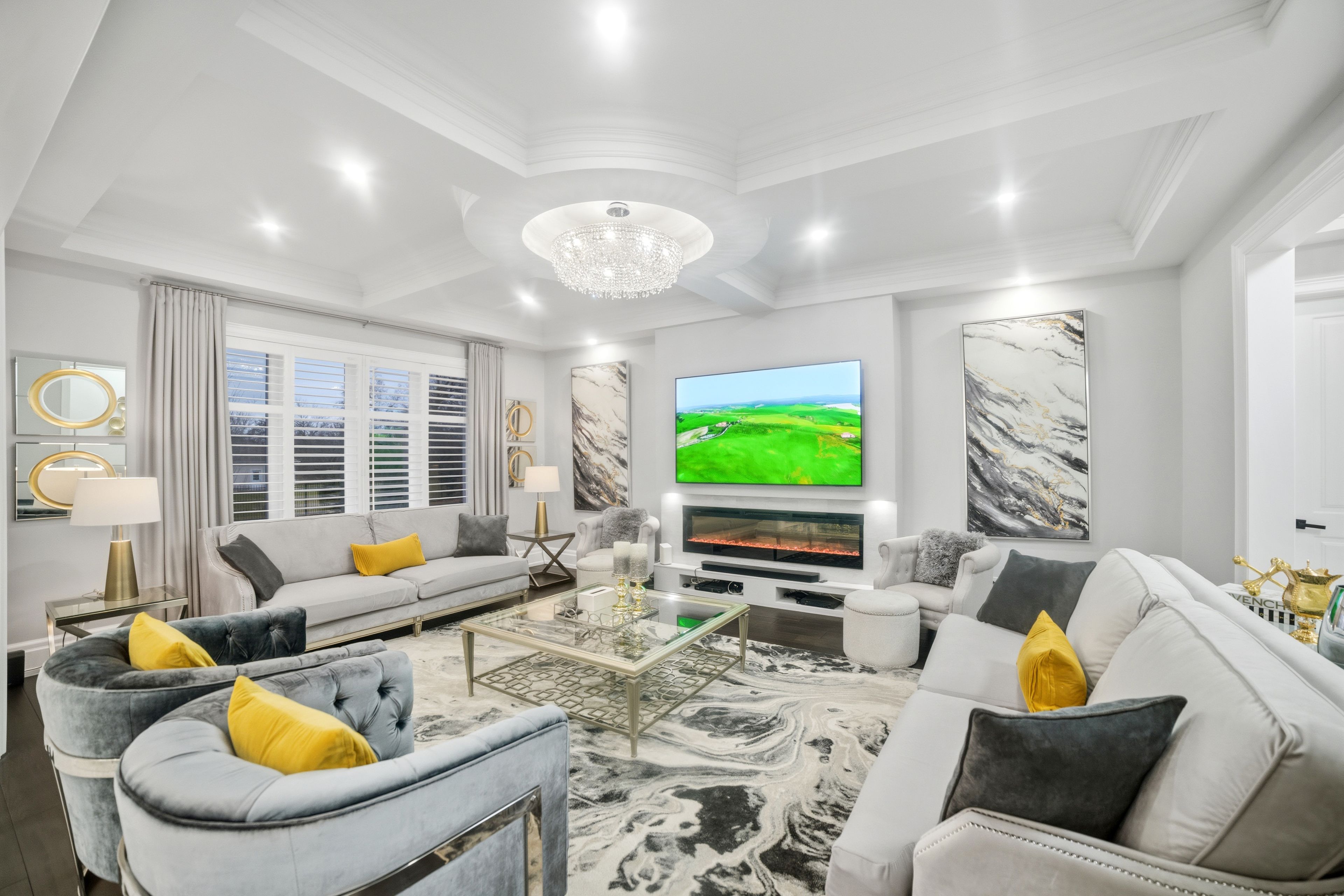 Experience luxury living in this stunning custom-built estate offering over 8,500 sq ft on a premium 1. 70-acre lot in prime maple. Designed for both grand entertaining and family comfort, the home features a circular interlocked driveway with parking for up to 30 cars, two automatic gates, security system, and beautifully landscaped grounds with lighting, mature trees, and a sprinkler system-creating a private, resort-like setting with lush green open space. The home offers 6+3 bedrooms and 6+2 bathrooms, including a main-floor large size ensuite ideal for extended family or home office use. The main suite features a spacious layout with a private sitting area. Interior finishes include 10 ft ceilings, engineered hardwood flooring, quartz countertops, custom cabinetry, and elegant feature ceilings with designer lighting. Professionally finished basement with 2 full kitchens with islands, 3 bedrooms, 2 full bathrooms, and 2 separate walk-up entrances-perfect for in-law suites. Additional features include 3 oversized garages with epoxy floors, 2 laundry rooms, and a large covered patio with tv and led lighting, outside property ideal for entertaining up to 200 guests. Around $1m spend on landscaping and upgrades. A rare opportunity offering luxury, privacy, and exceptional space for large families.