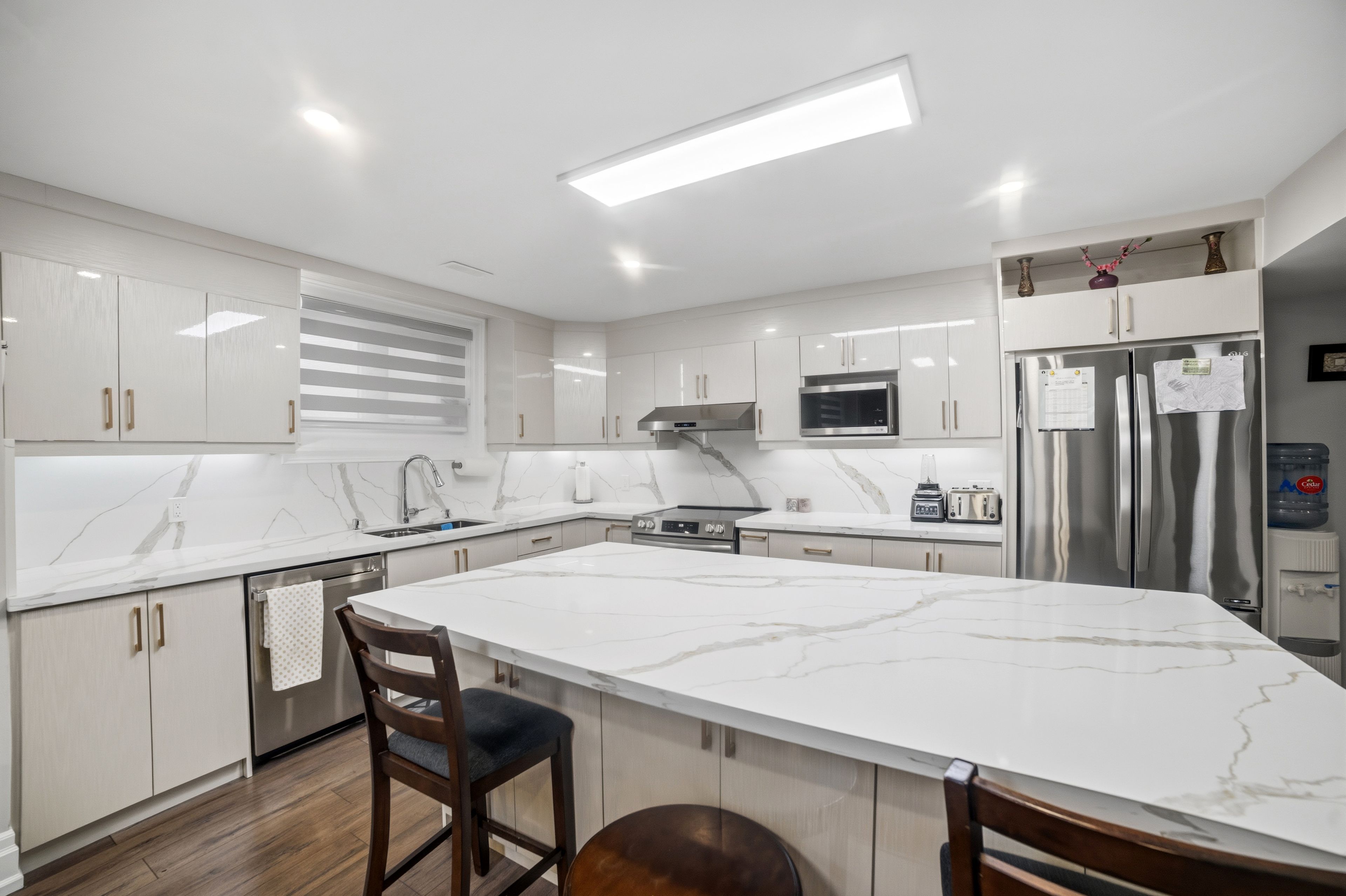 • Professionally finished basement includes two full kitchens and walk-up entrances.